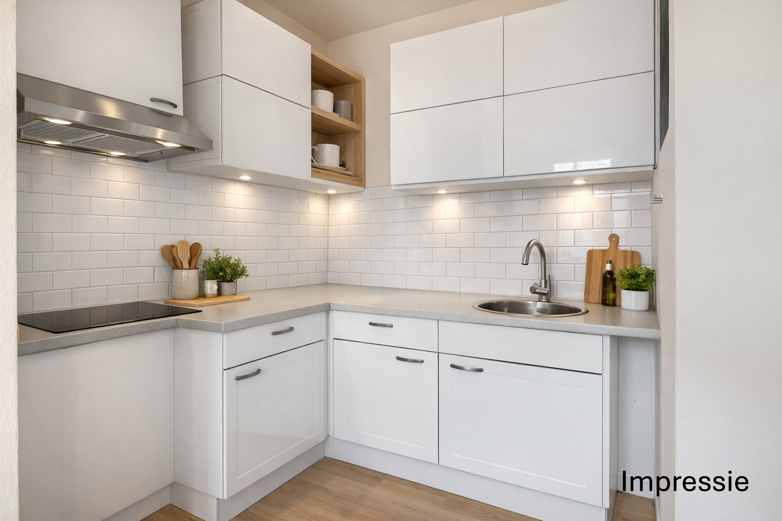 Bij binnenkomst word je verwelkomd door een lichte en verzorgde woonkamer. De laminaatvloer zorgt voor een nette basis en past moeiteloos binnen uiteenlopende interieurstijlen. De halfopen keuken sluit hier harmonieus op aan: open voor contact en gezelligheid, maar met voldoende afscheiding om het kookgedeelte een eigen plek te geven. Een prettige ruimte waar koken en samenzijn vanzelf samengaan, of het nu gaat om een snelle maaltijd of een ontspannen avond met gezelschap.