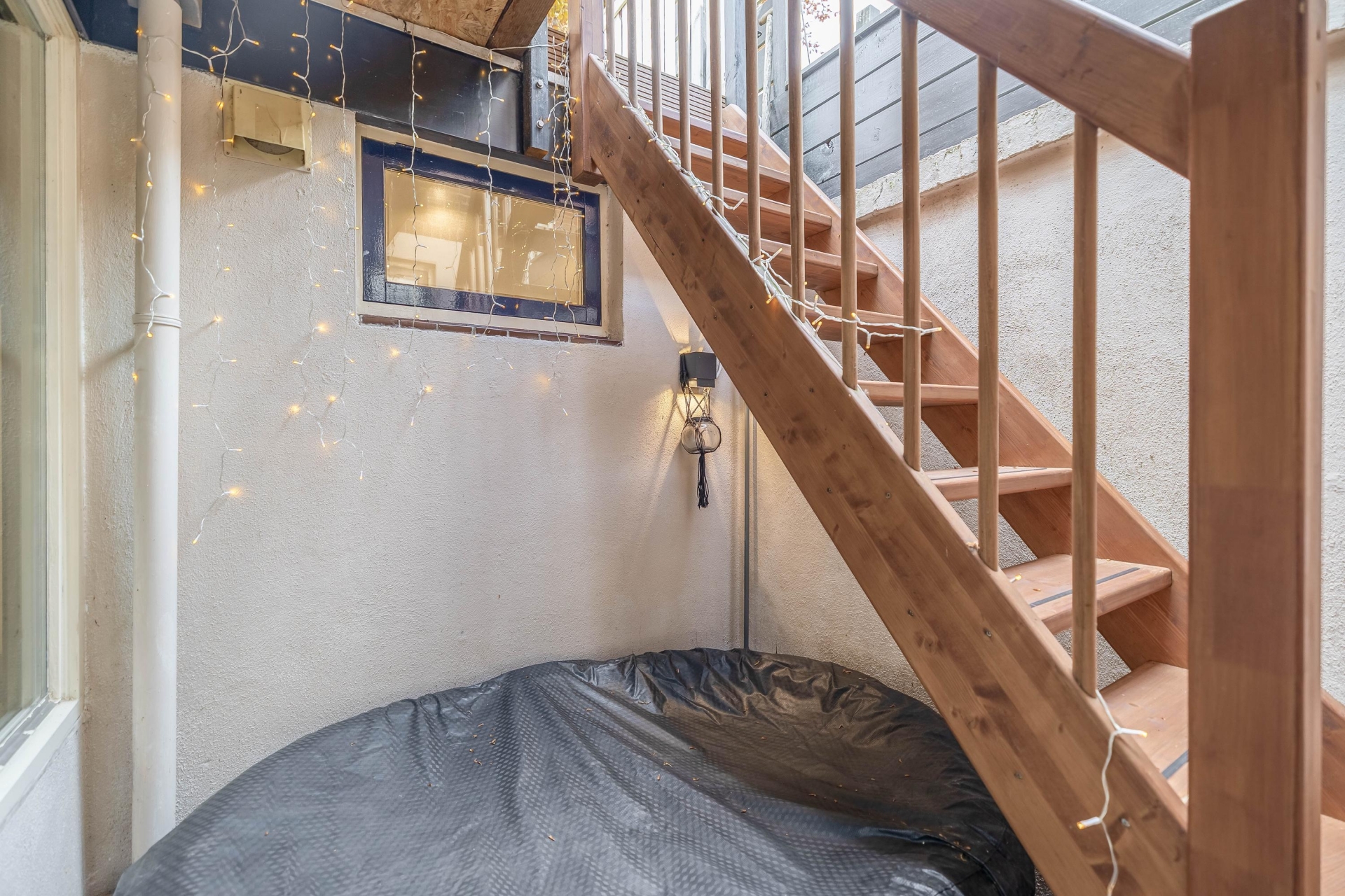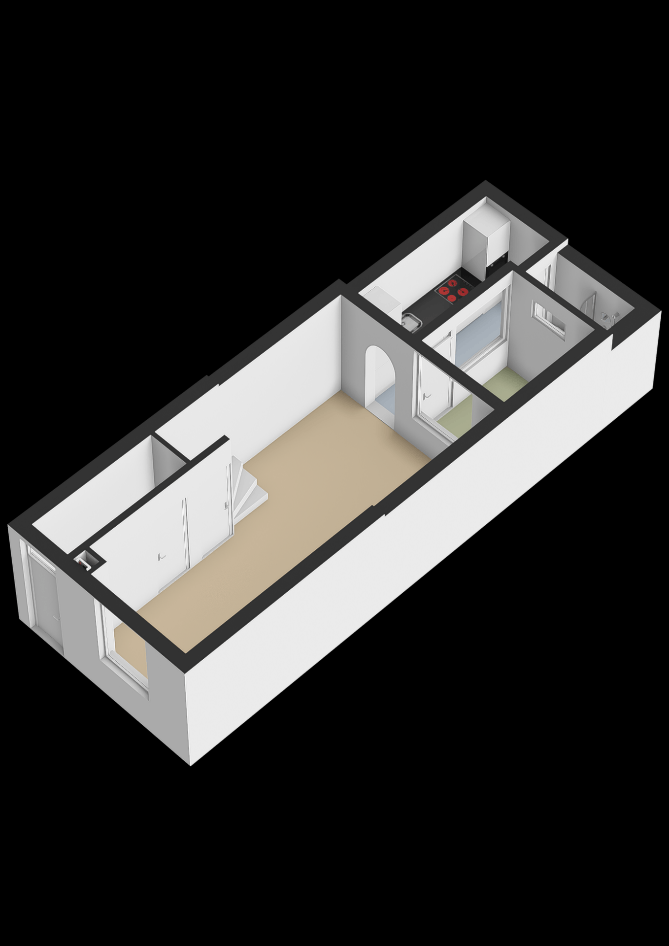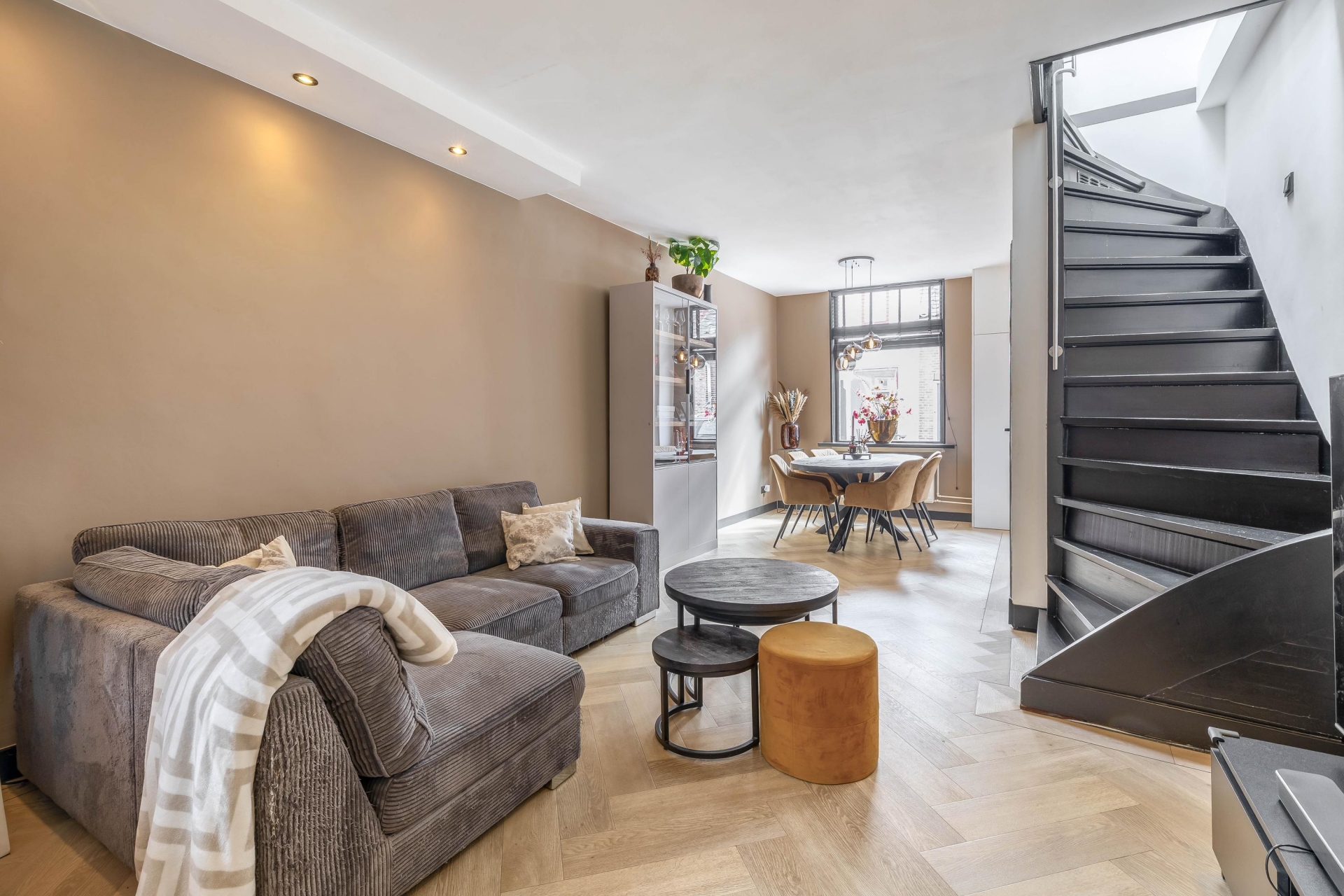 In de woonkamer vind je aansluitend de trapopgang naar de verdieping, wat zorgt voor een speelse en praktische indeling van de begane grond.