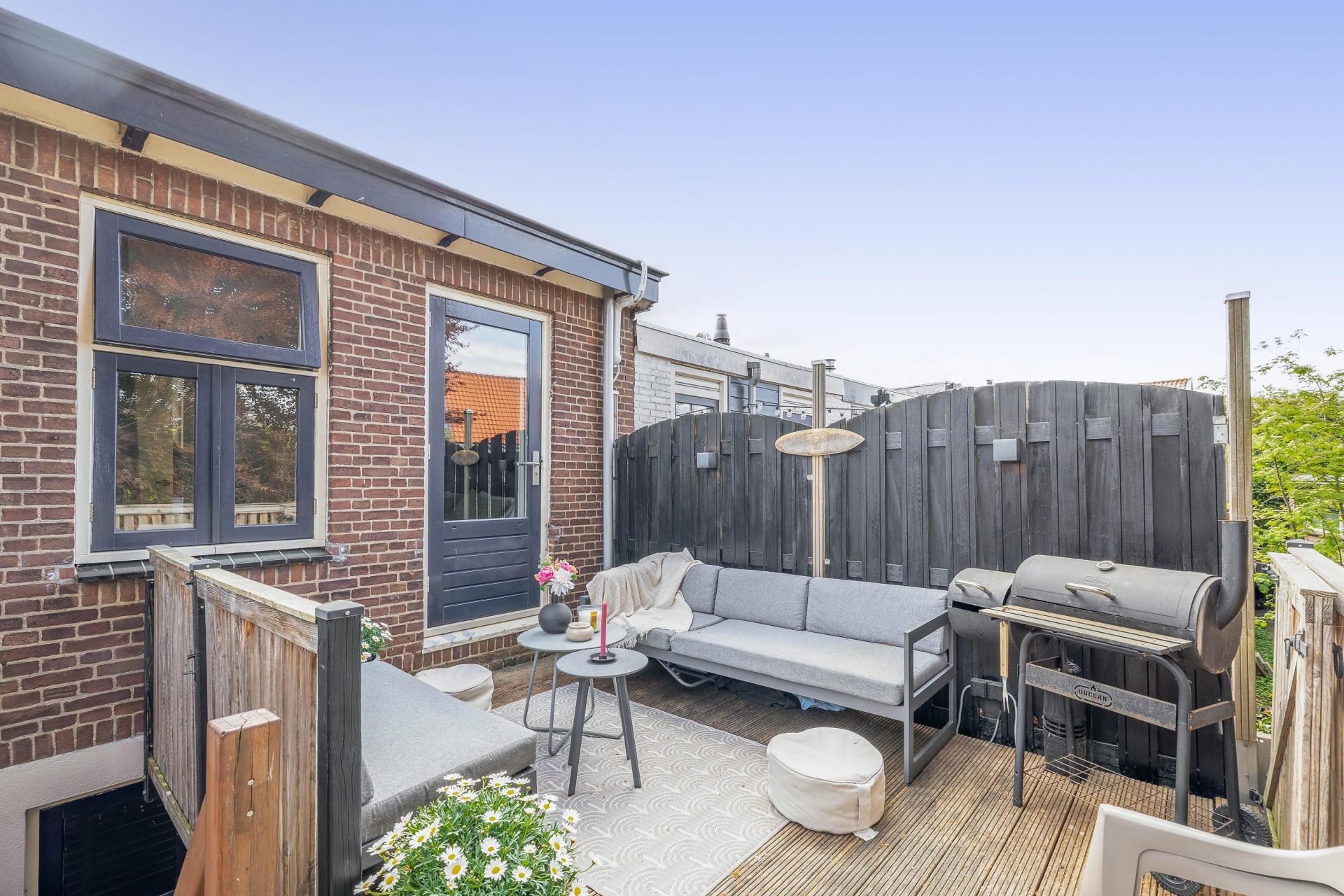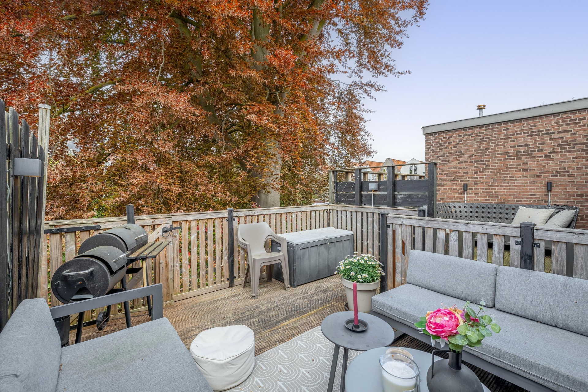 Een van de grote pluspunten van dit huis is het vernieuwde en uitgebreide dakterras. Dit is echt een plek waar je na een lange dag nog even lekker buiten zit. Door de ligging op het westen geniet je hier volop van de middag- en avondzon.
