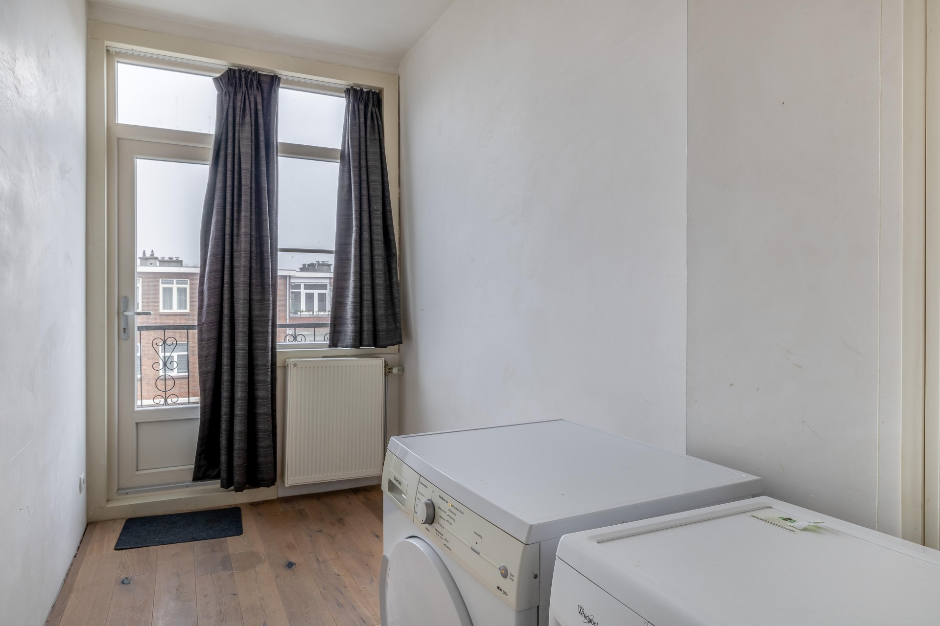 Aan de rechterzijde van de overloop bevindt zich de tweede kamer. Deze ruimte is multifunctioneel en kan uitstekend dienen als werkkamer, logeerkamer of wasruimte. Vanuit deze kamer heb je toegang tot het balkon, gelegen op het noordwesten, waar je heerlijk kunt genieten van de buitenlucht.