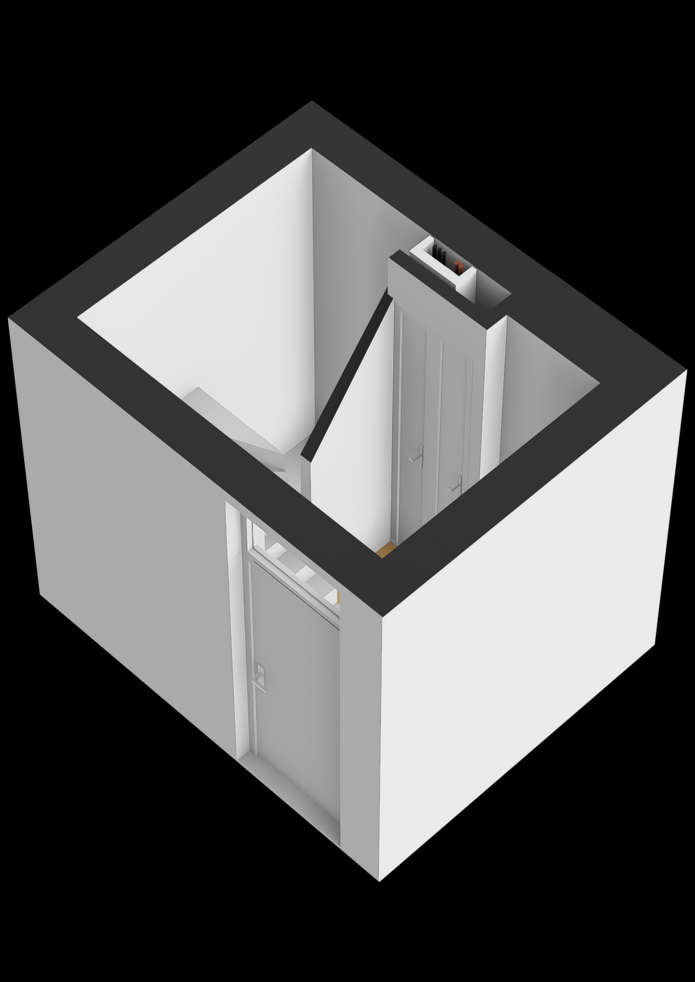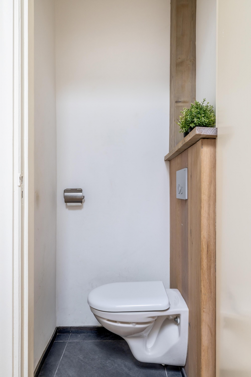 Tegenover deze kamer bevindt zich de badkamer, voorzien van een comfortabele inloopdouche en een dakraam voor natuurlijke ventilatie en licht.