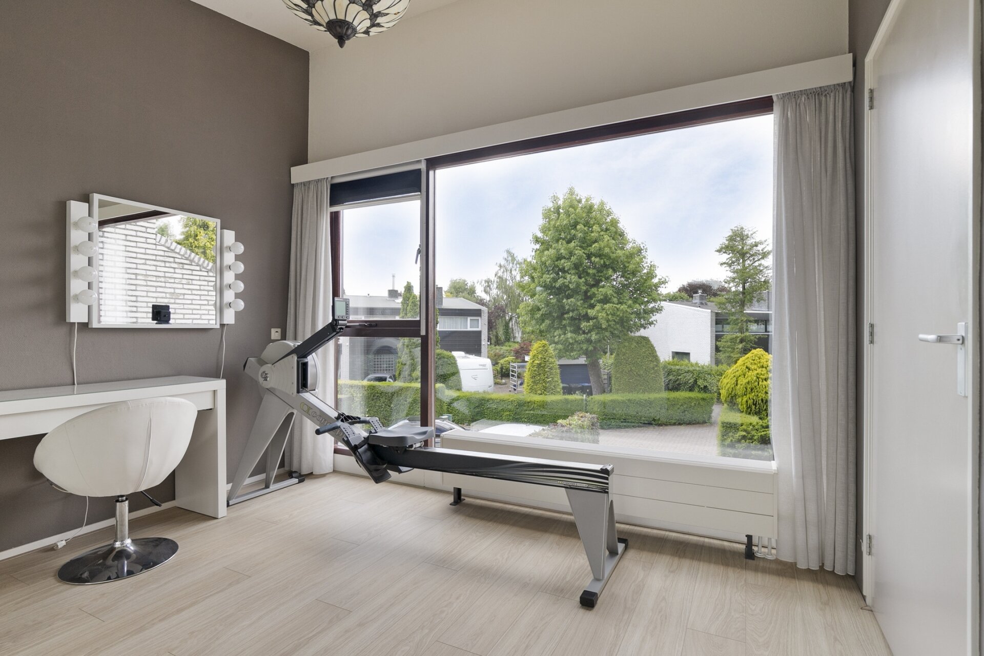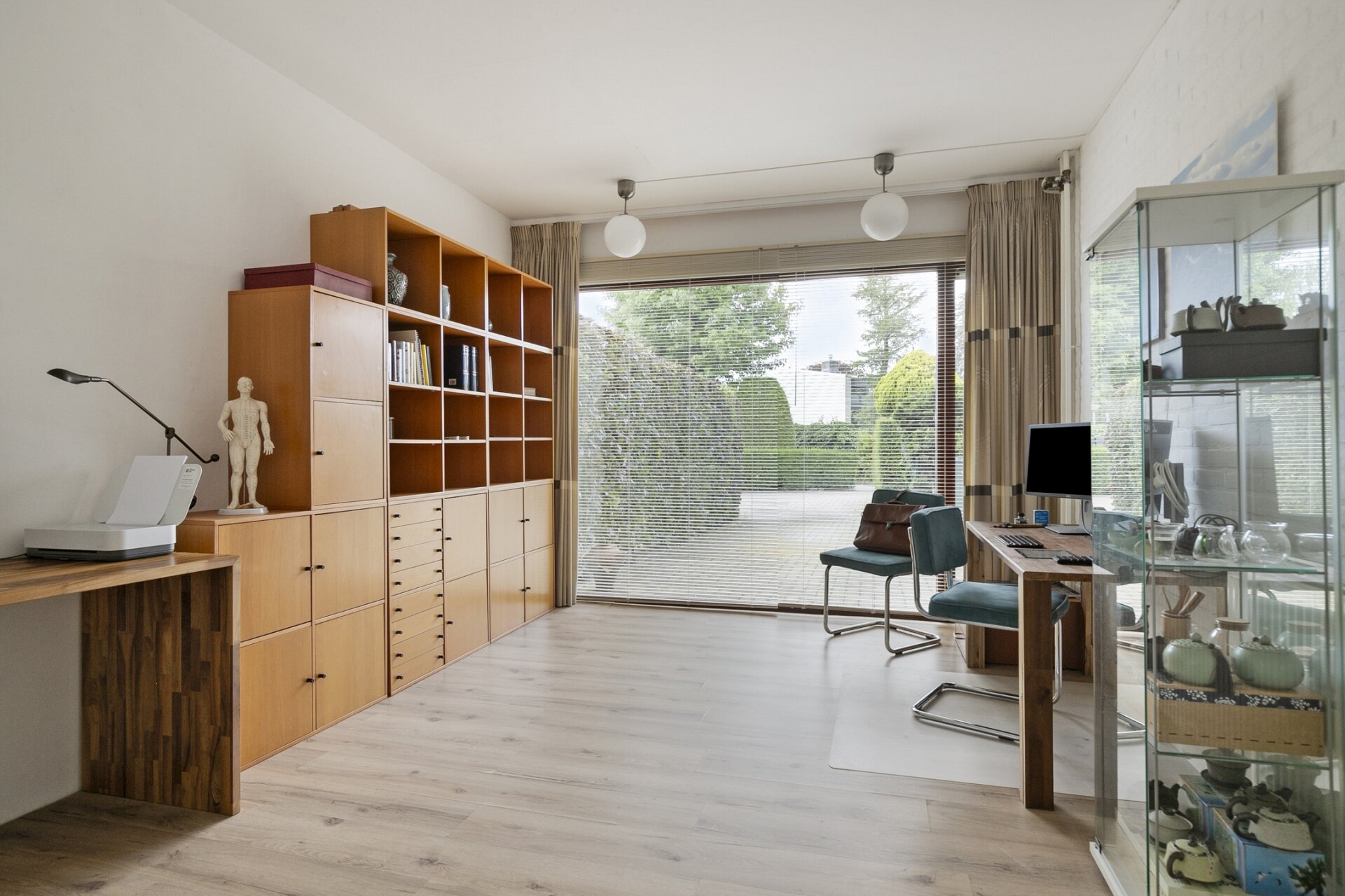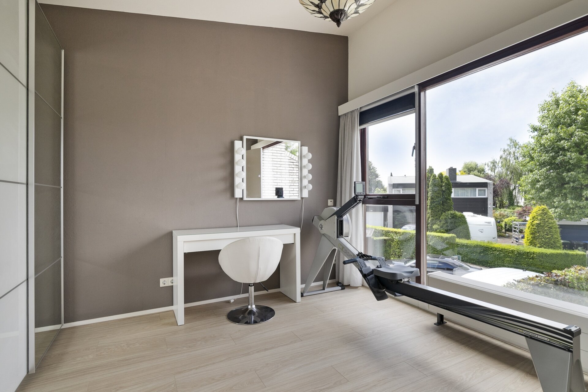 Deze geschakelde villa biedt u de ruimte die u zoekt. Op de begane grond is een fantastische U-vormige woonkamer annex keuken. Vanaf de plek waar de eettafel staat kijkt u naar de fraai aangelegde, diepe voortuin. Dankzij de verbeteringen aan de woning is er veel lichtinval in deze ruimte. De open haard geeft u een huiselijk gevoel. Vanaf de bouw was de garage alleen te bereiken via de buitenzijde. Dankzij het doorbreken van de kast is er een doorgang ontstaan naar de garage. De huidige bewoners hebben er een werkkamer met pantry van gemaakt. Deze ruimte biedt een goede mogelijkheid voor kantoor of praktijk aan huis. Slapen met badkamer op de begane grond is natuurlijk ook een optie, zo is dit huis helemaal levensloopbestendig.
