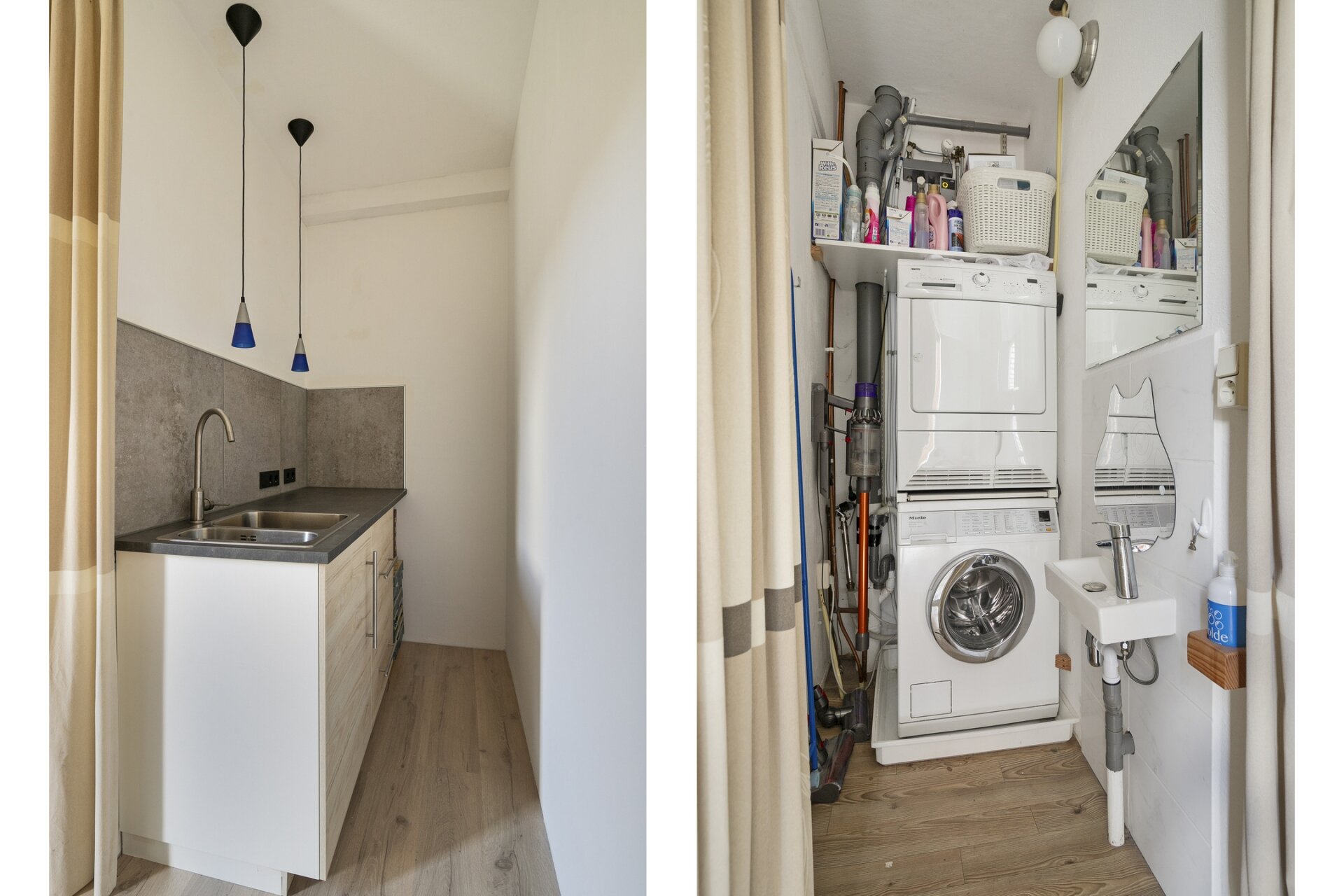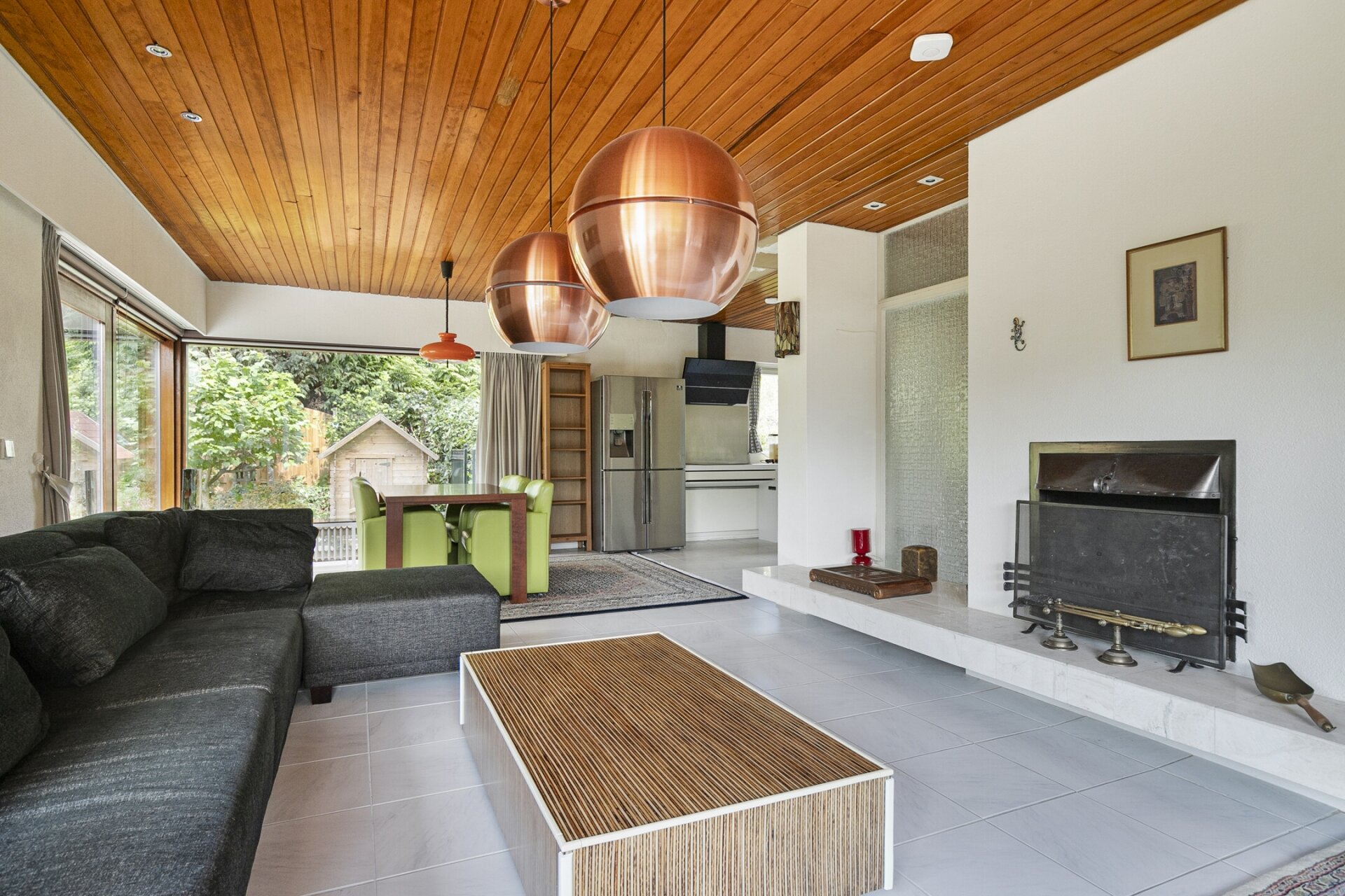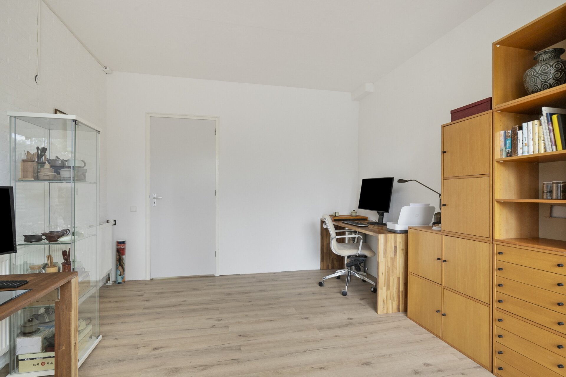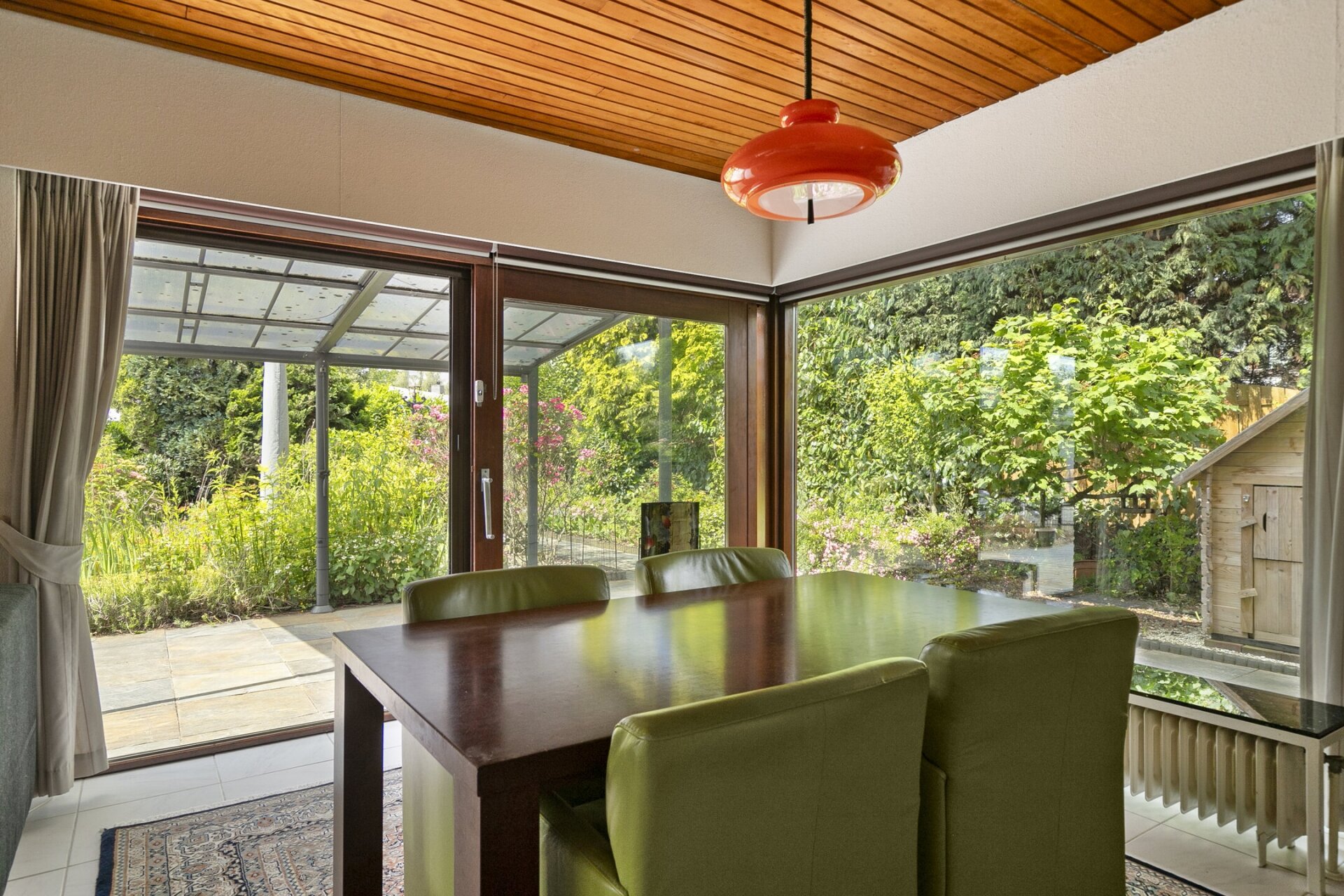 Deze geschakelde villa biedt u de ruimte die u zoekt. Op de begane grond is een fantastische U-vormige woonkamer annex keuken. Vanaf de plek waar de eettafel staat kijkt u naar de fraai aangelegde, diepe voortuin. Dankzij de verbeteringen aan de woning is er veel lichtinval in deze ruimte. De open haard geeft u een huiselijk gevoel. Vanaf de bouw was de garage alleen te bereiken via de buitenzijde. Dankzij het doorbreken van de kast is er een doorgang ontstaan naar de garage. De huidige bewoners hebben er een werkkamer met pantry van gemaakt. Deze ruimte biedt een goede mogelijkheid voor kantoor of praktijk aan huis. Slapen met badkamer op de begane grond is natuurlijk ook een optie, zo is dit huis helemaal levensloopbestendig.