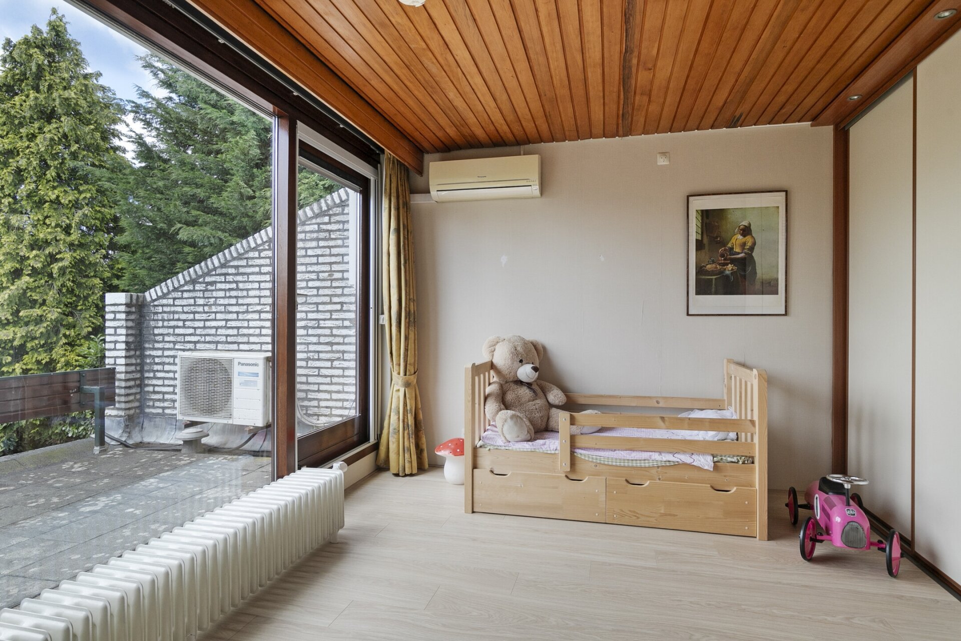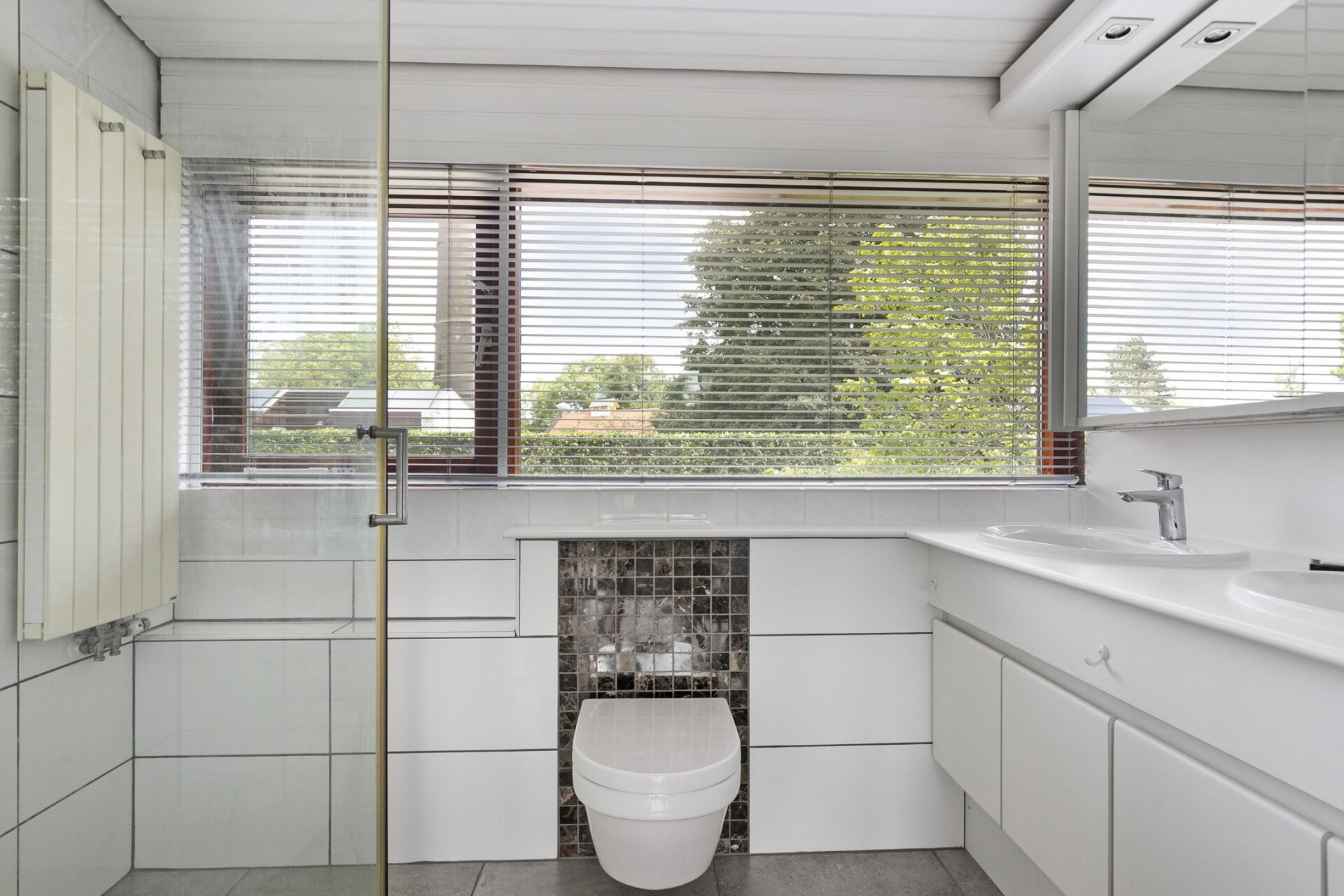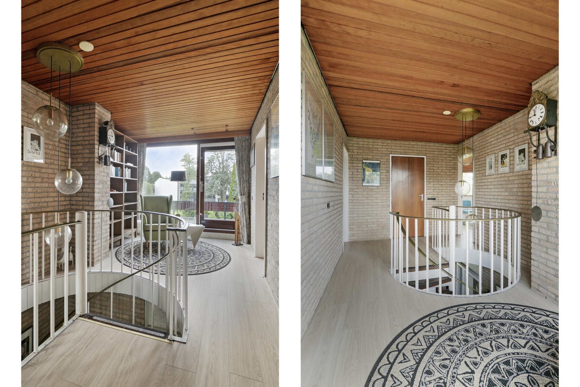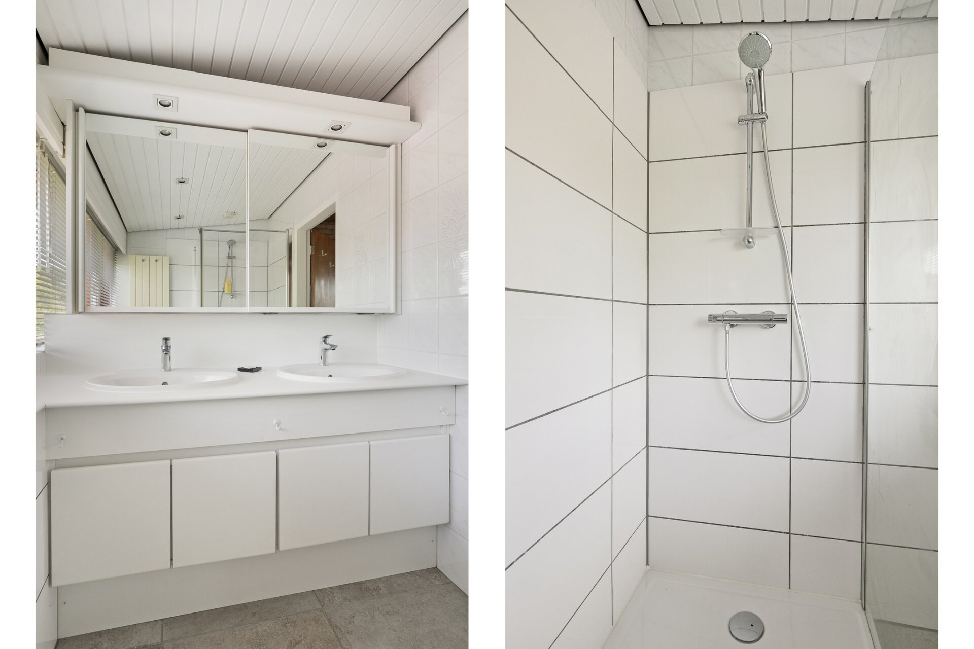 In de hal bevindt zich de wenteltrap naar boven. Op deze verdieping bevinden zich 4 ruime slaapkamers. Elk met een ander fantastisch uitzicht. De woning is uitgebreid met een opbouw op de garage. Aan de voorzijde is een riant zonneterras aanwezig van maar liefst 12 M². Bij een riante villa hoort ook luxe, om deze reden zijn er 2 badkamers. Enorm handig voor de kinderen, kleinkinderen of de logees.