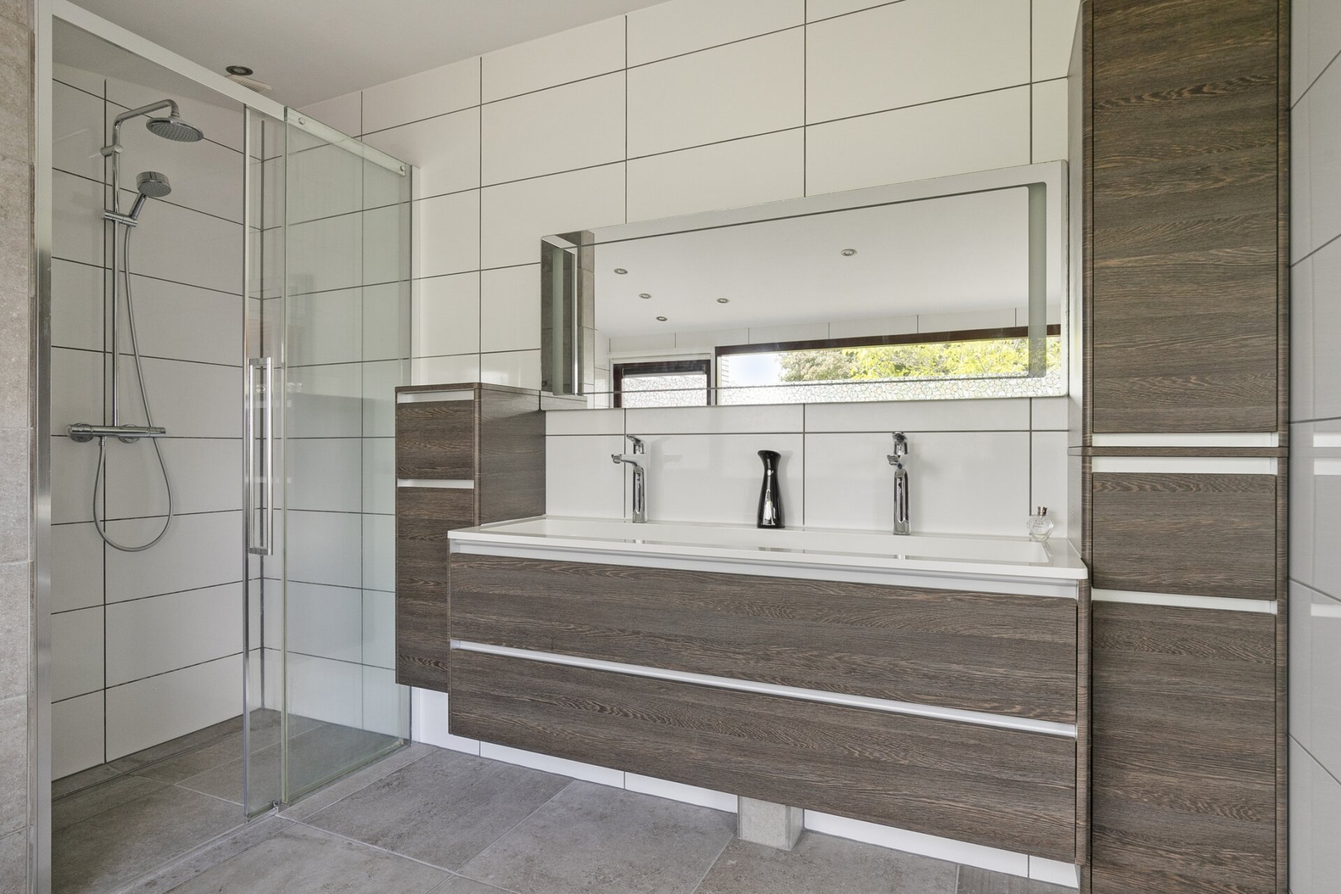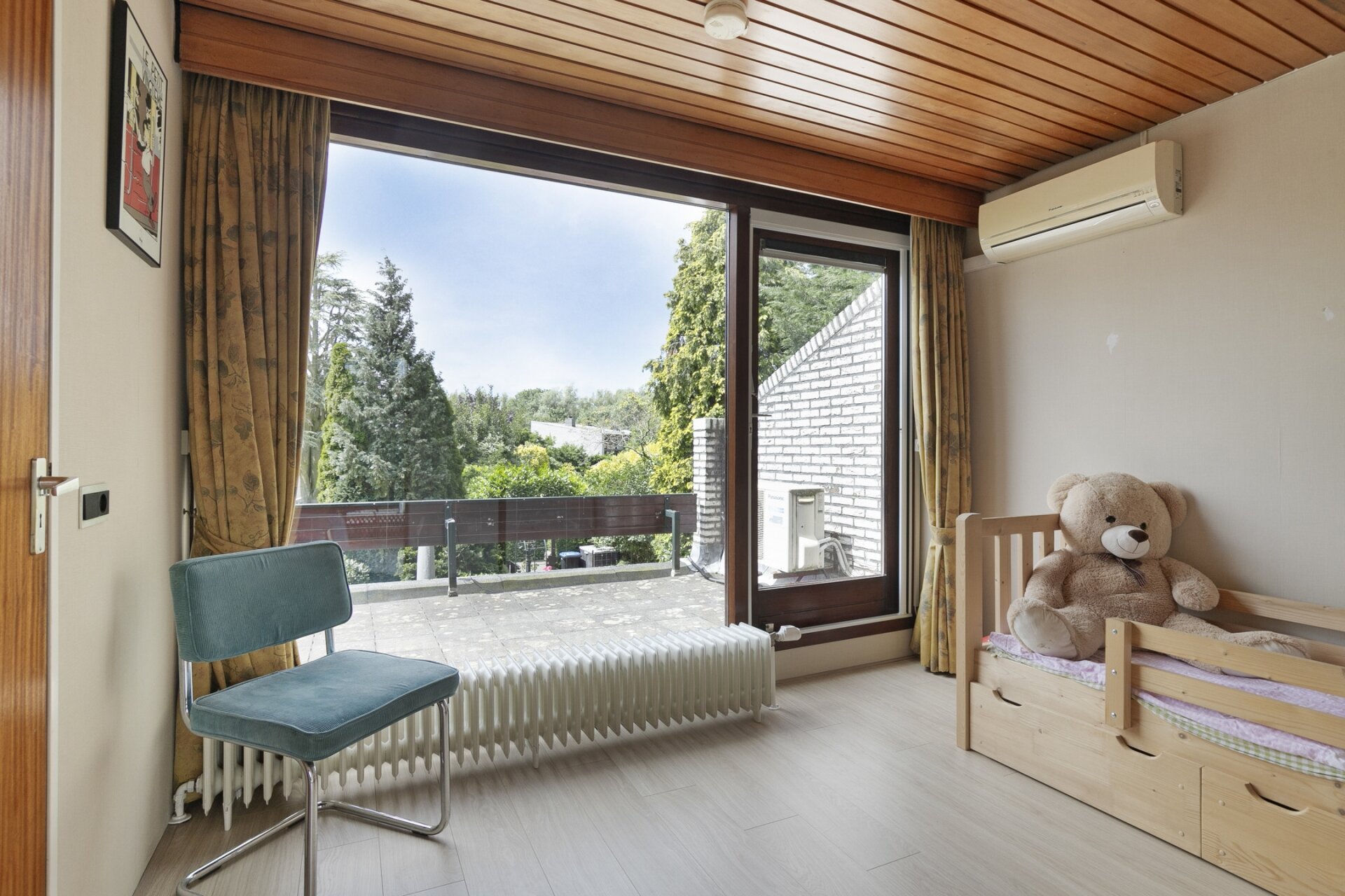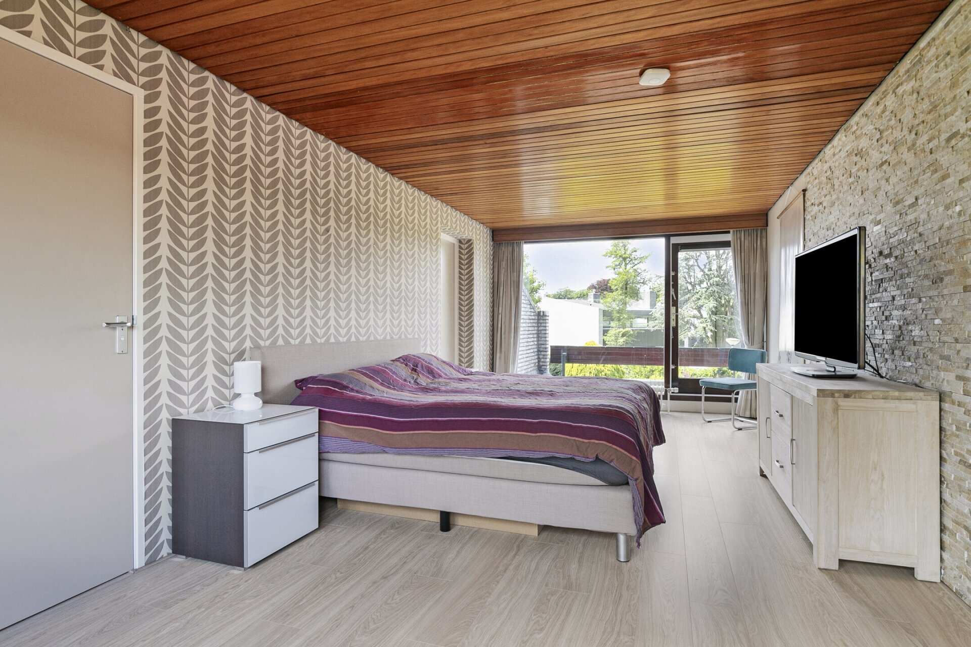 In de hal bevindt zich de wenteltrap naar boven. Op deze verdieping bevinden zich 4 ruime slaapkamers. Elk met een ander fantastisch uitzicht. De woning is uitgebreid met een opbouw op de garage. Aan de voorzijde is een riant zonneterras aanwezig van maar liefst 12 M². Bij een riante villa hoort ook luxe, om deze reden zijn er 2 badkamers. Enorm handig voor de kinderen, kleinkinderen of de logees.