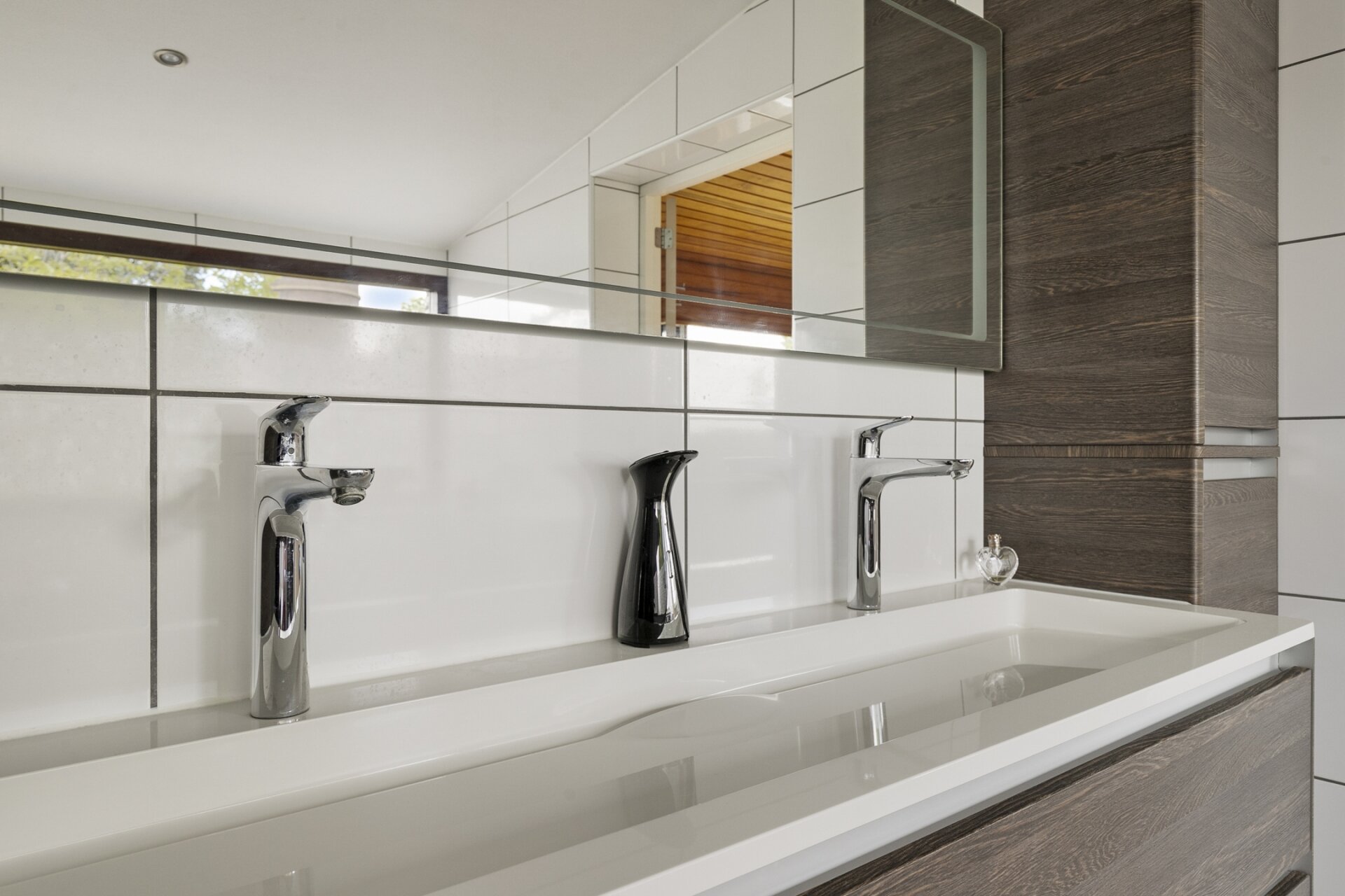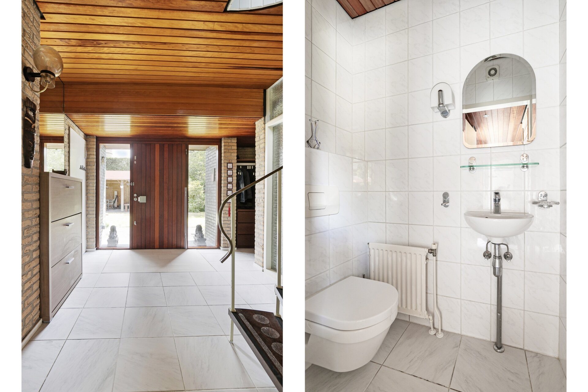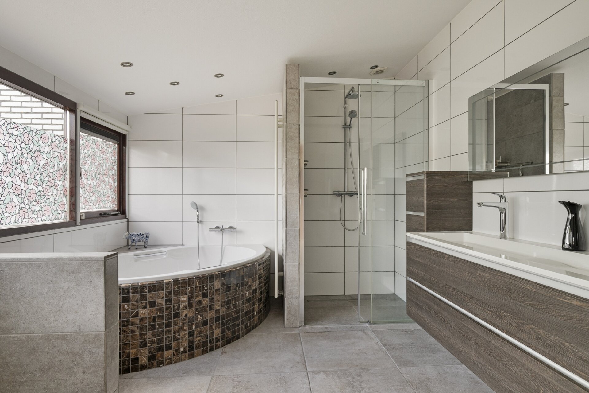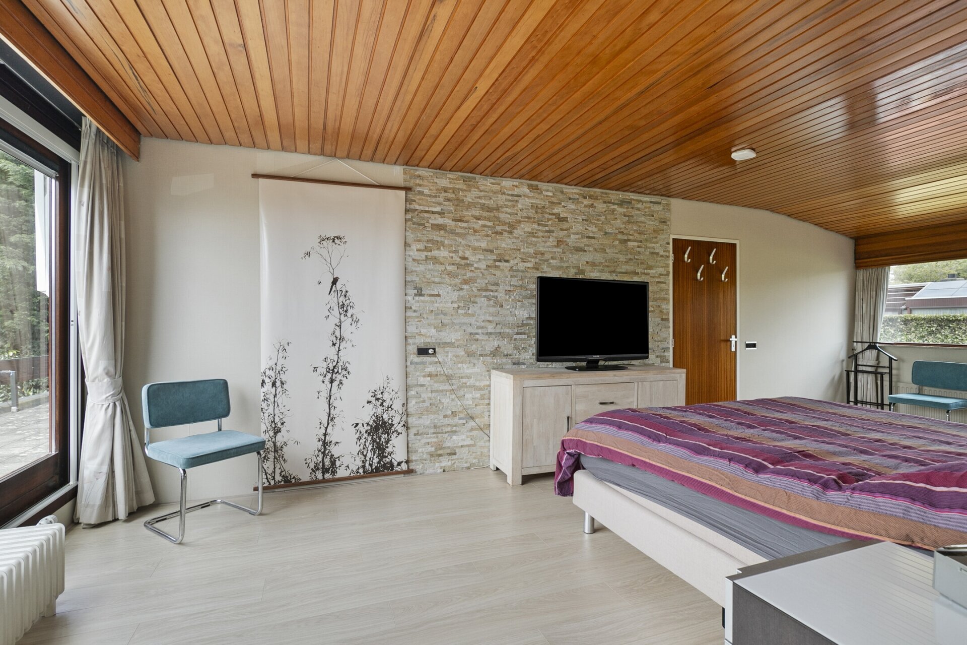 In de hal bevindt zich de wenteltrap naar boven. Op deze verdieping bevinden zich 4 ruime slaapkamers. Elk met een ander fantastisch uitzicht. De woning is uitgebreid met een opbouw op de garage. Aan de voorzijde is een riant zonneterras aanwezig van maar liefst 12 M². Bij een riante villa hoort ook luxe, om deze reden zijn er 2 badkamers. Enorm handig voor de kinderen, kleinkinderen of de logees.