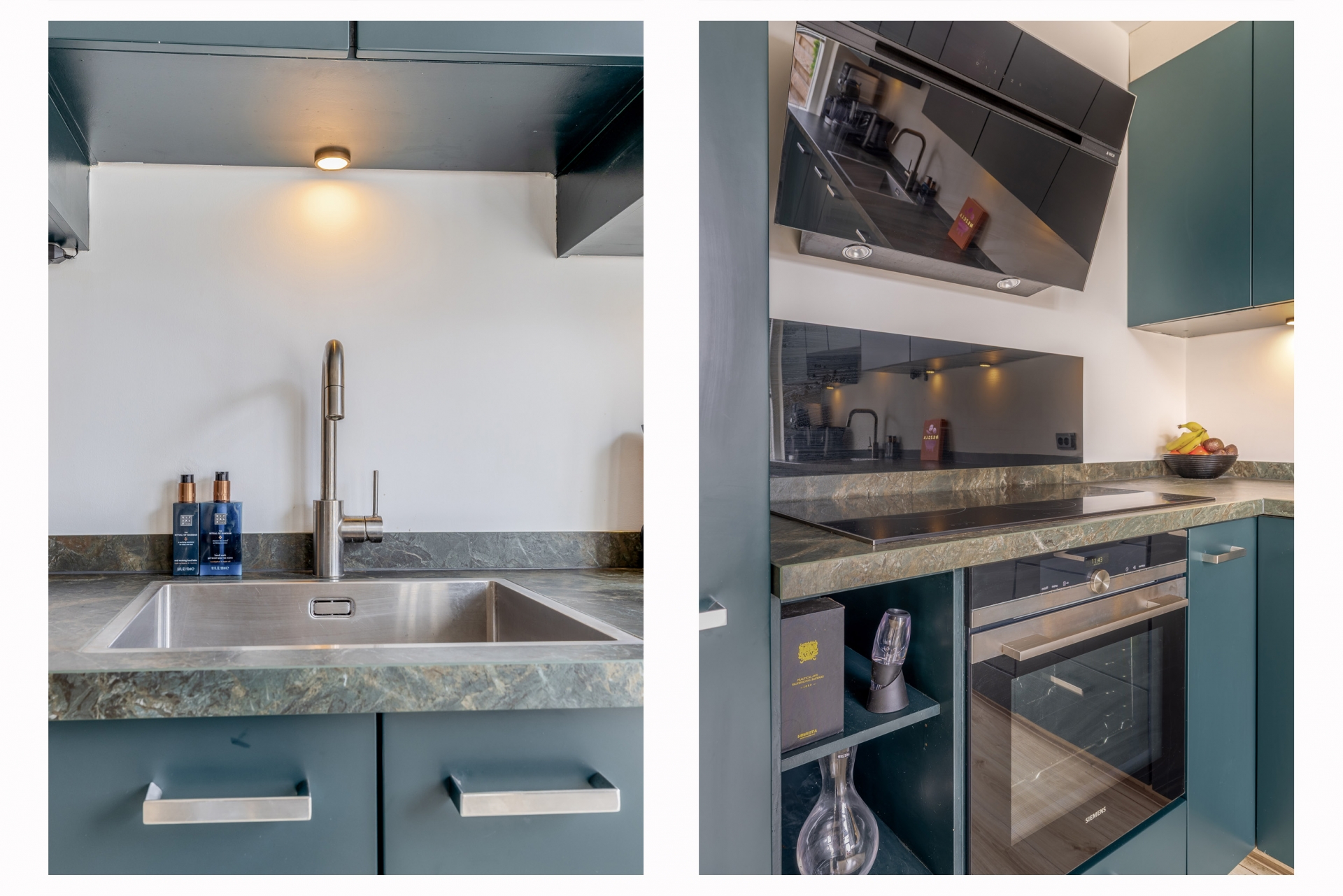 De keuken (2021) is opgesteld in een praktische L-vorm en voorzien van diverse inbouwapparatuur, waaronder een koelkast, combi-oven, elektrische kookplaat met afzuigschouw en een vaatwasser. Vanuit de keuken heeft u toegang tot de tuin, terwijl de openslaande deuren zorgen voor een vloeiende overgang tussen binnen en buiten.