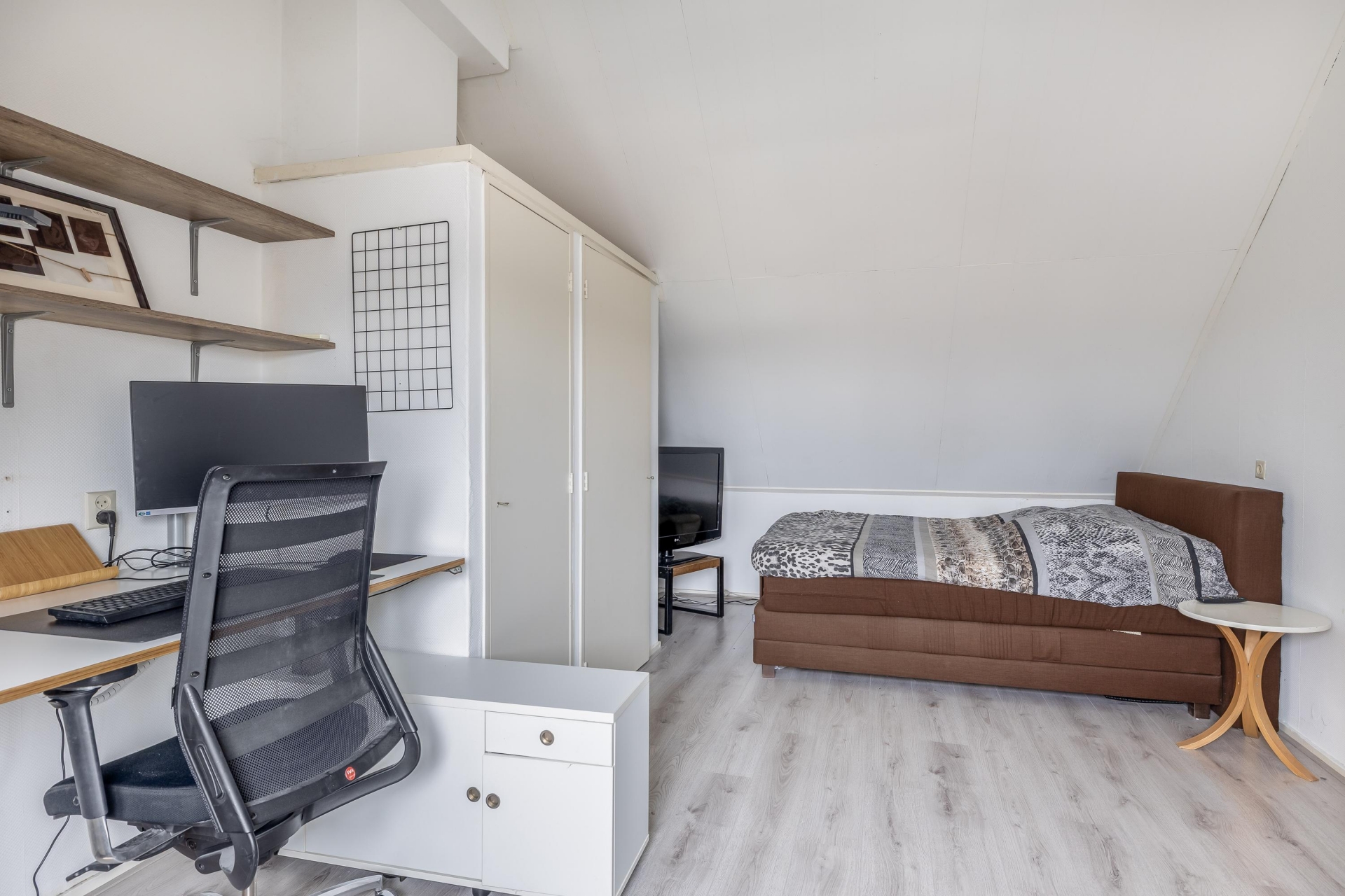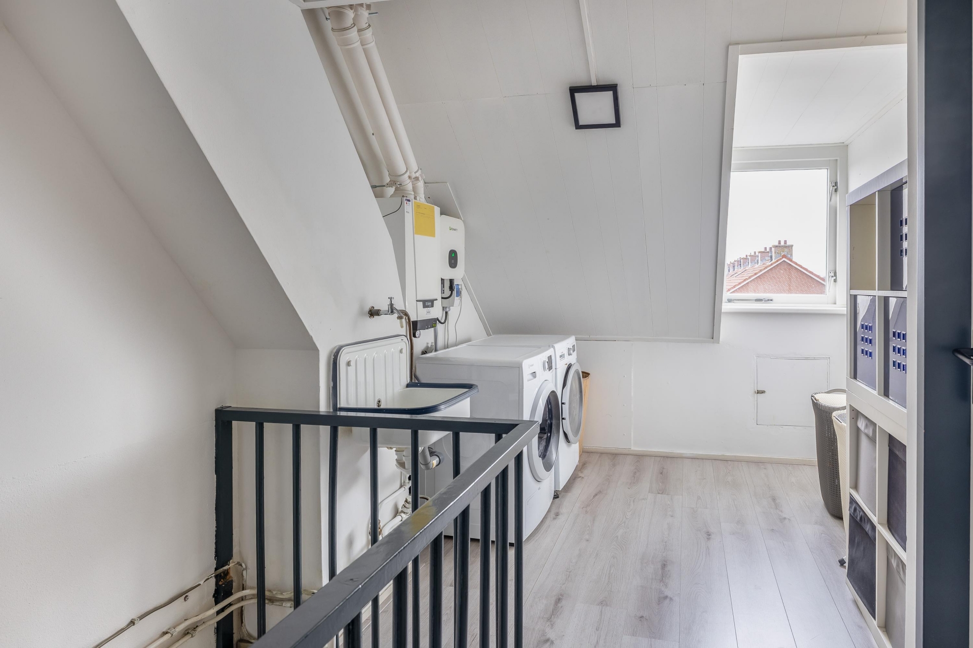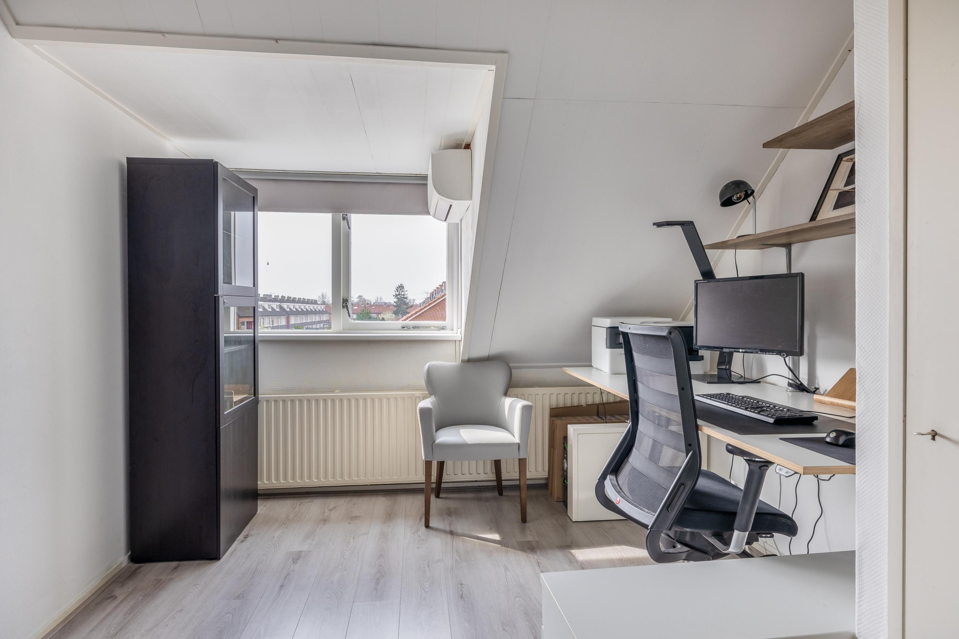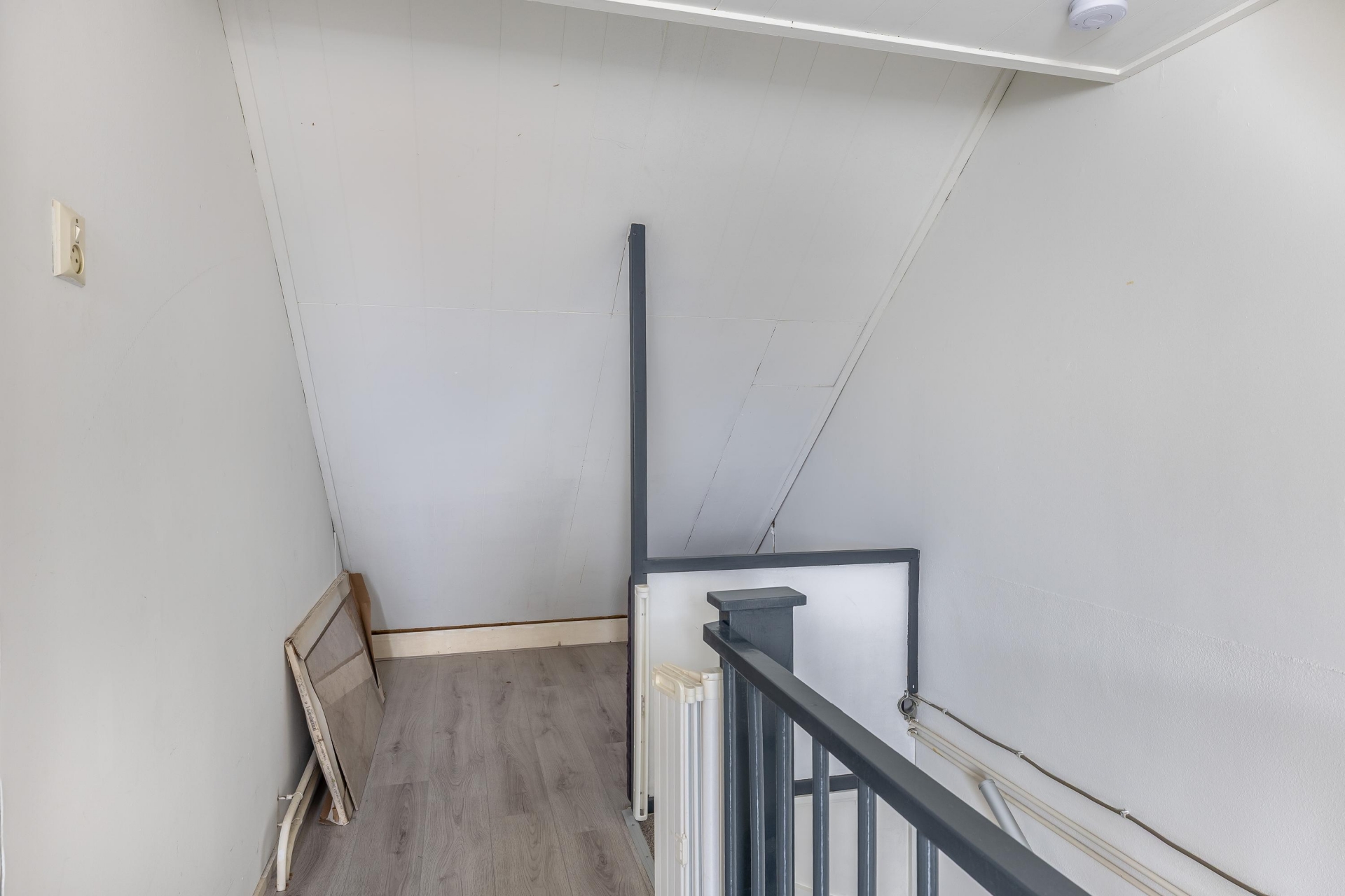 De zolderverdieping beschikt over een ruime overloop met opstelplaats voor de cv-ketel (Remeha Tzerra, 2019) en de wasmachineaansluiting. De slaapkamer is voorzien van een dakkapel aan de achterzijde en heeft een oppervlakte van circa 12 m².