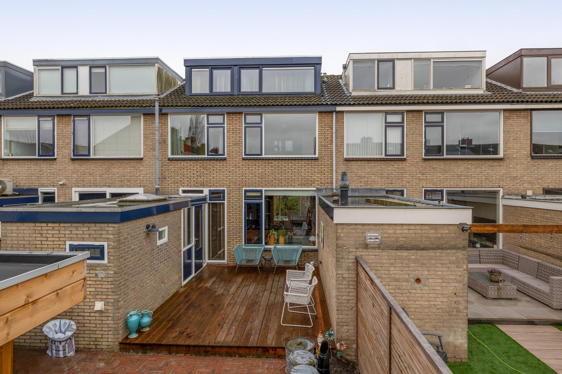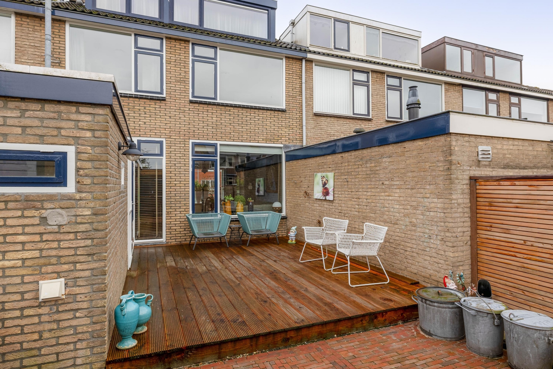 De achtertuin ligt op het noordoosten en is recent opgehoogd en voorzien van een terras en nieuwe schuttingen. Er is altijd wel een plekje in de zon of juist in de schaduw te vinden. De tuin is grotendeels betegeld en langs de schutting is een mogelijkheid om beplanting aan te brengen. De ruime berging met dubbele openslaande deuren is net nieuw en een ideale plek voor fietsen of om spullen op te bergen.