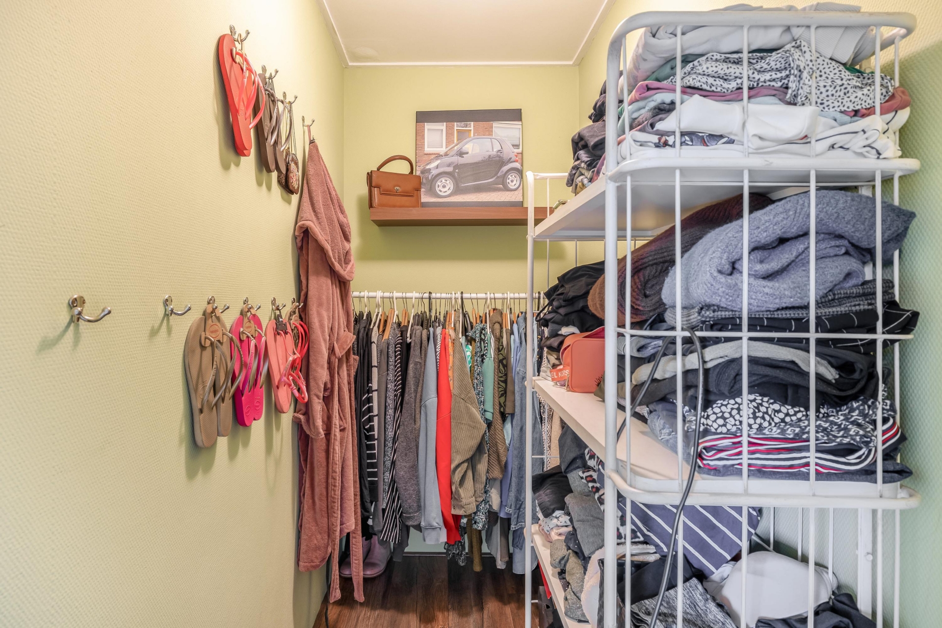 Op de eerste verdieping bevinden zich drie slaapkamers. De grootste slaapkamer ligt aan de achterzijde en biedt voldoende ruimte voor een tweepersoonsbed. De andere twee kamers zijn ook van een mooi formaat, ideaal als kinderkamer, werkkamer of hobbykamer. Daarnaast is er nog een inloopkast aanwezig, tussen de twee grote slaapkamers in.