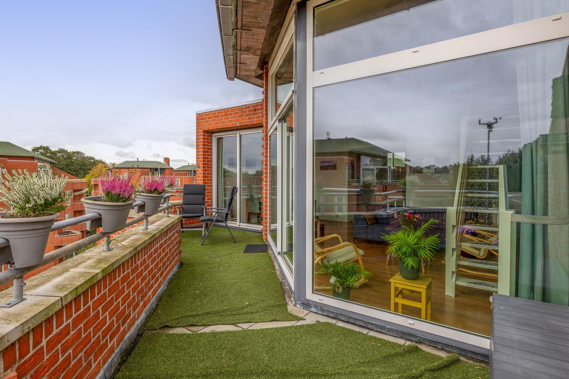 Via een schuifpui is hiervandaan toegang tot het grote terras.