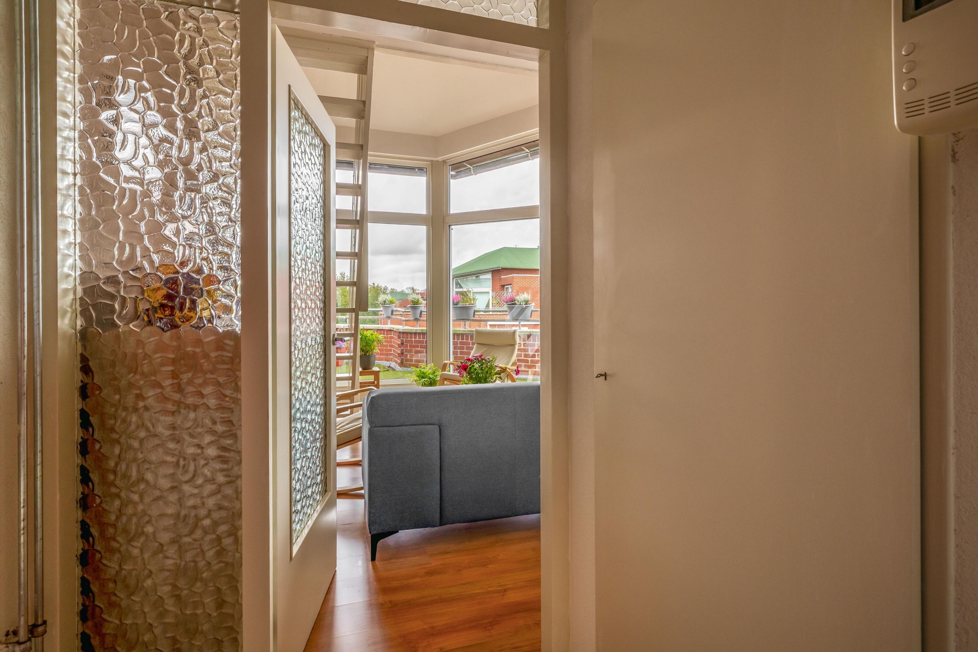 Deze kleine hal biedt toegang tot het toilet, de badkamer en een slaapkamer.