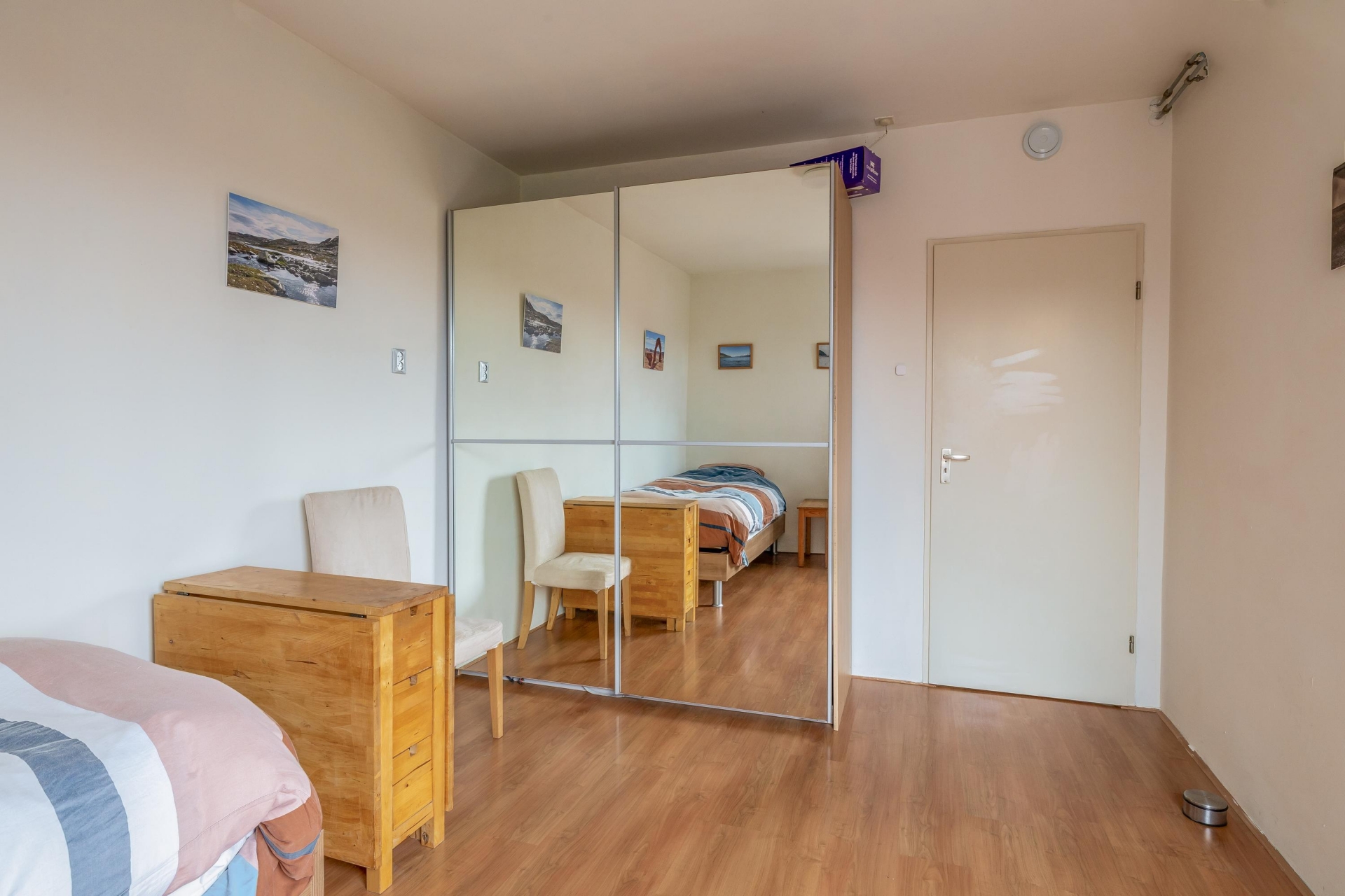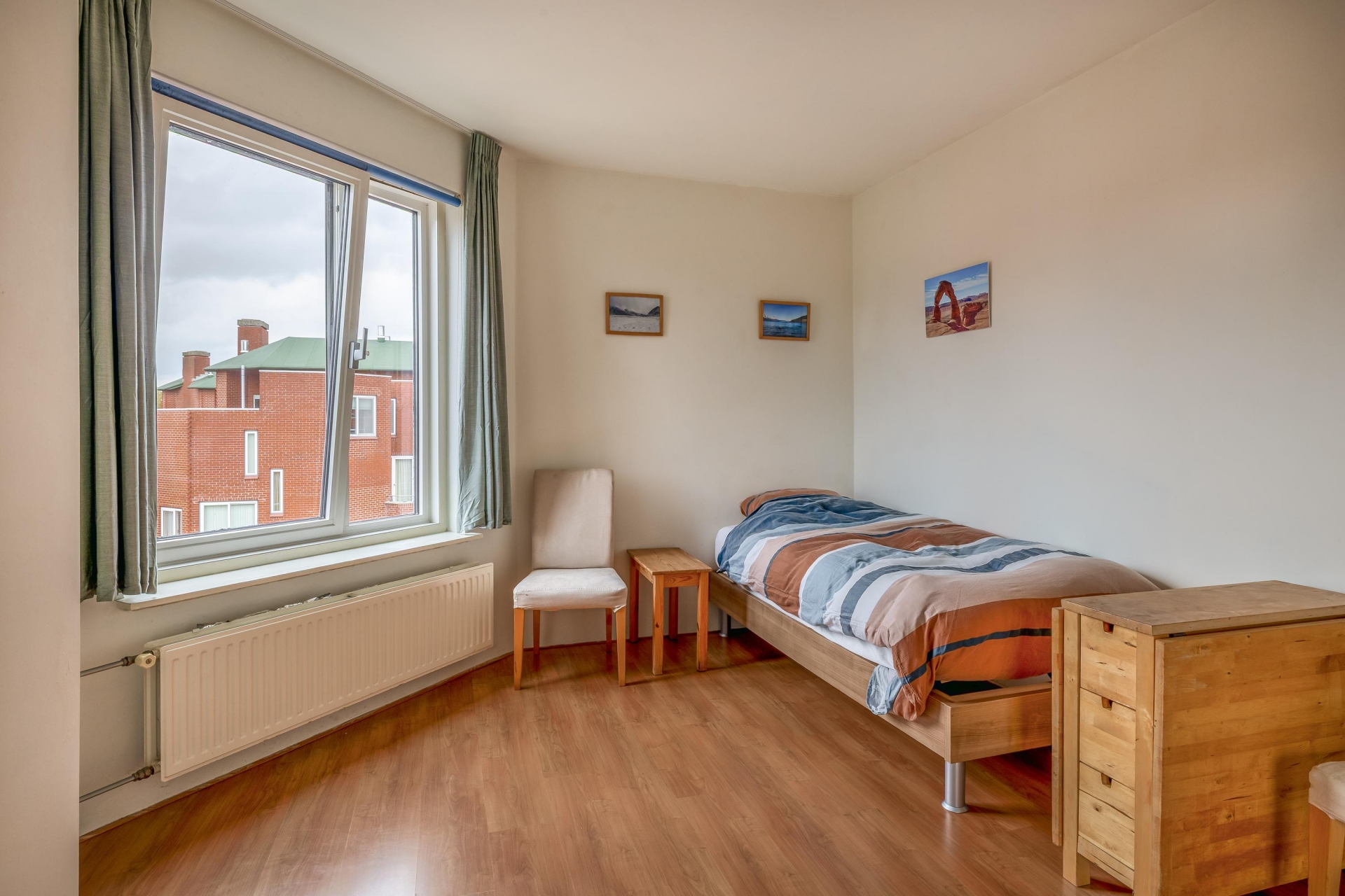 De slaapkamer meet circa 12m² en is voorzien van een breed raam voor veel lichtinval.