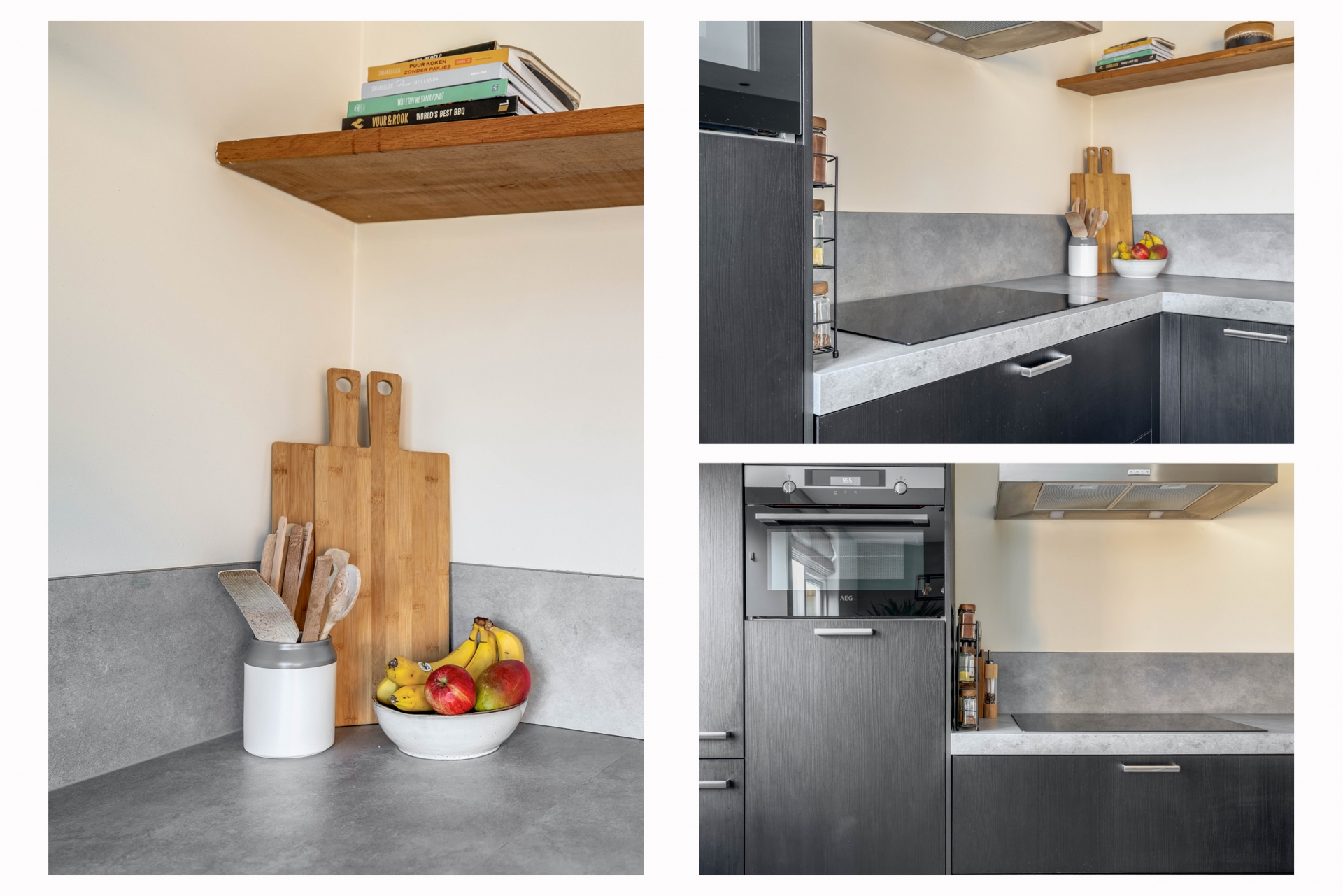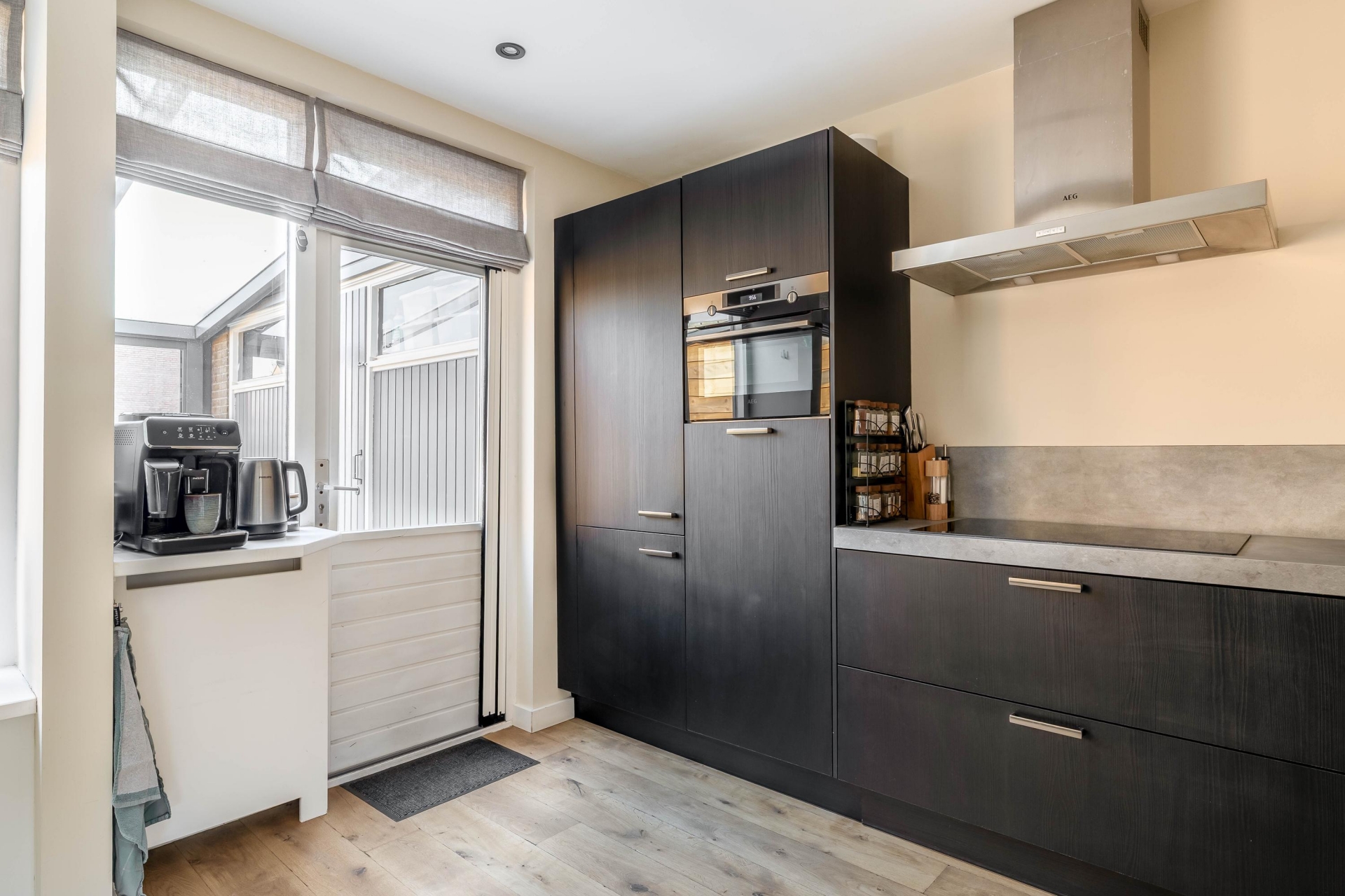 De keuken is in 2020 geplaatst en uitgevoerd in een moderne, tijdloze stijl. De opstelling biedt veel werkruimte en is uitgerust met diverse inbouwapparatuur, waaronder een inductiekookplaat, combi-oven, vaatwasser en een koelkast met vriesvak. Dankzij de open verbinding met de woonkamer blijft het een fijne plek waar koken en samenzijn samenkomen.