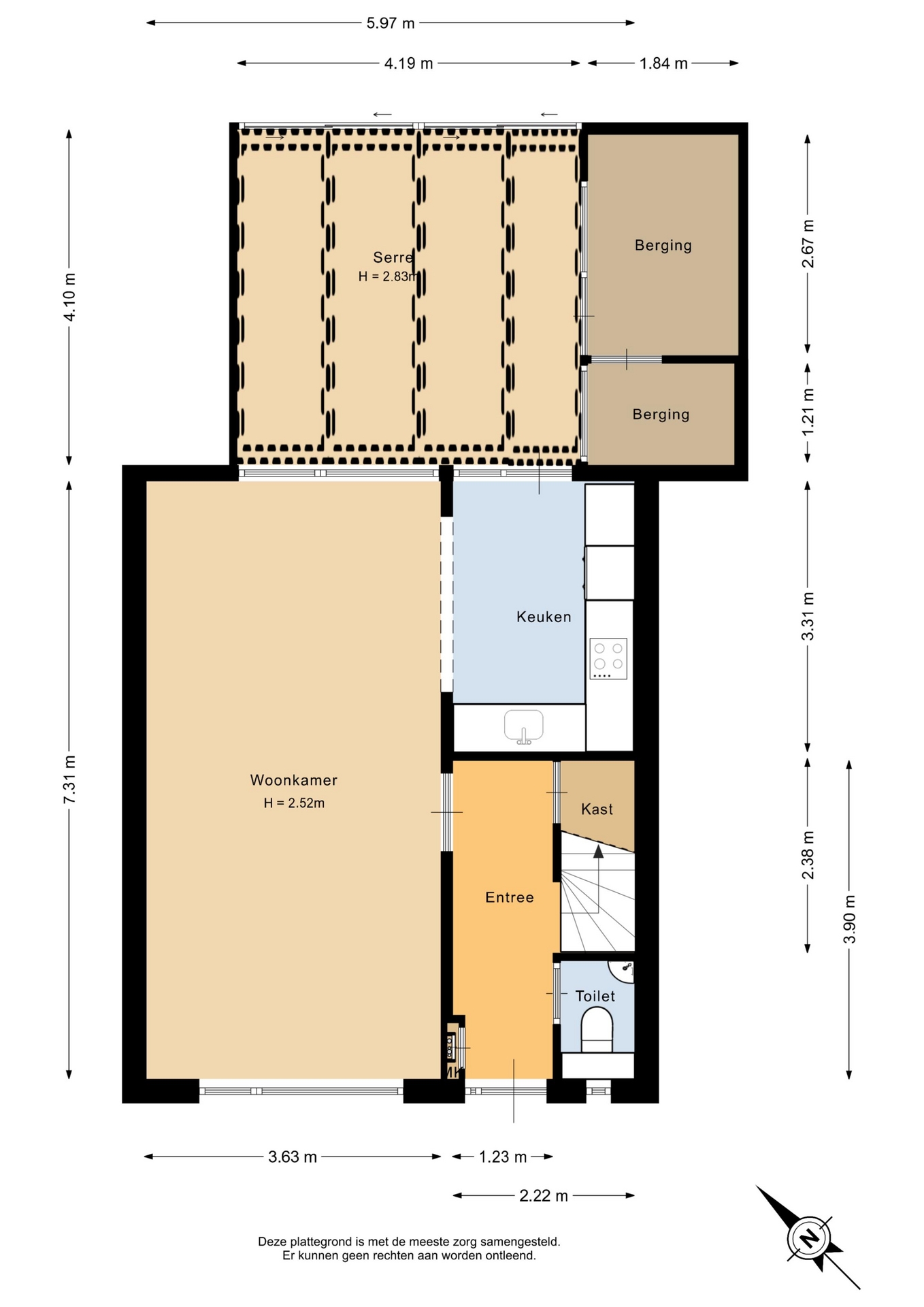 “Deze informatie is door ons met de nodige zorgvuldigheid samengesteld. Onzerzijds wordt echter geen enkele aansprakelijkheid aanvaard voor enige onvolledigheid, onjuistheid of anderszins, dan wel de gevolgen daarvan. Alle opgegeven maten en oppervlakten zijn indicatief.”