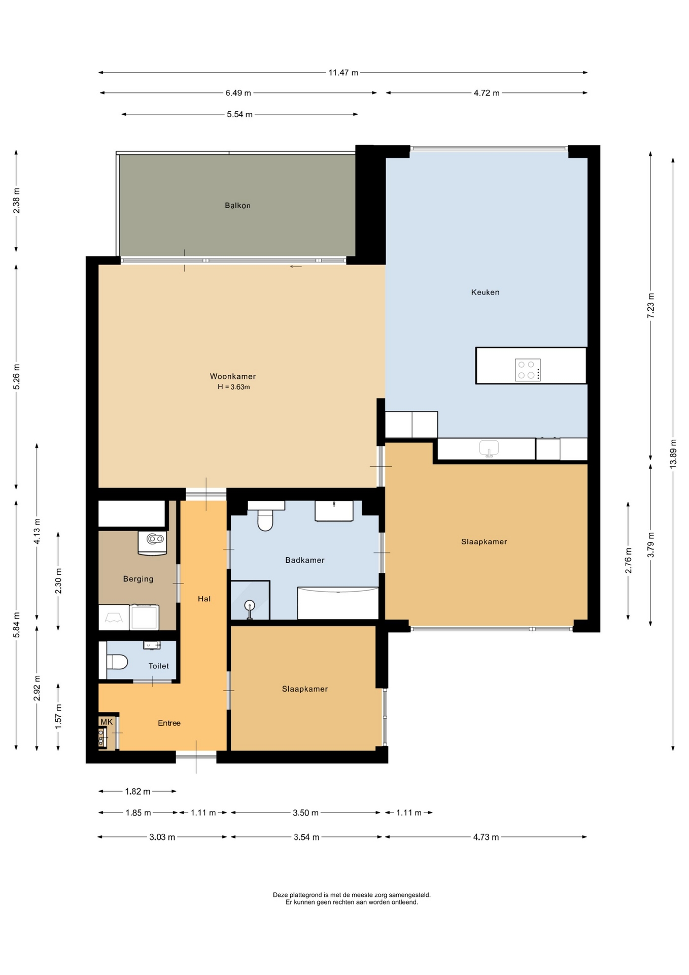 “Deze informatie is door ons met de nodige zorgvuldigheid samengesteld. Onzerzijds wordt echter geen enkele aansprakelijkheid aanvaard voor enige onvolledigheid, onjuistheid of anderszins, dan wel de gevolgen daarvan. Alle opgegeven maten en oppervlakten zijn indicatief.”