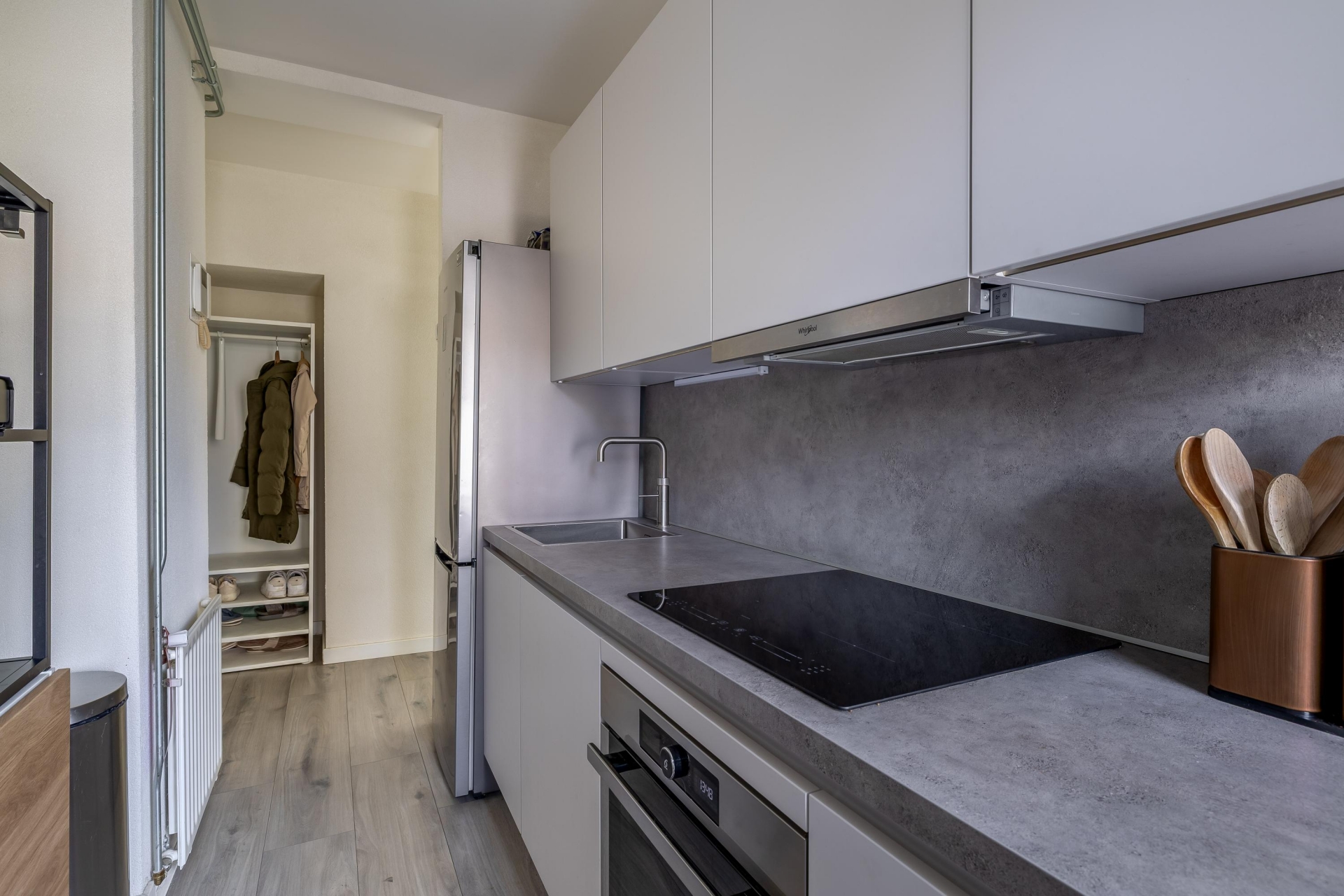 De keuken is in 2023 vernieuwd en uitgevoerd in een moderne, neutrale stijl. Hier heb je alles bij de hand om lekker te koken: een strak werkblad, inbouwapparatuur en voldoende kastruimte. Vanuit de keuken heb je direct toegang tot de tuin, wat het extra praktisch maakt.