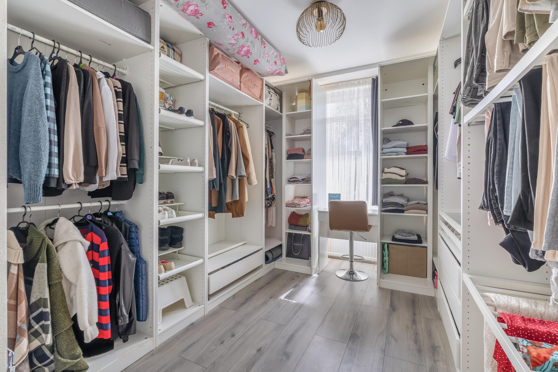 De badkamer en het toilet zijn eveneens volledig vernieuwd en dat zie je terug in de afwerking. De badkamer is stijlvol ingericht met een inloopdouche, modern wastafelmeubel en mooie materialen die zorgen voor een luxe uitstraling. Het separate toilet is in dezelfde lijn afgewerkt, wat zorgt voor een mooi geheel.