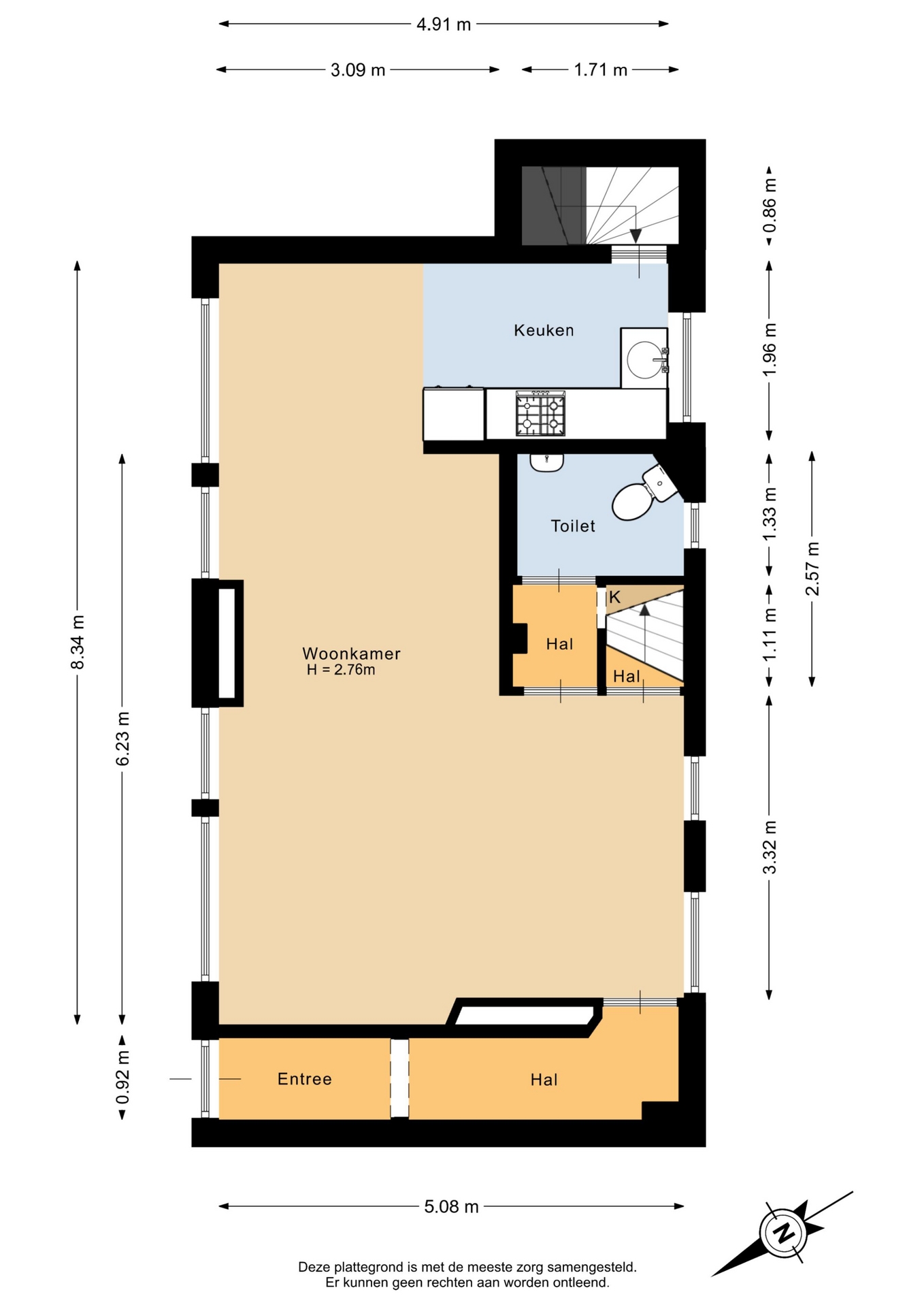 “Deze informatie is door ons met de nodige zorgvuldigheid samengesteld. Onzerzijds wordt echter geen enkele aansprakelijkheid aanvaard voor enige onvolledigheid, onjuistheid of anderszins, dan wel de gevolgen daarvan. Alle opgegeven maten en oppervlakten zijn indicatief.”