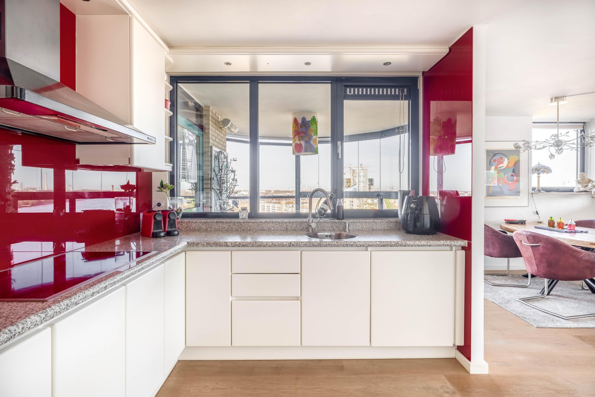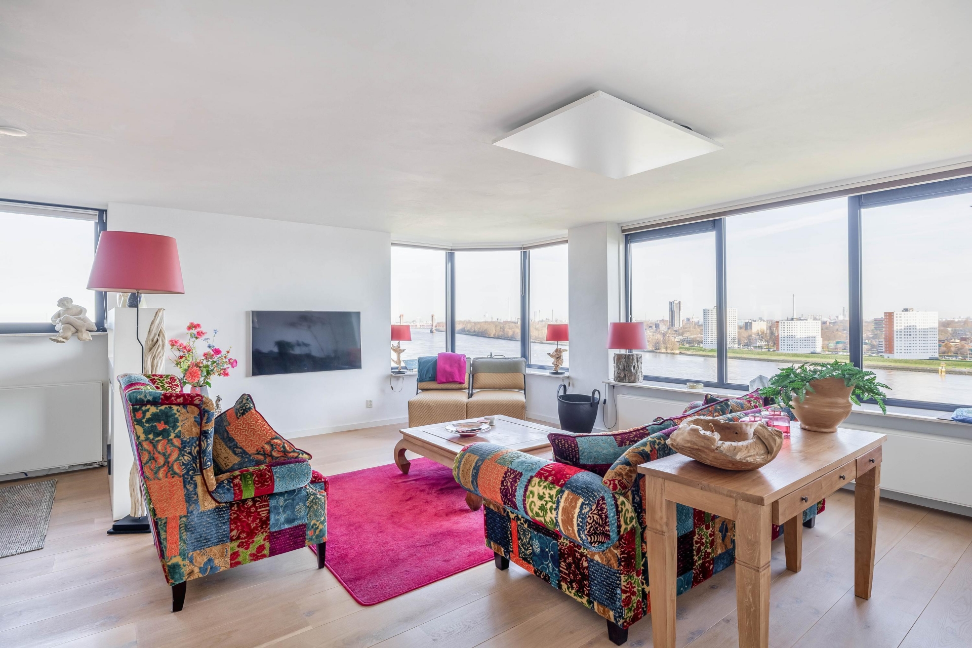 Zodra u het appartement binnenstapt, valt direct de ruime en lichte opzet op. De woonkamer van circa 42 m² biedt volop ruimte voor een royale zithoek en een grote eettafel. Grote raampartijen zorgen voor een prachtige lichtinval en maken het uitzicht over de omgeving en de rivier tot een dagelijks decor.