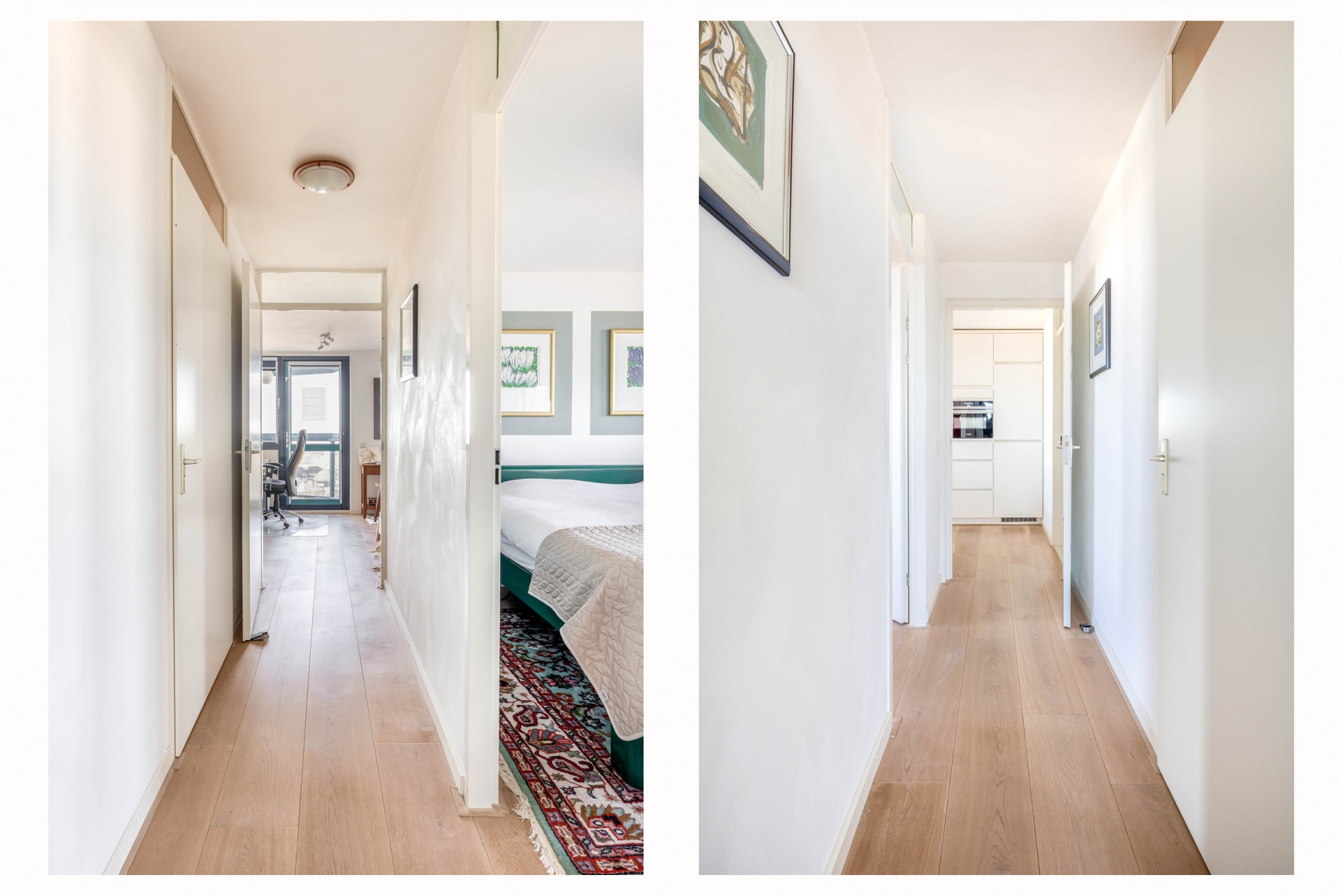 - Parketvloer en strak gestucte wanden en plafonds