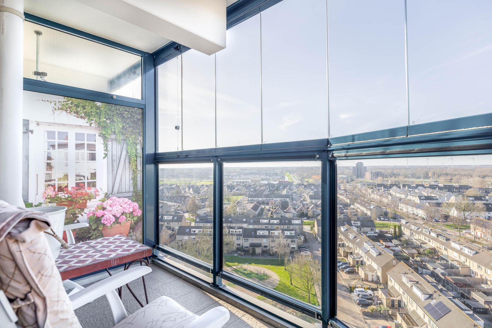 Een van de absolute pluspunten van dit appartement zijn de twee balkons, die beide zijn afgesloten met glas. Hierdoor kunt u vrijwel het hele jaar door comfortabel buiten zitten.