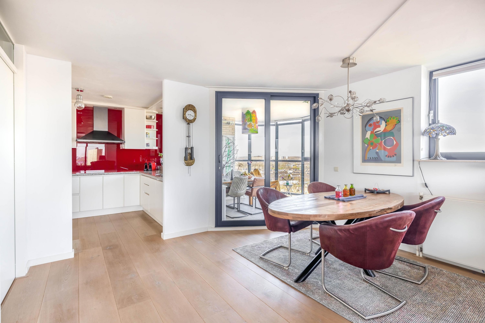 De moderne afwerking met een fraaie parketvloer, strak stucwerk op wanden en plafonds en een eigentijdse inrichting zorgt voor een stijlvolle en rustige uitstraling. Vanuit de woonkamer heeft u toegang tot één van de balkons waar u heerlijk kunt genieten van de zon en het weidse uitzicht.