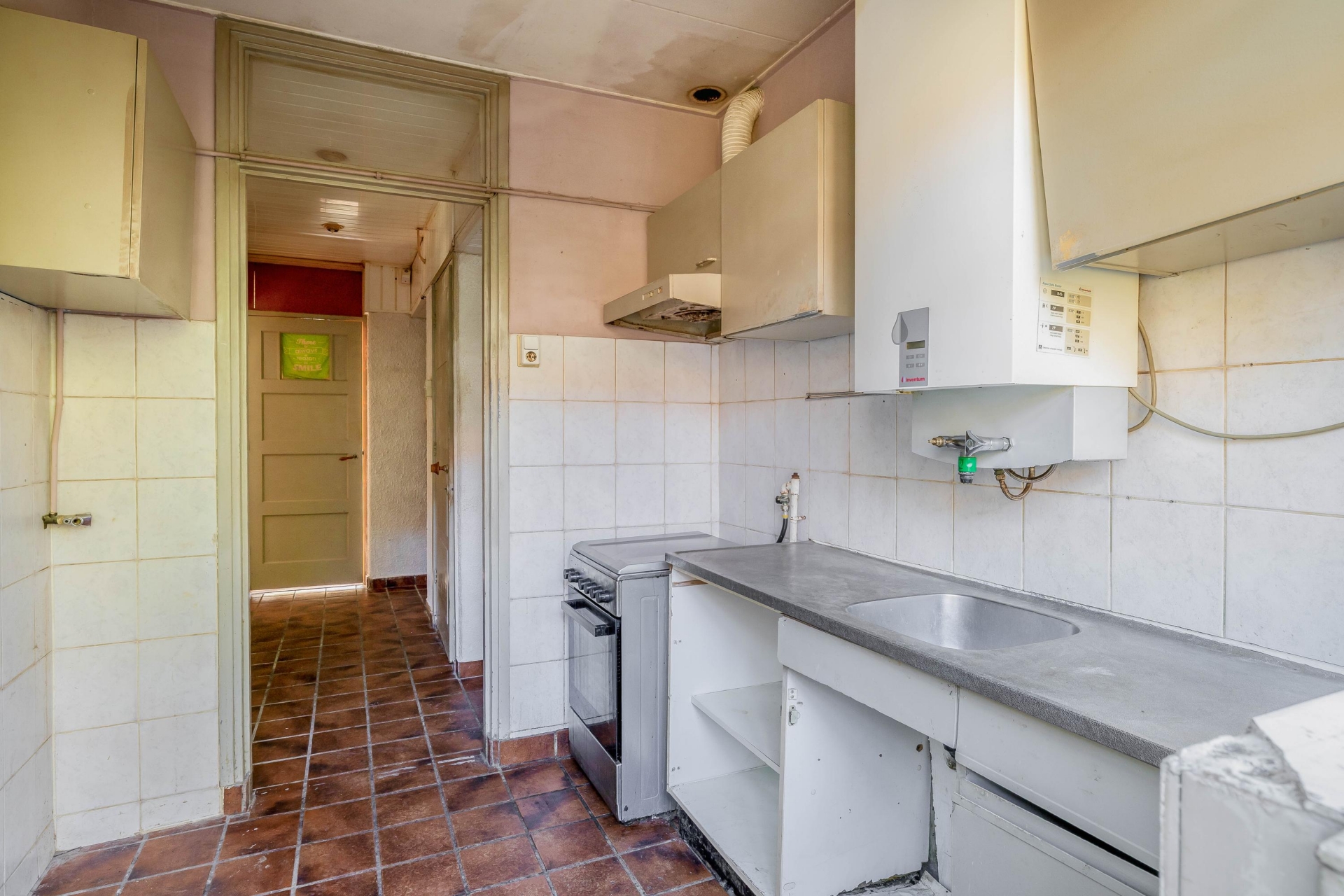 De keuken is functioneel geplaatst en kan volledig naar eigen smaak worden vernieuwd en ingericht.