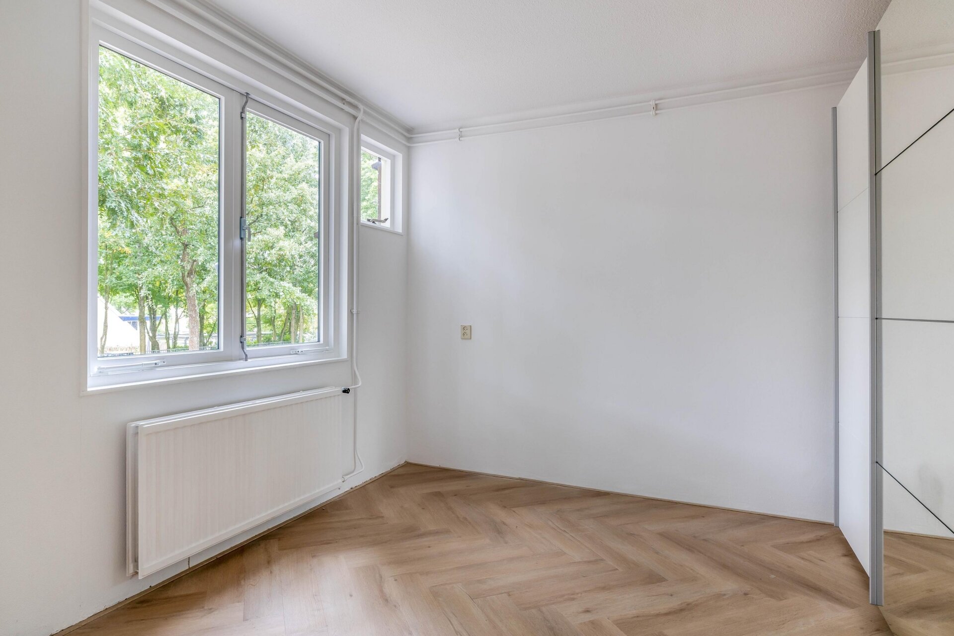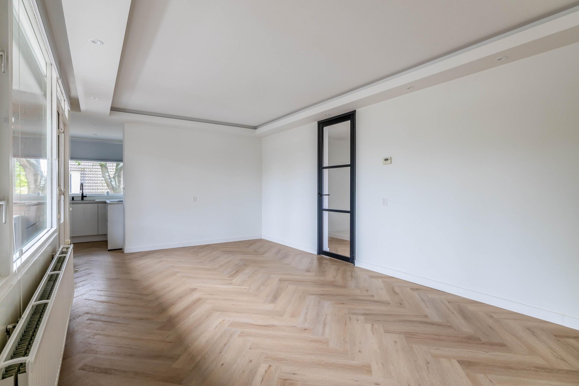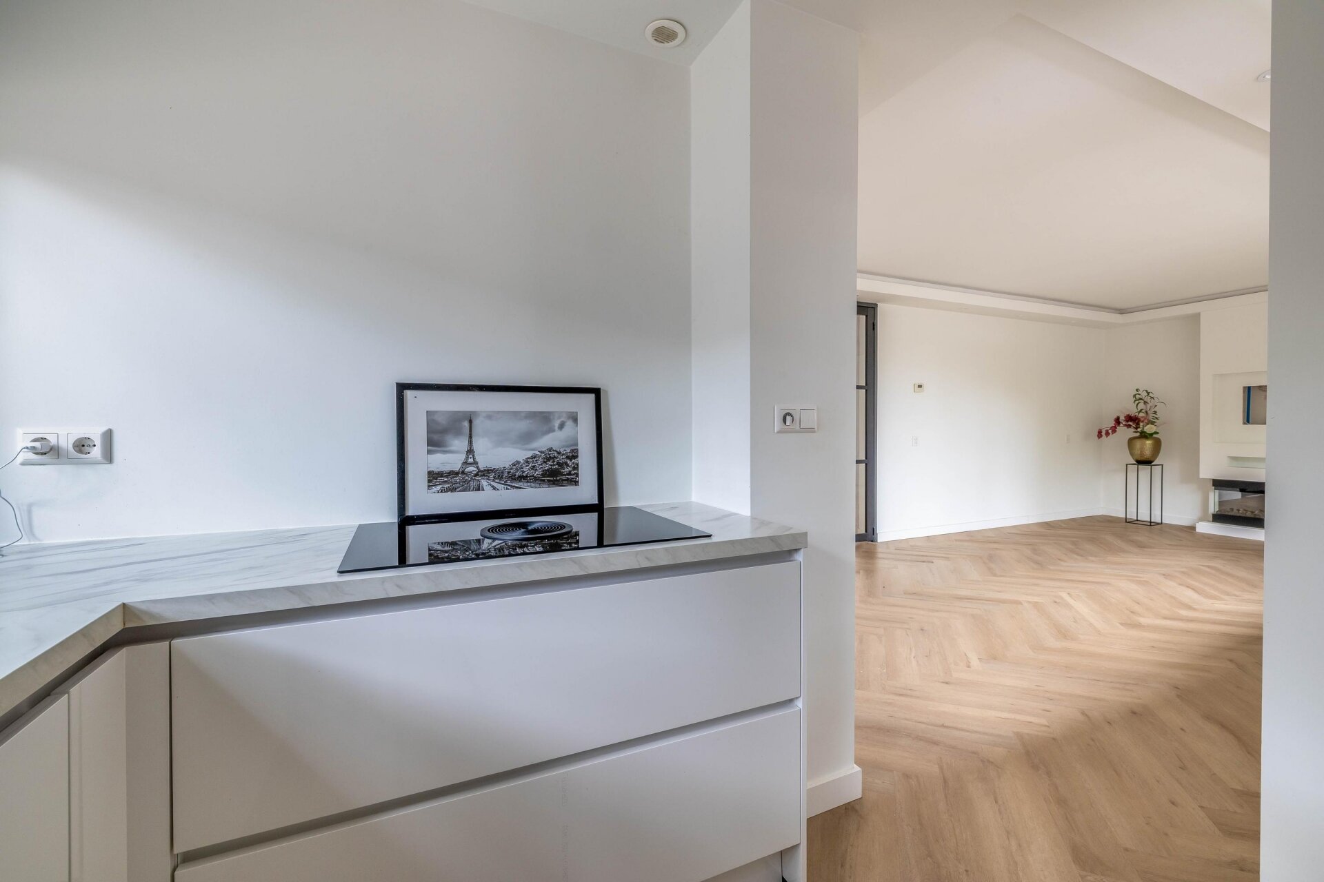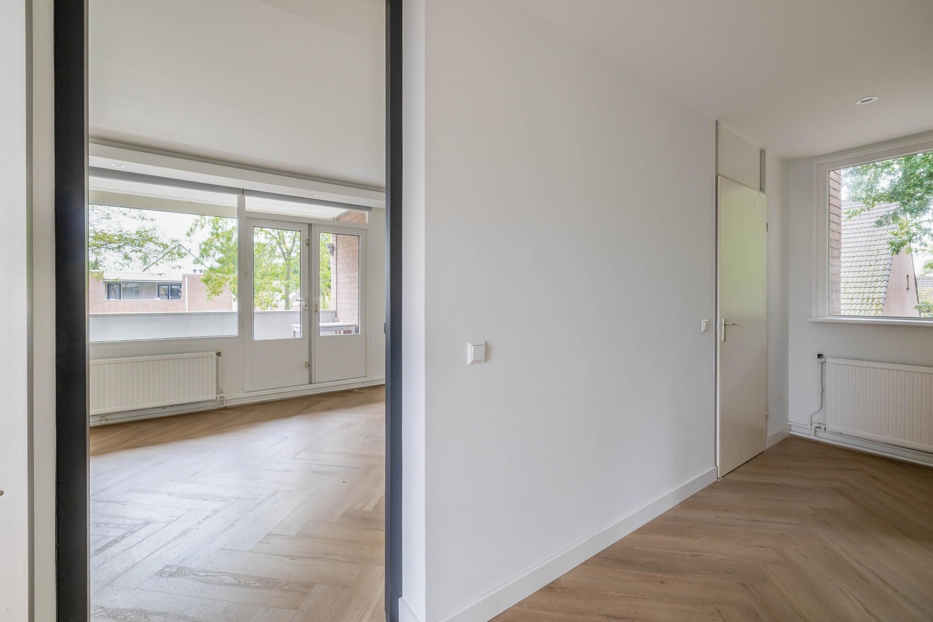 - Prachtige visgraatvloer door het appartement;