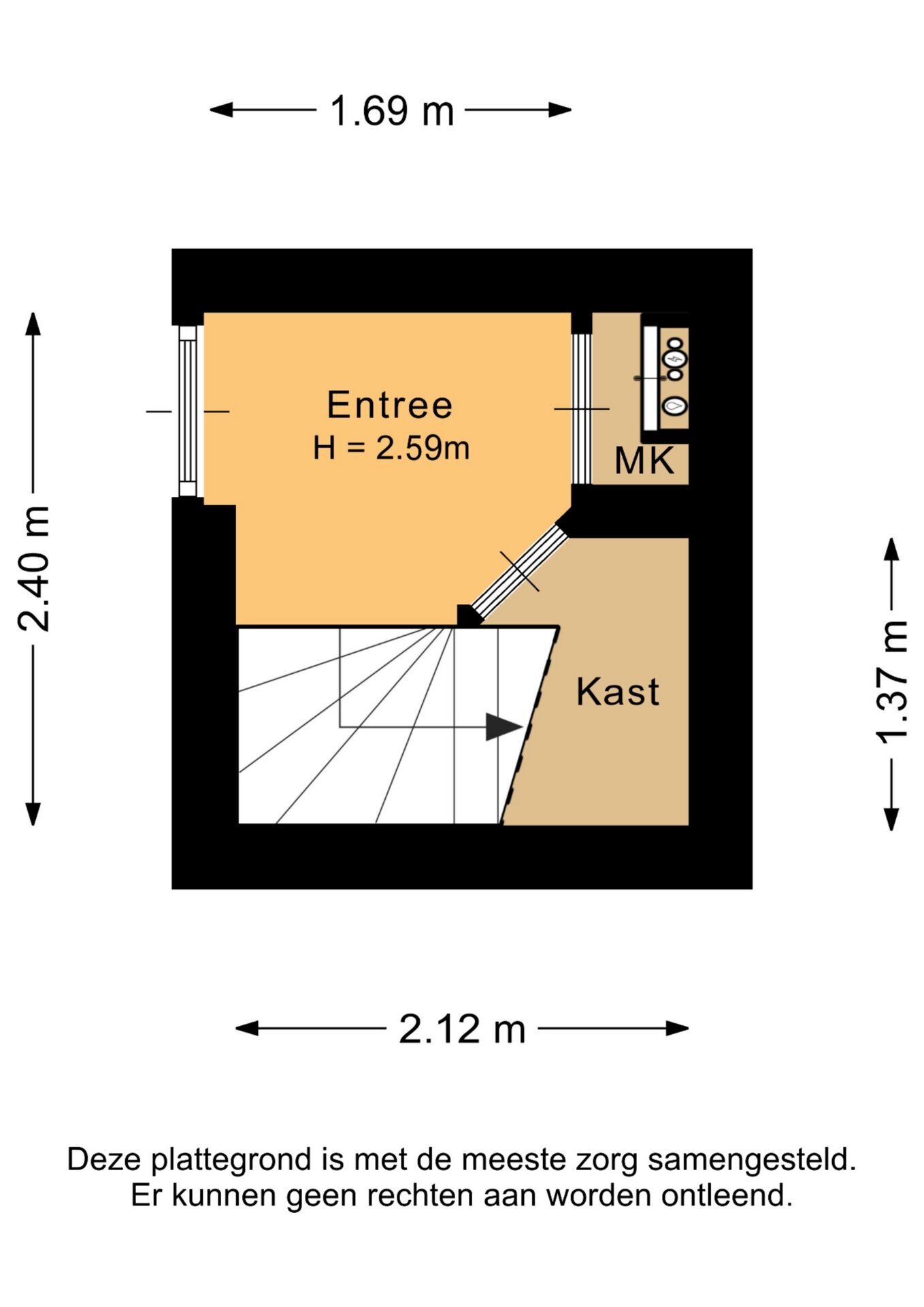 “Deze informatie is door ons met de nodige zorgvuldigheid samengesteld. Onzerzijds wordt echter geen enkele aansprakelijkheid aanvaard voor enige onvolledigheid, onjuistheid of anderszins, dan wel de gevolgen daarvan. Alle opgegeven maten en oppervlakten zijn indicatief.”