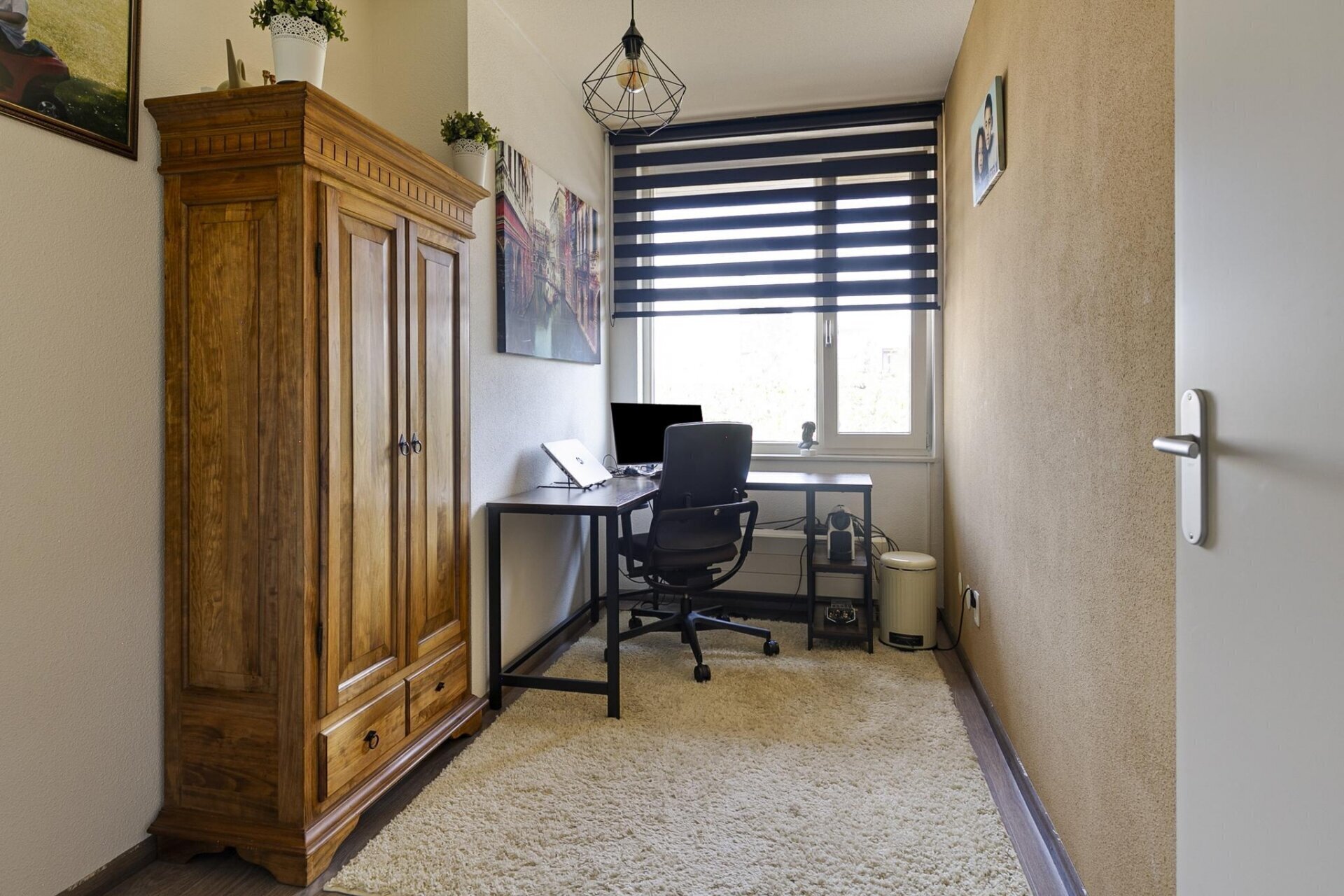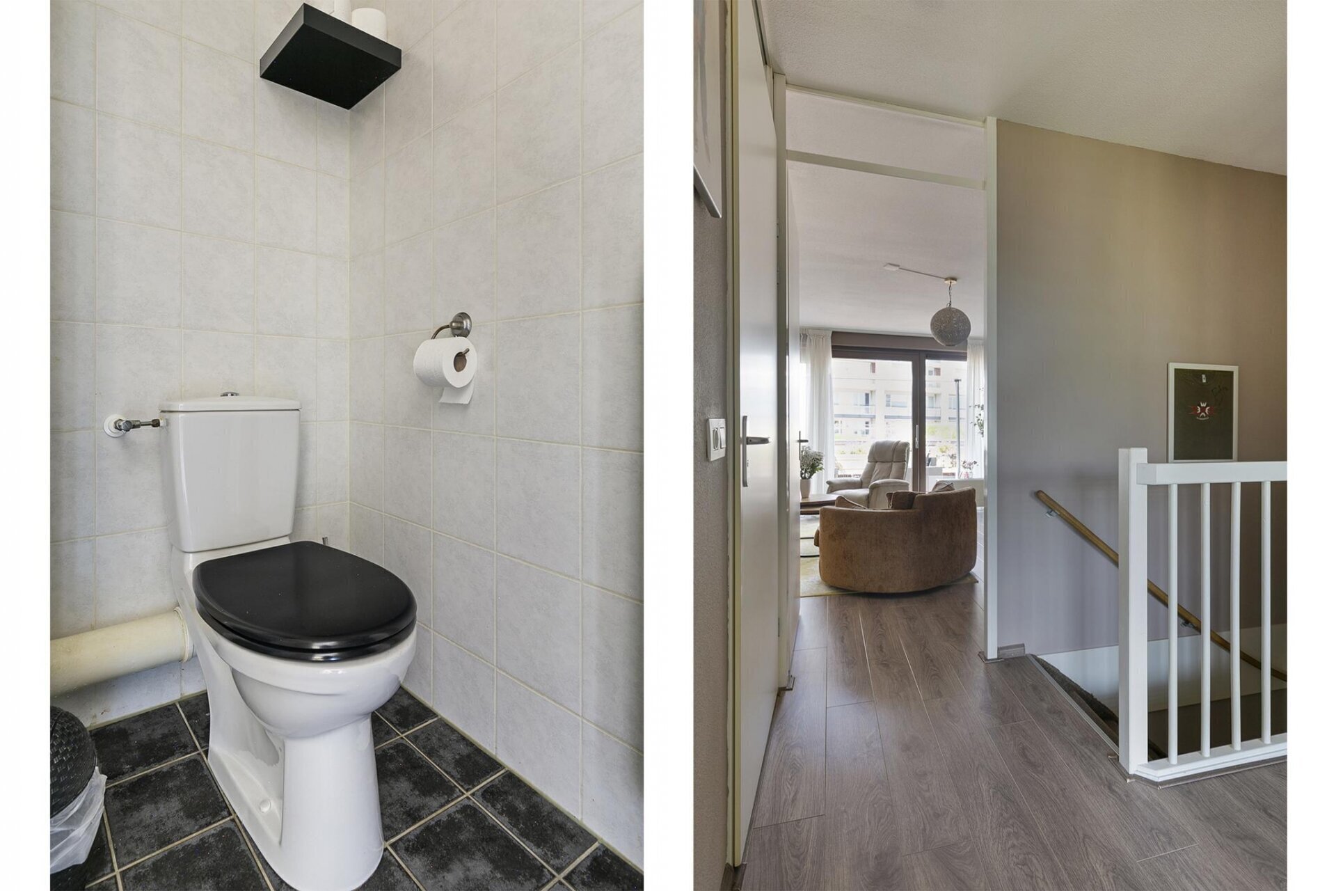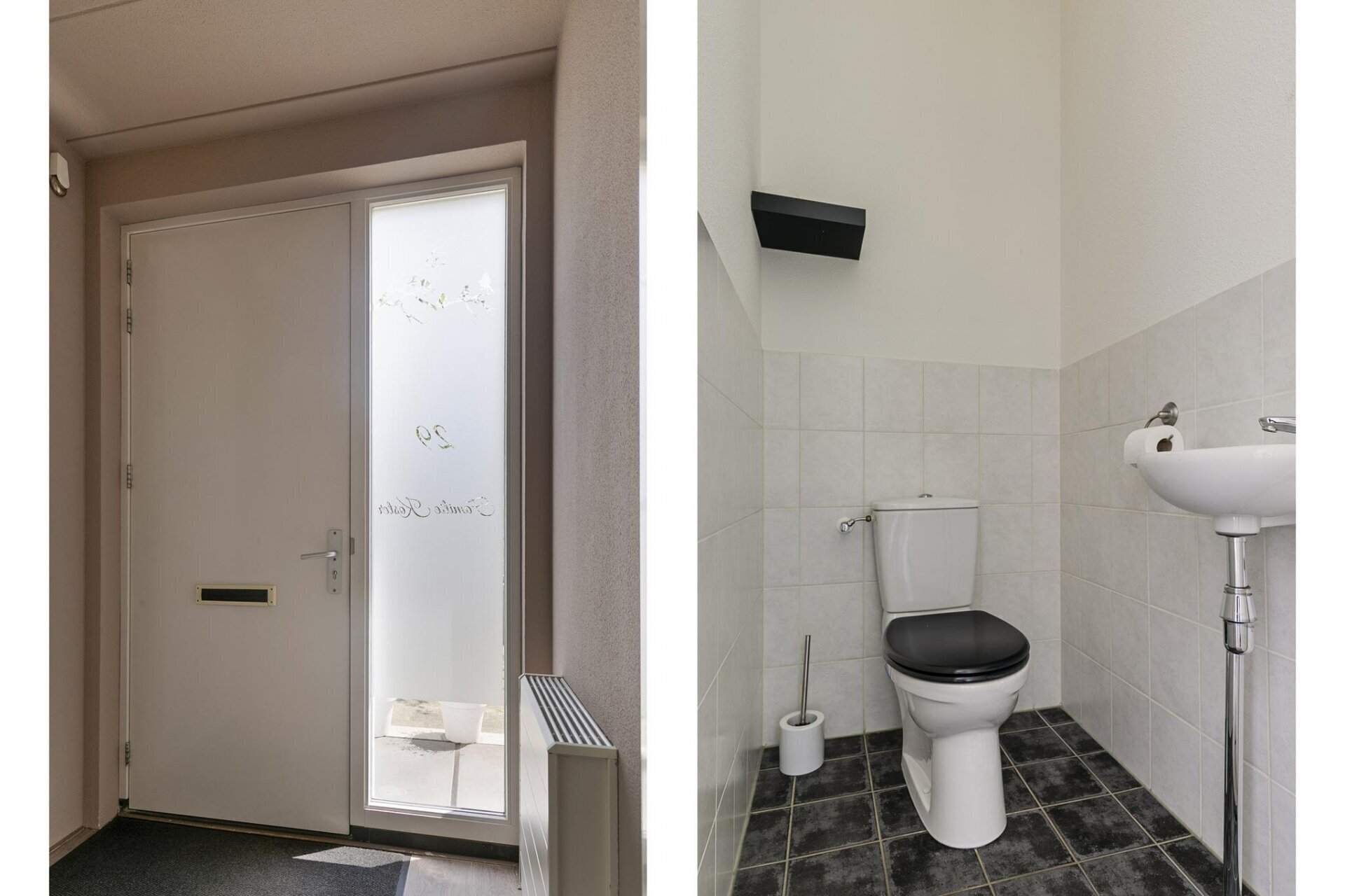 Via de woonkeuken is de tussenhal bereikbaar. Hier vind je het toilet met fonteintje en de trapkast. Vanuit deze hal bereik je de ruime inpandige berging, ideaal voor het stallen van fietsen.