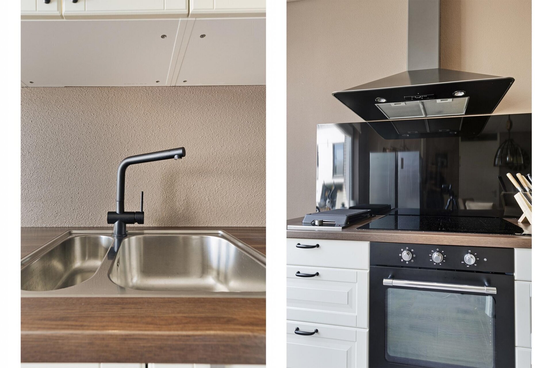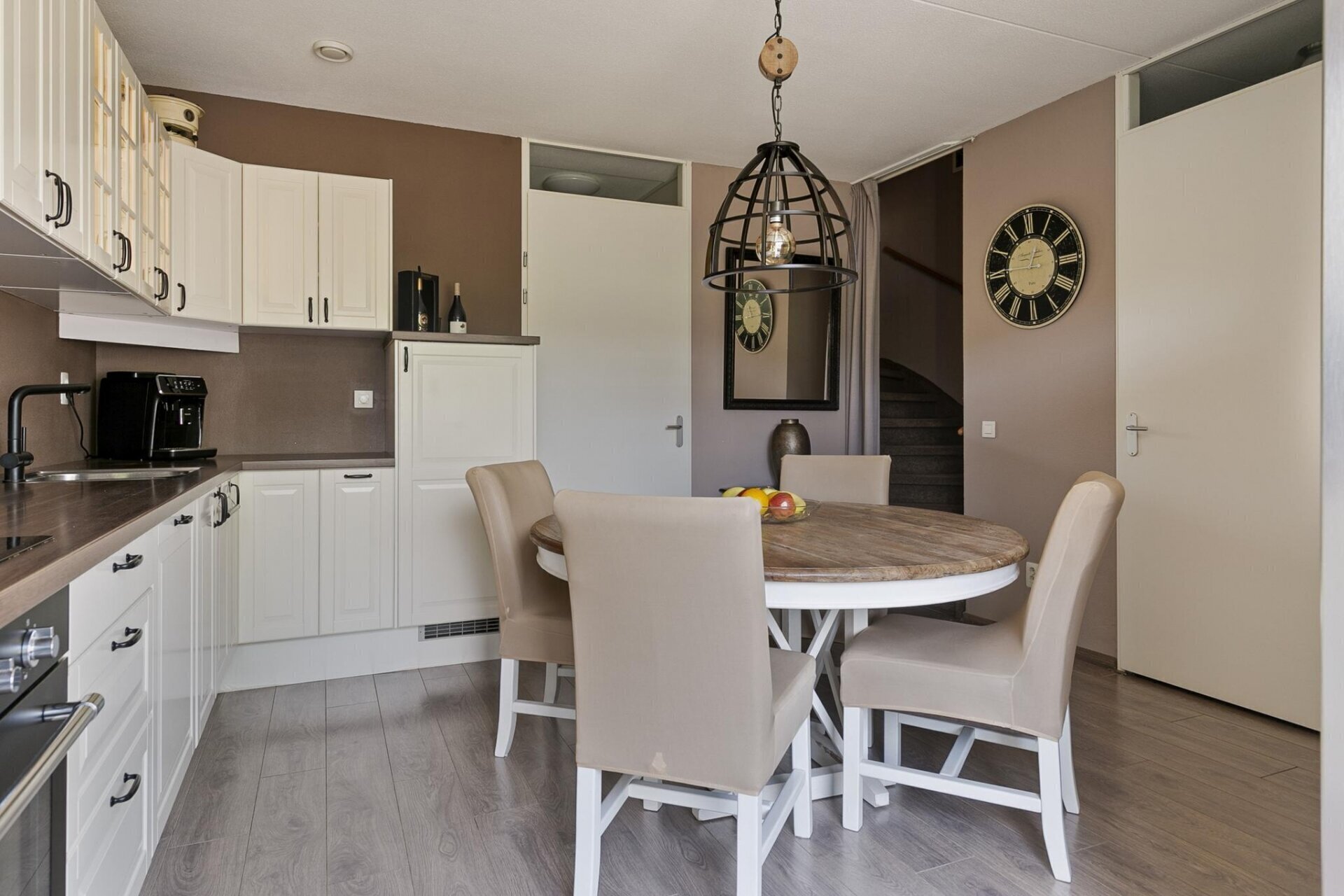 Vanuit de hal betreed je de ruime woonkeuken, opgesteld in L-vorm en in 2023 voorzien van diverse nieuwe inbouwapparatuur waaronder een oven, inductie kookplaat en vaatwasser. Verder beschikt de keuken onder meer nog over een afzuigkap en een grilplaat.
