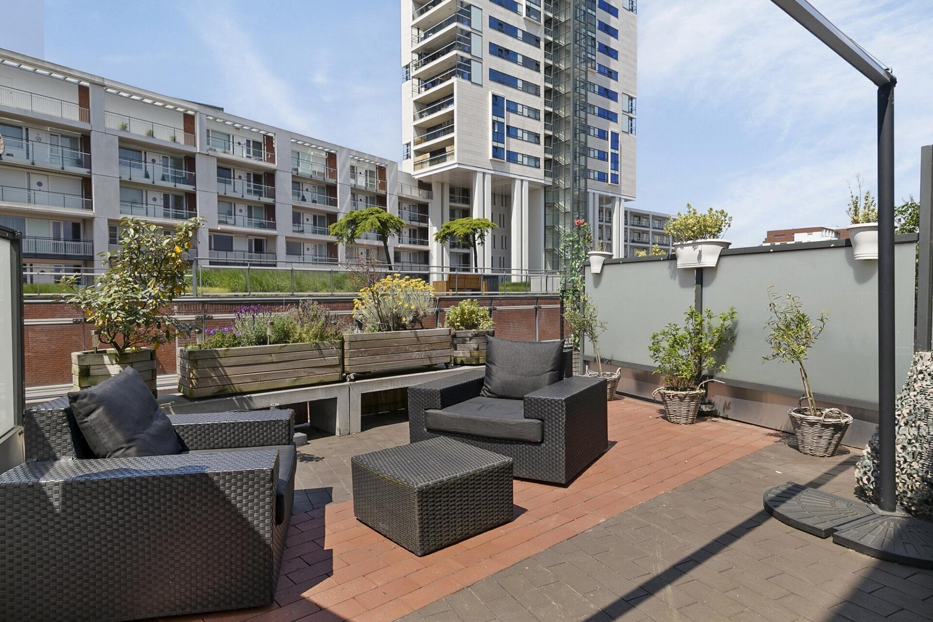 Zonnig dakterras van ruim 30 M2 op het zonnige Westen gelegen.