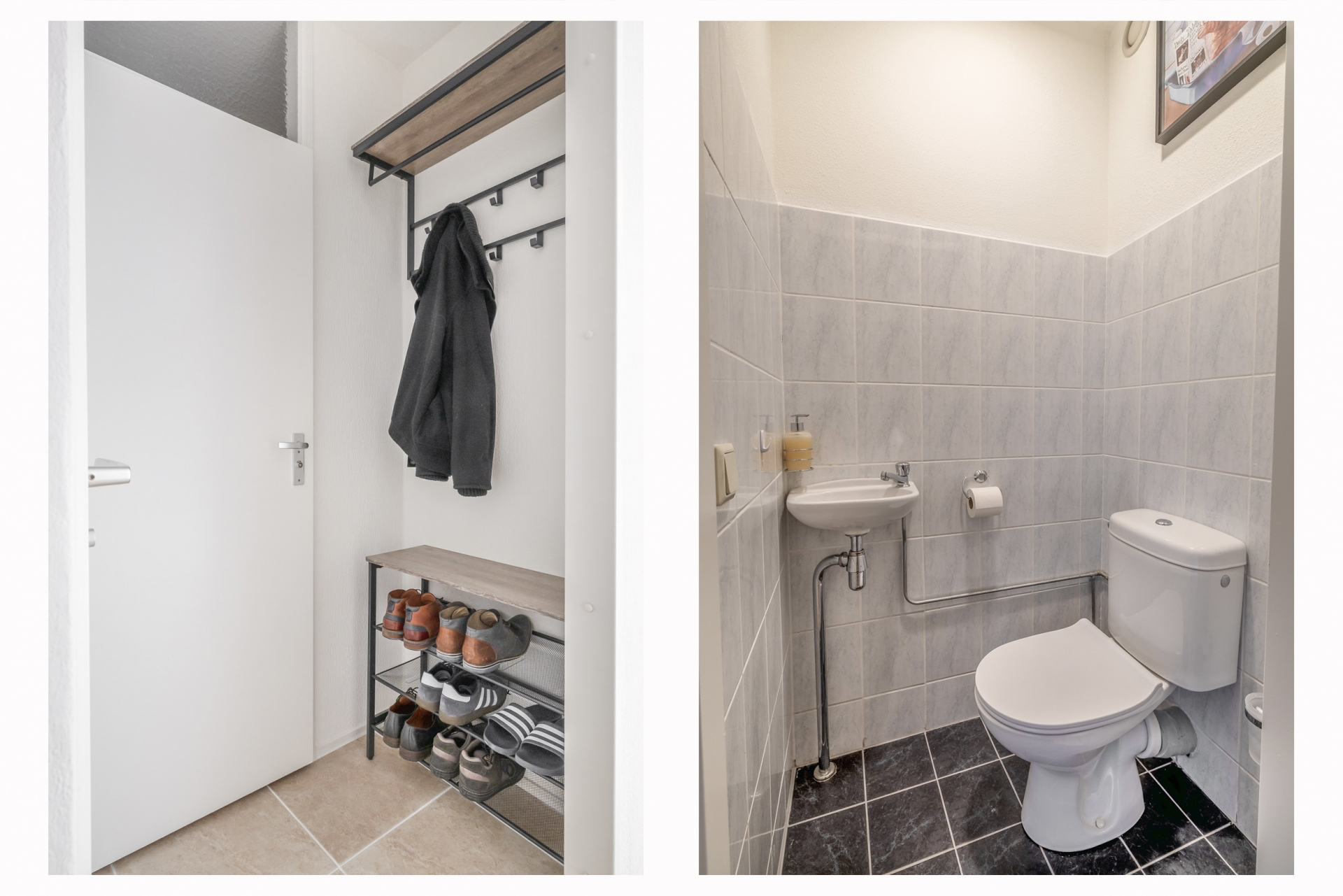 Entree/hal met intercom, meterkast en toilet met fonteintje.