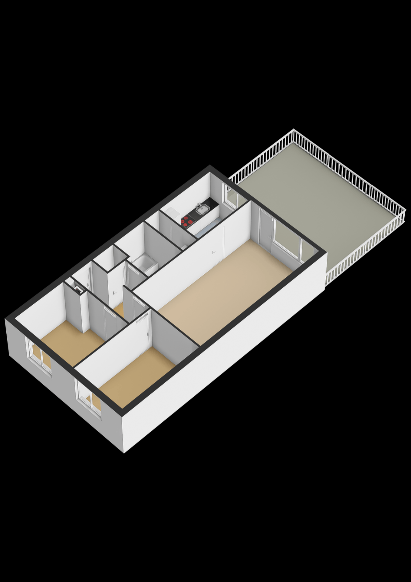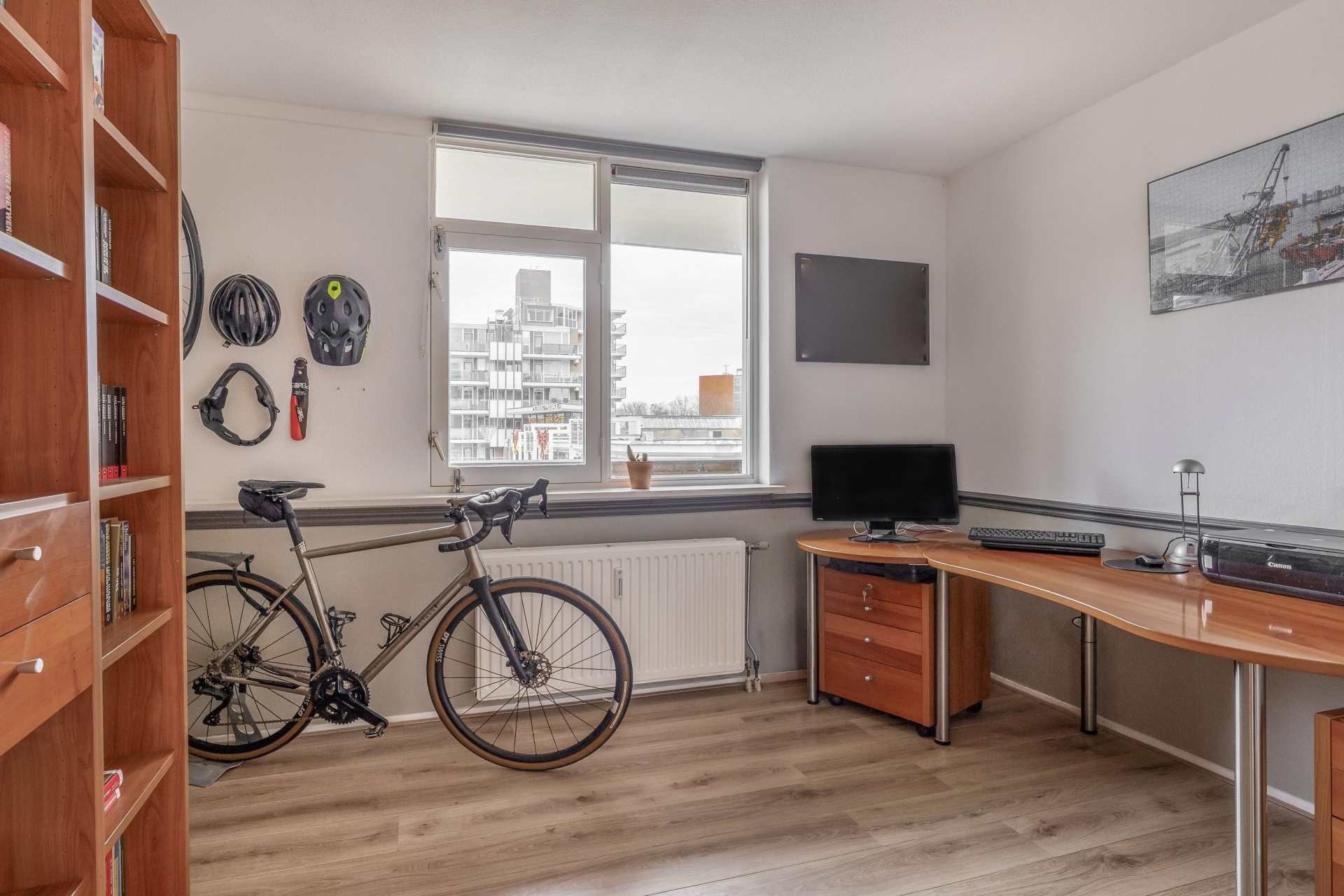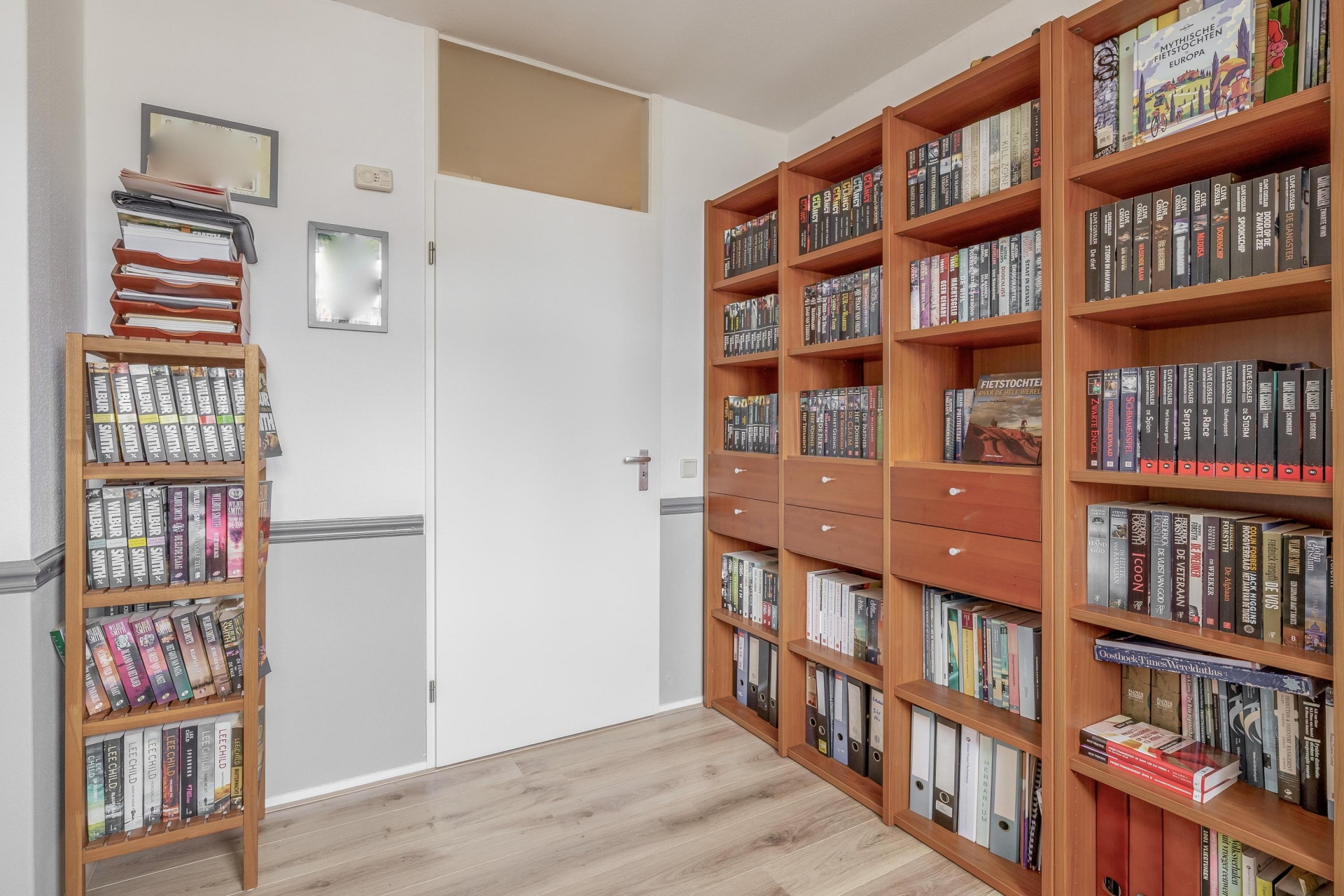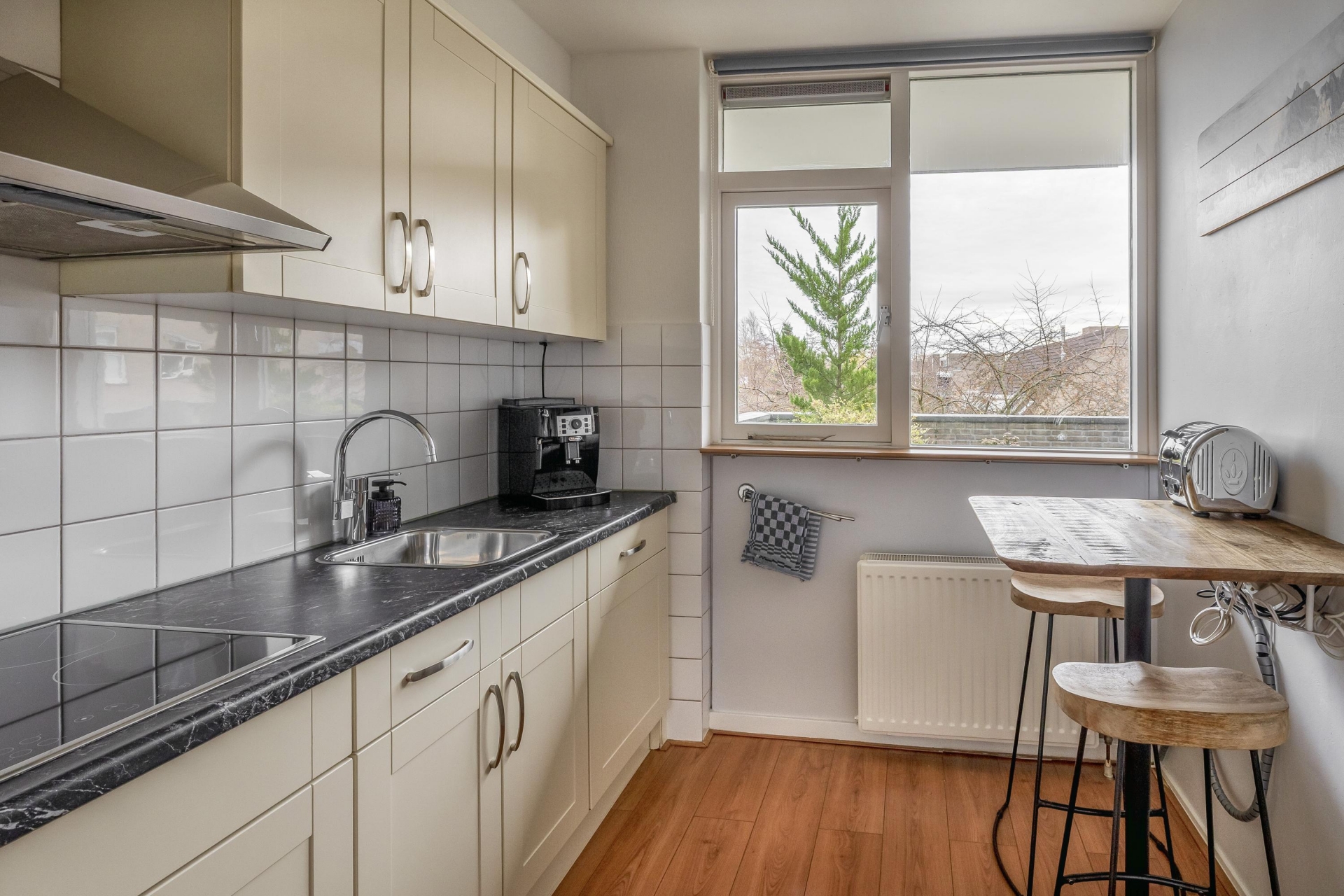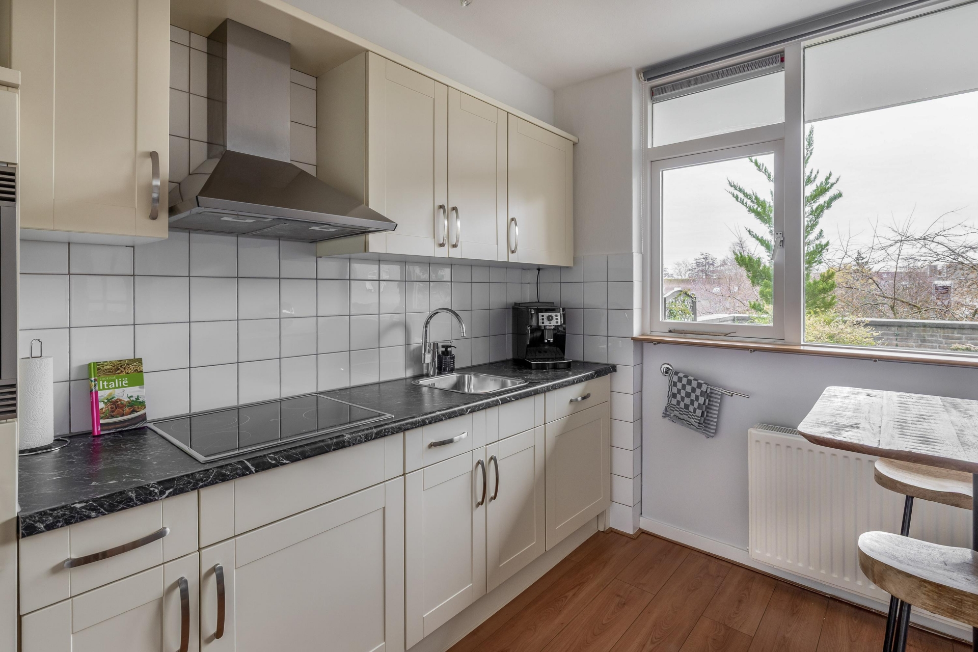 Aan de achterzijde ligt de ruime en lichte woonkamer. Vanuit hier bereikt u het balkon, waar u vrij uitzicht heeft over de wijk.