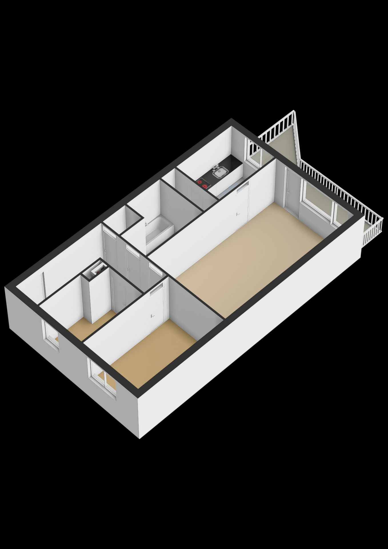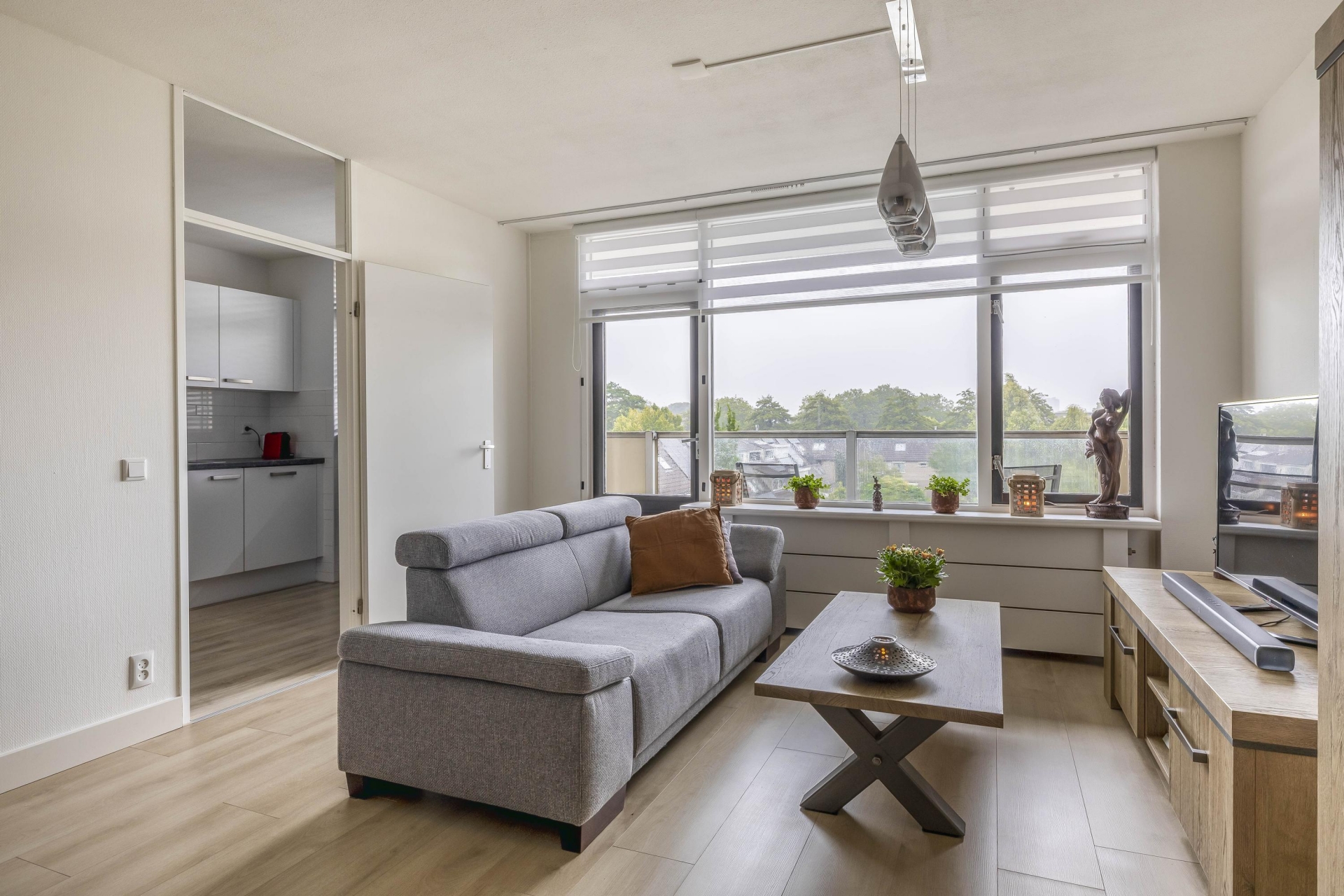 Aan de achterzijde ligt de ruime en lichte woonkamer. Vanuit hier bereikt u het balkon, waar u vrij uitzicht heeft over de wijk.