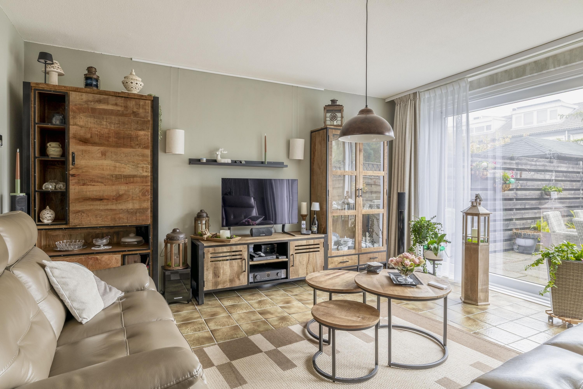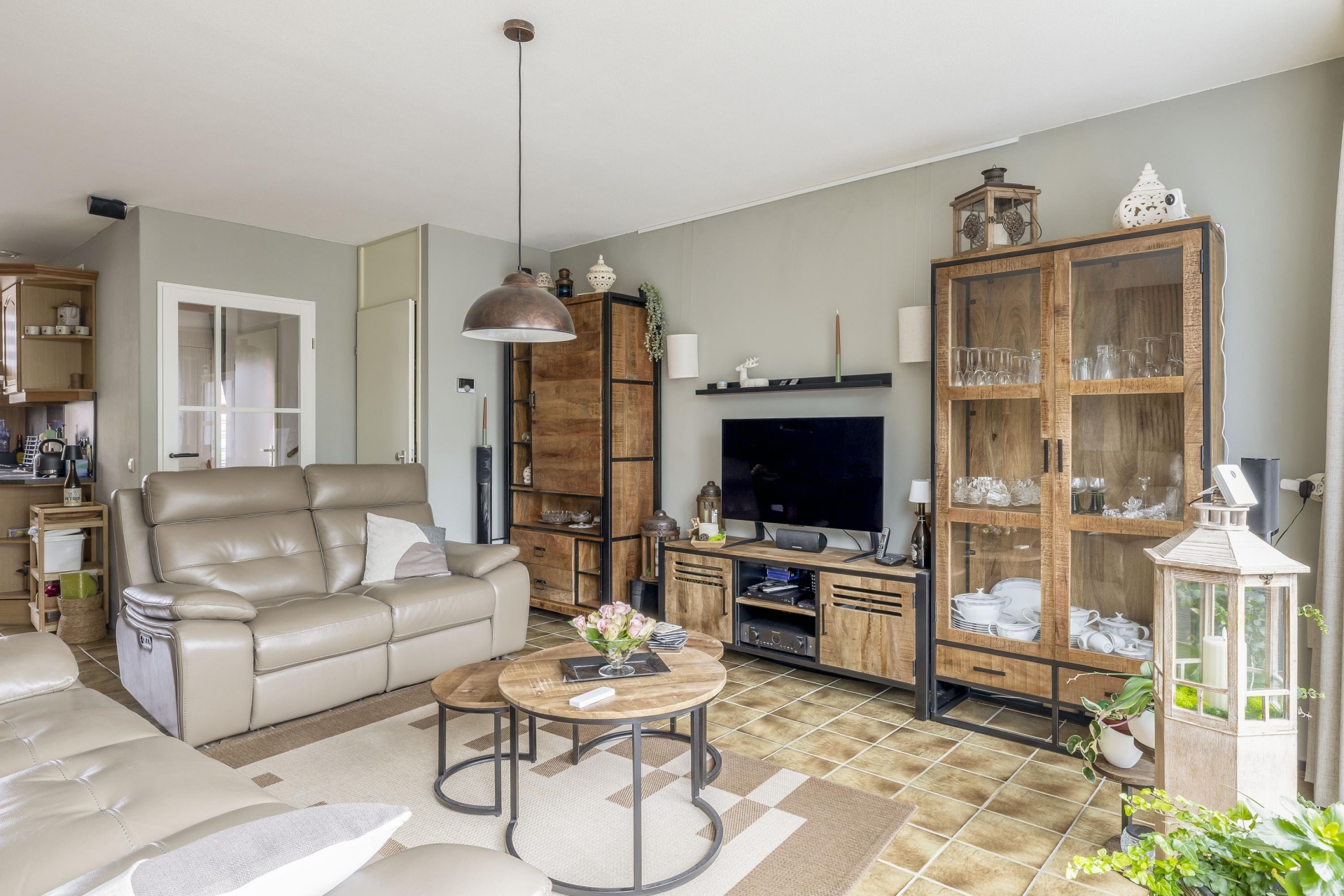 De woonkamer is tuingericht en dankzij de grote raampartij is het er de hele dag door heerlijk licht. De ruimte is praktisch in te delen met een ruime zithoek en aparte eethoek. Via de schuifpui loop je zo de achtertuin in – een fijne verlenging van je leefruimte.