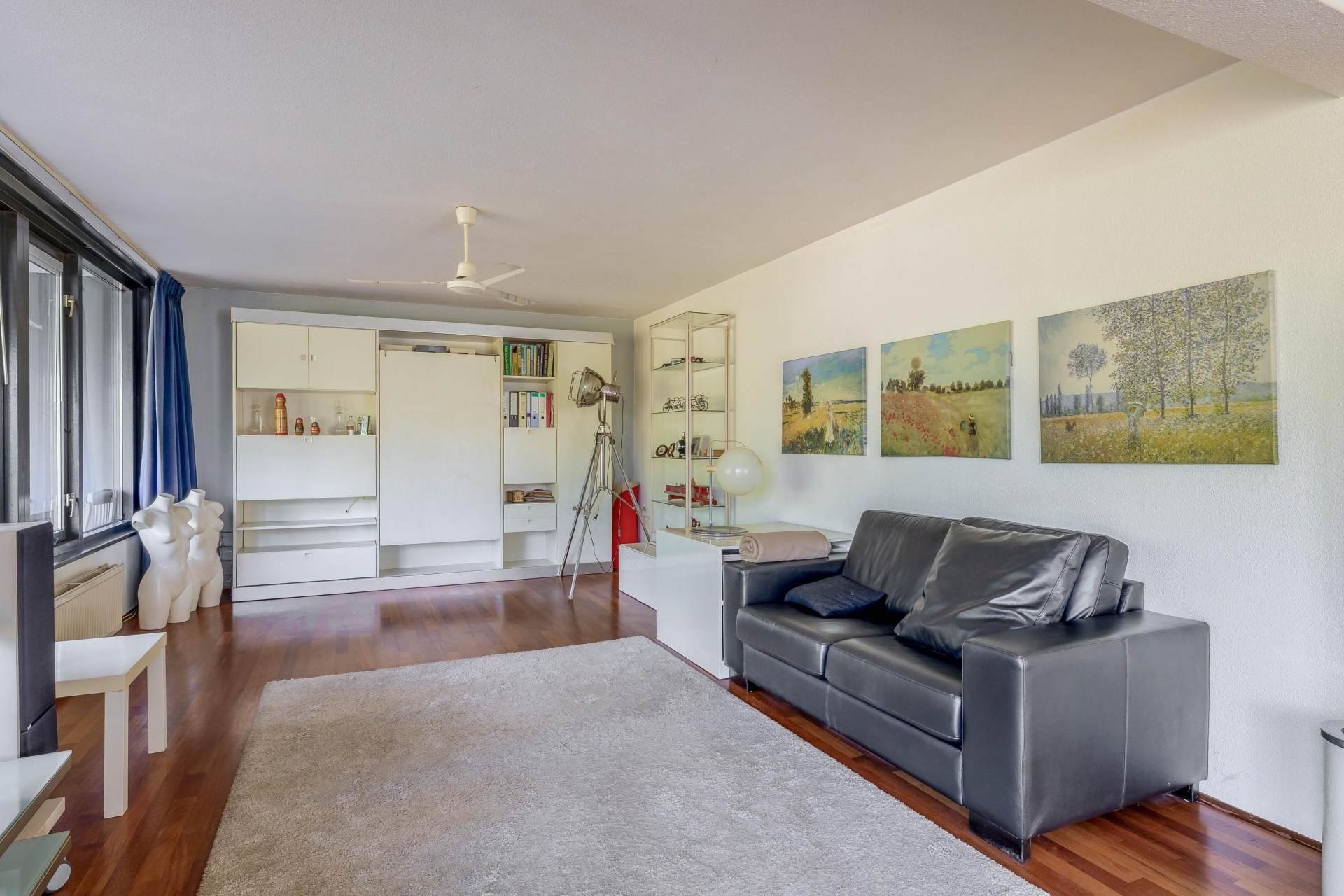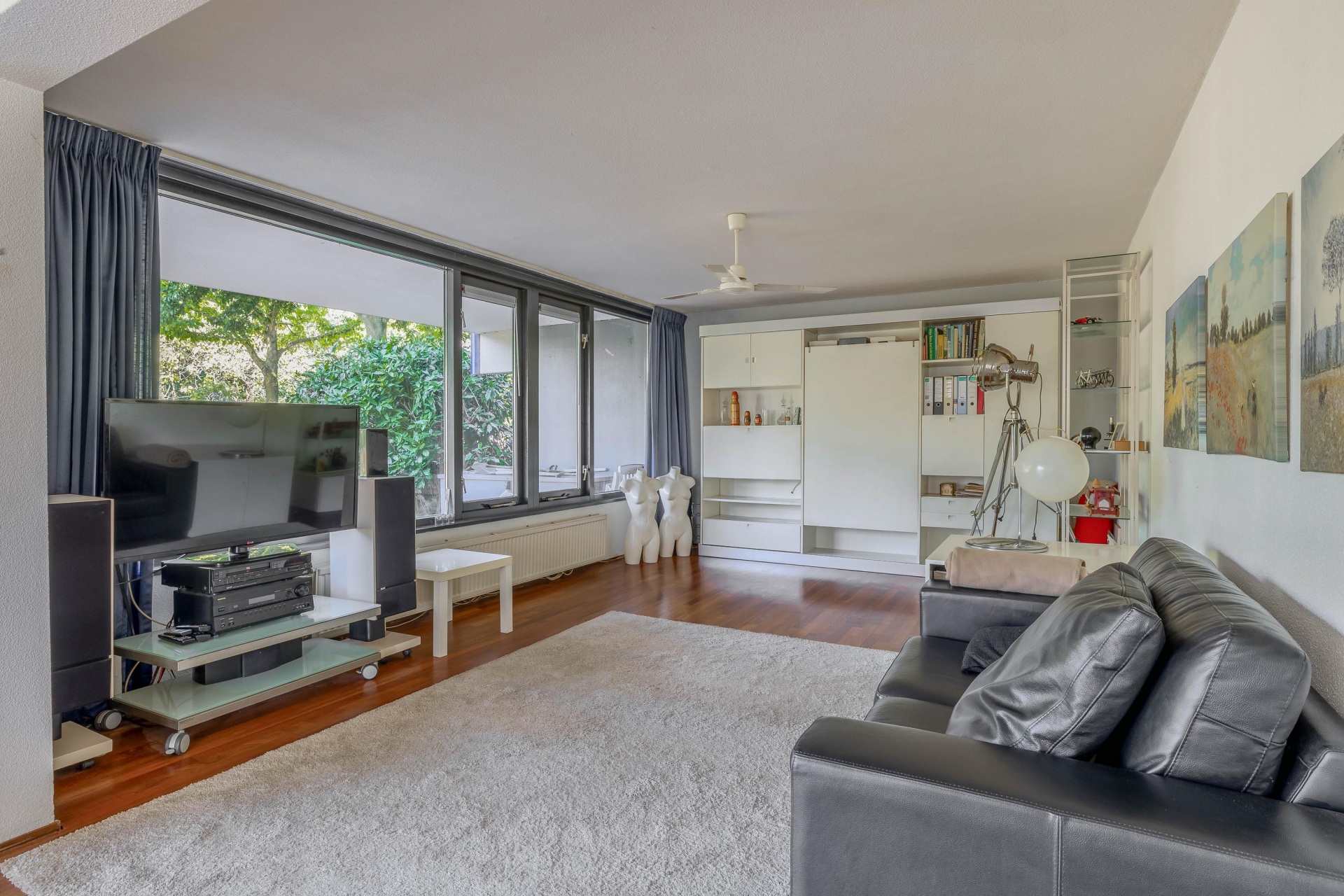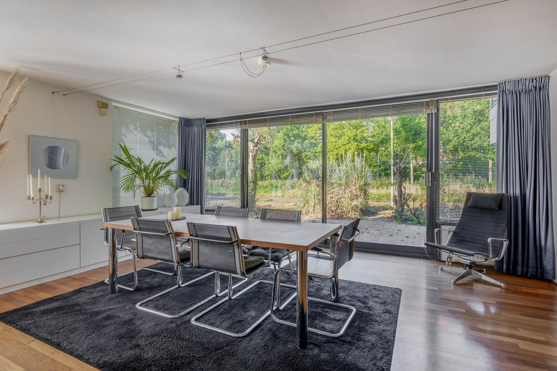 De woonkamer is aangenaam ruim en licht dankzij de grote schuifpui naar de zonnige achtertuin op het zuidwesten. Hier zit je ’s middags en ’s avonds heerlijk in de zon.