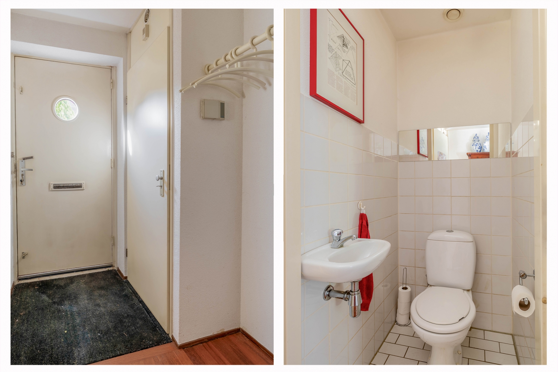 Entree via de voordeur naar een ruime hal met garderobehoek, meterkast en toilet met fonteintje. Vanuit hier heb je toegang tot verschillende vertrekken binnen de woning.
