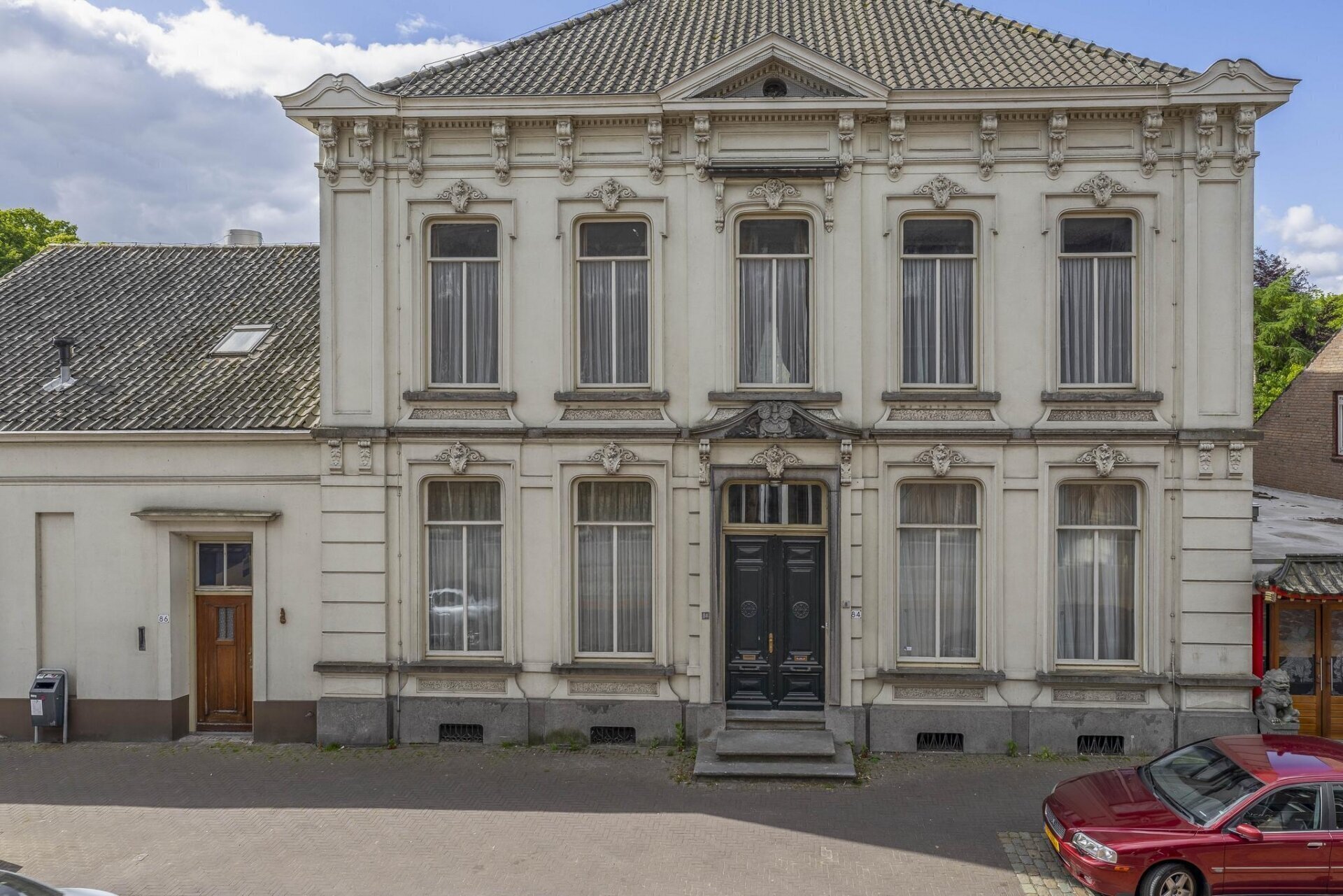 Ontdek deze buitenkans om te wonen in het centrum van Oudenbosch in een uniek pand met historische grandeur! Gelegen aan de historische Markt van Oudenbosch, presenteren wij namelijk met trots dit monumentale vrijstaande herenhuis met naastgelegen koetshuis op huisnummer 84-86. Dit in Eclectische stijl gebouwde pand dateert uit circa 1880 en is ontworpen door de vooraanstaande architect Cornelis Petrus van Genk. Het herenhuis is een toonbeeld van tijdloze elegantie en vakmanschap, met karakteristieke elementen zoals hoge plafonds met authentieke sierlijsten en ornamenten, een gepleisterde en geschilderde bakstenen gevel, een schilddak met oud-Hollandse pannen en sierlijke hoekschoorstenen. Het pand is in 2020 van binnen grondig verbouwd en voorzien van een nieuwe keuken van Goossens, 2 badkamers en 2 aparte toiletten, een lift, een nieuwe electriciteitsinstallatie, netwerkbekabeling, alarmsysteem en rookmelders alsook een camerabewakingssysteem. Daarnaast beschikt de woning over een vrijstaand bijgebouw van maar liefst 57 m² voorzien van eigen cv-installatie.