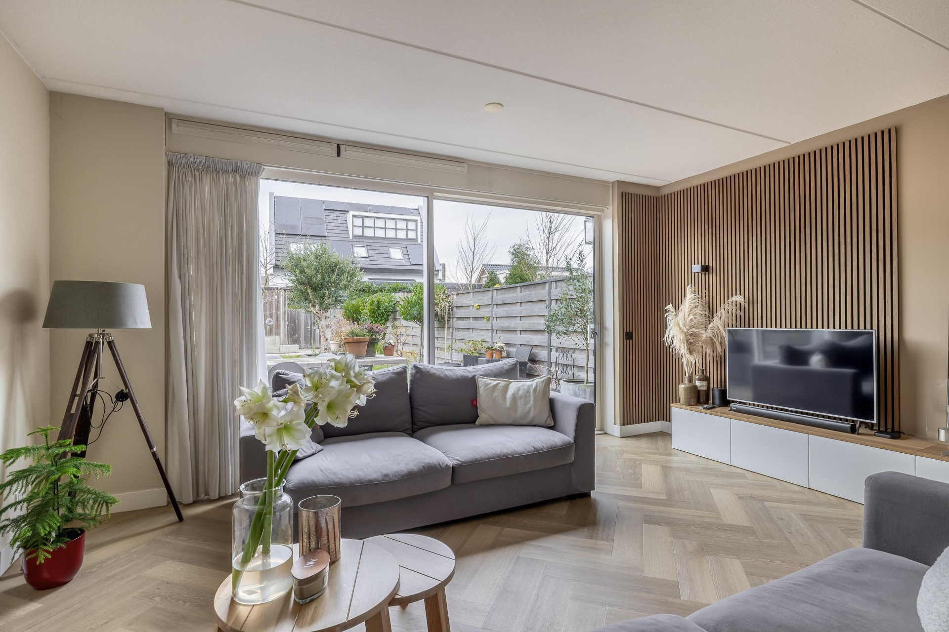 LICHTE WOONKAMER MET UITZICHT OP DE TUIN
