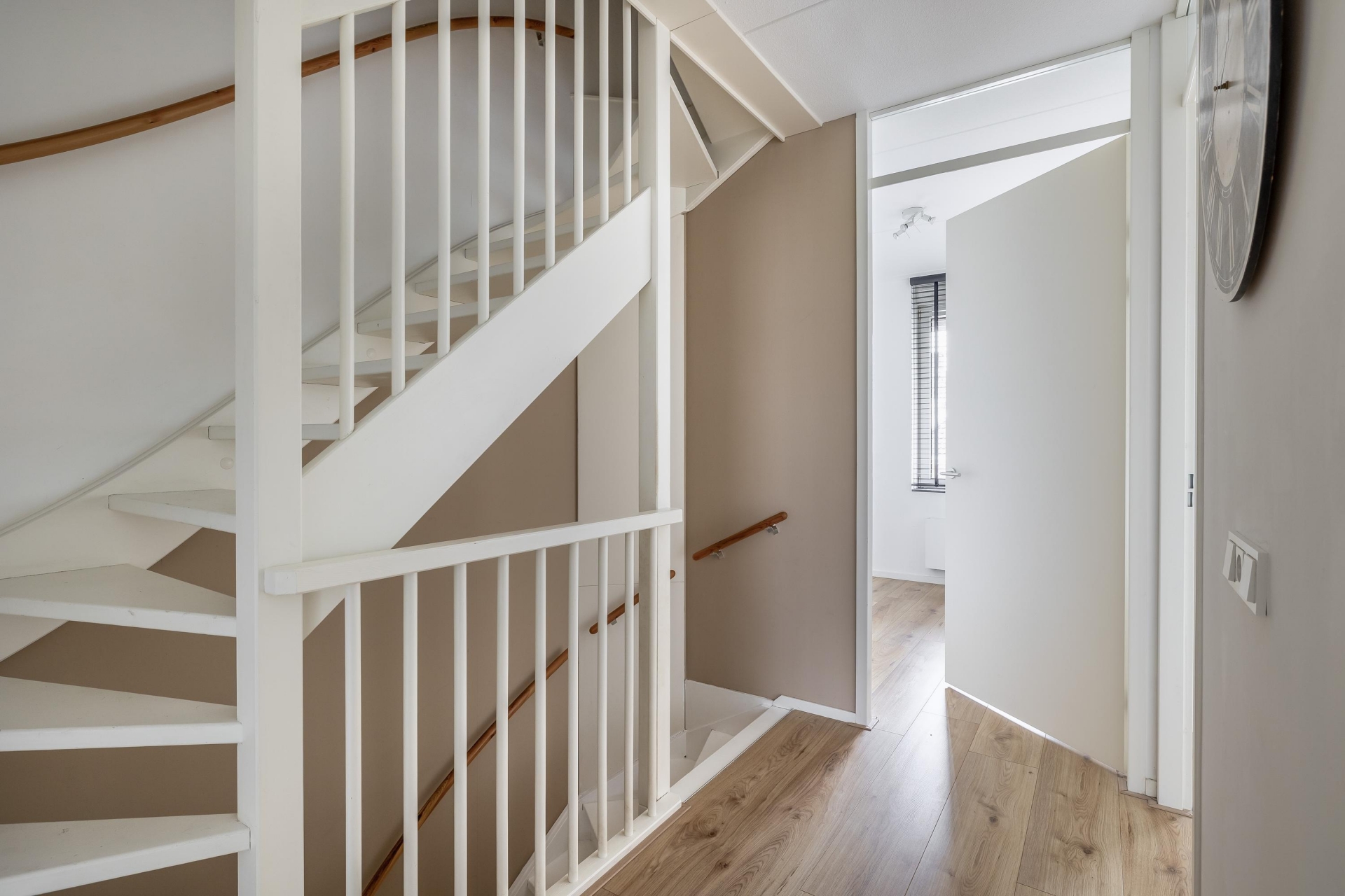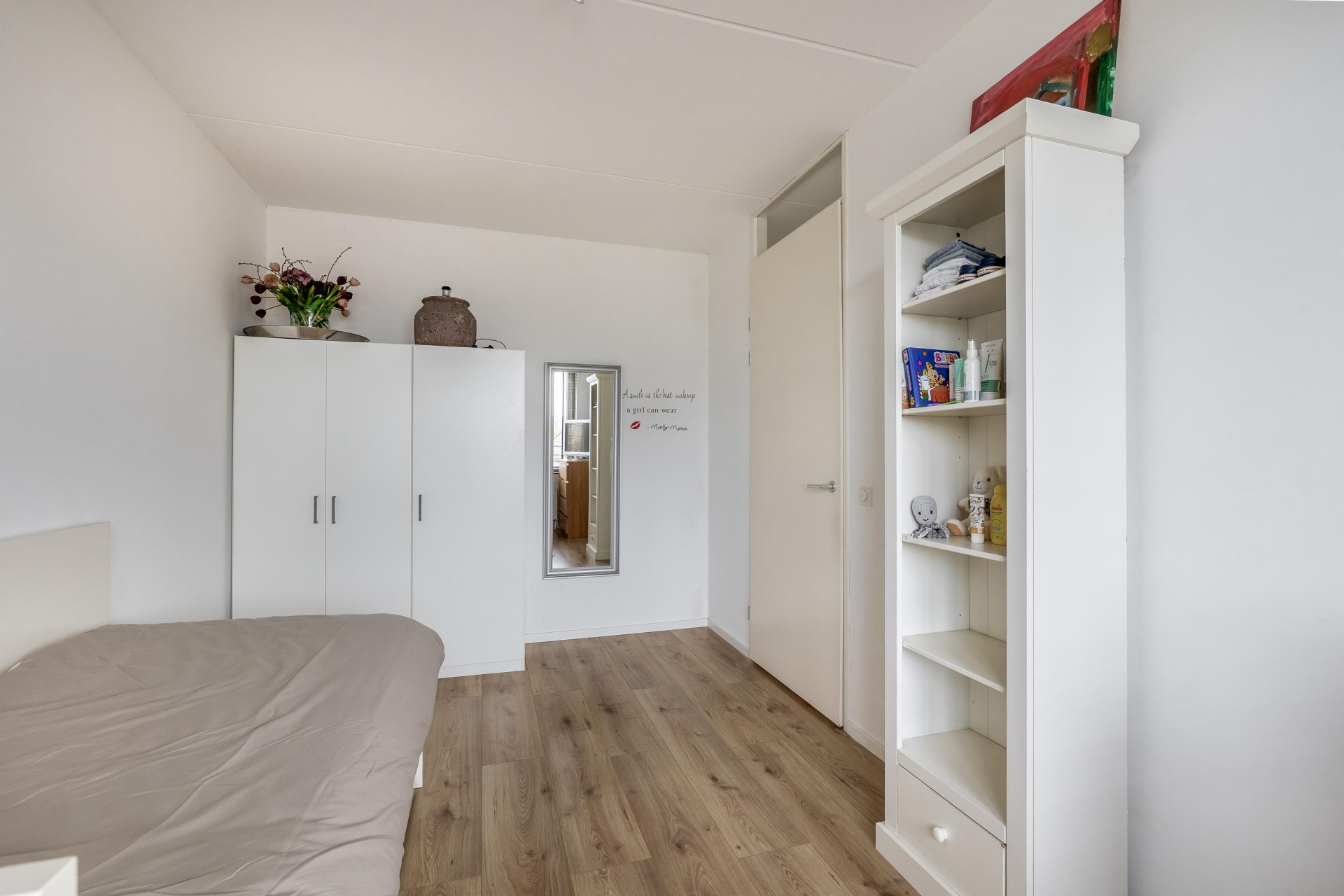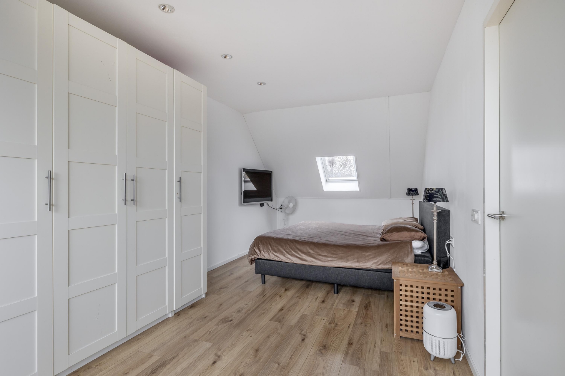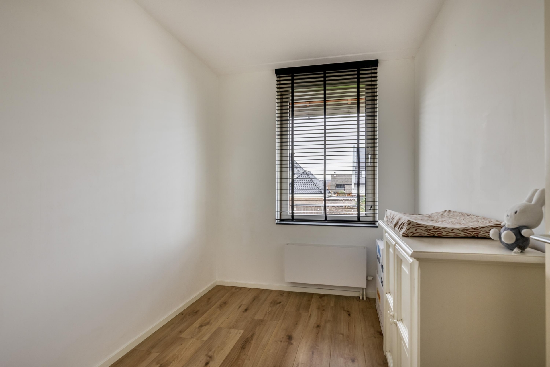 Op de 1e verdieping bevinden zich 3 van de 4 slaapkamers, waarvan de grootste aan de achterzijde ligt en uitzicht biedt op de tuin. De slaapkamers zijn netjes afgewerkt en ideaal als ouderslaapkamer, kinderkamer of werkruimte. De badkamer is licht, modern en compleet: voorzien van een dubbele wastafel, tweede toilet en inloopdouche met regendouche. De 2e verdieping biedt een riante vierde slaapkamer met dakkapel en volop bergruimte, én ruimte voor je wasmachine en droger. Hier is een overloop met in de hoek keurig de wasmachine en droger weggewerkt.