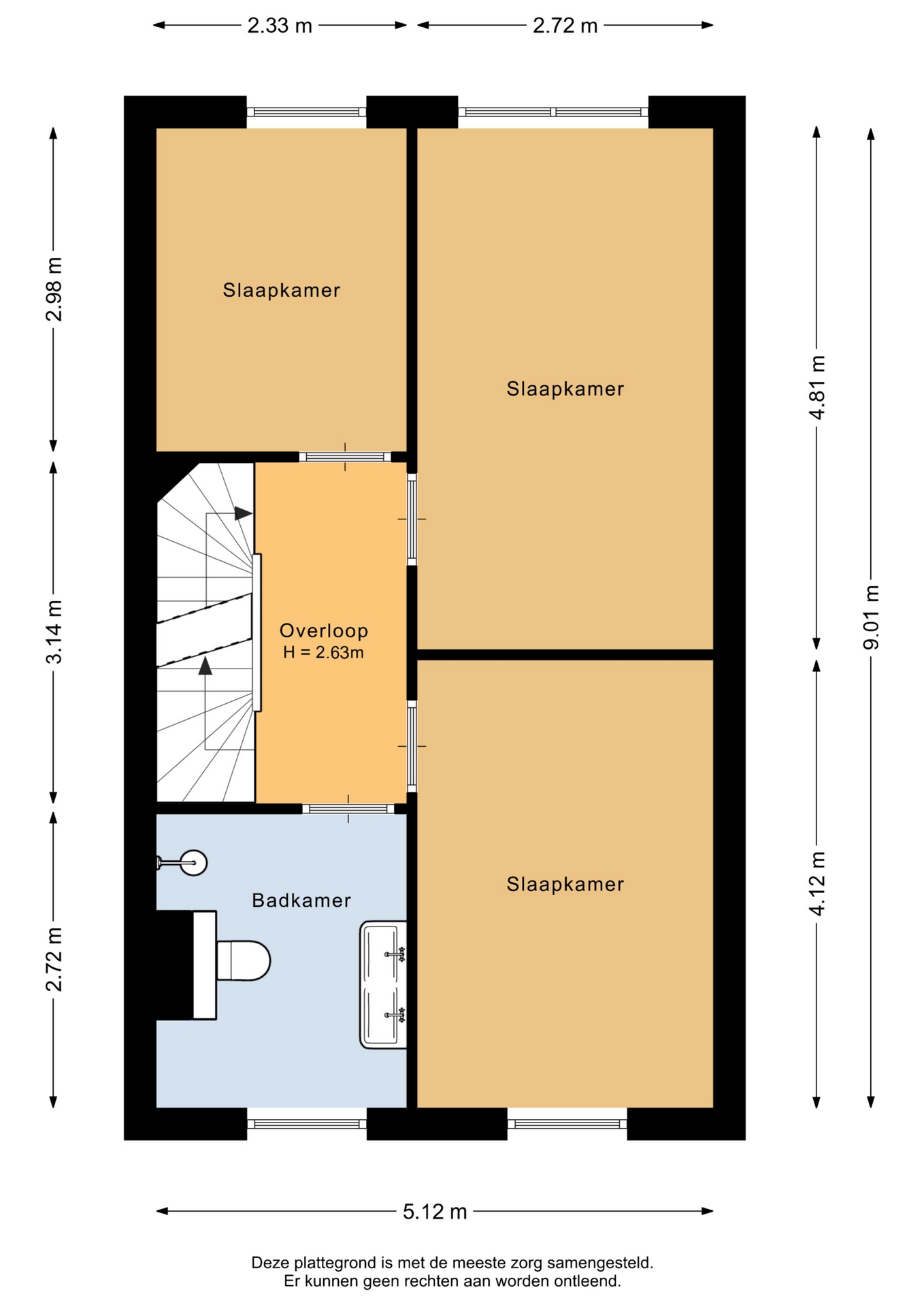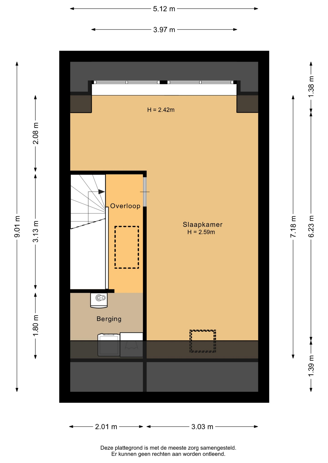 “Deze informatie is door ons met de nodige zorgvuldigheid samengesteld. Onzerzijds wordt echter geen enkele aansprakelijkheid aanvaard voor enige onvolledigheid, onjuistheid of anderszins, dan wel de gevolgen daarvan. Alle opgegeven maten en oppervlakten zijn indicatief.”