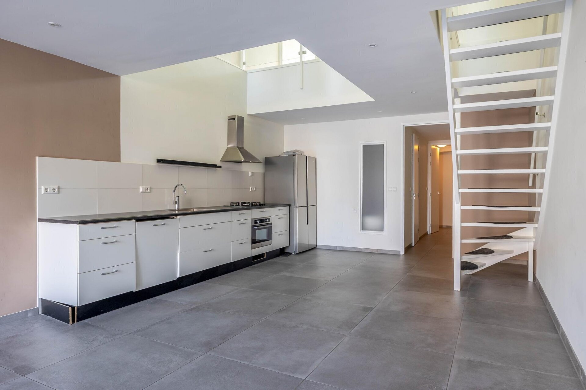 Zodra je binnenkomt valt het open karakter van de woning meteen op. De leefruimte is royaal opgezet met hoge plafonds, grote raampartijen en een vrije zichtlijn richting het terras en het water. Door de bijzondere indeling voelt het huis aan als een loft: open, licht en speels, maar tegelijkertijd praktisch en comfortabel. De woonkamer en keuken vormen samen het hart van het huis, met genoeg plek voor een grote eettafel, een royale zithoek en gezellige borrels.