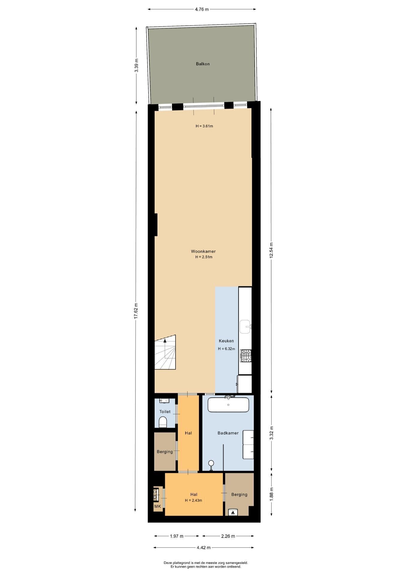 “Deze informatie is door ons met de nodige zorgvuldigheid samengesteld. Onzerzijds wordt echter geen enkele aansprakelijkheid aanvaard voor enige onvolledigheid, onjuistheid of anderszins, dan wel de gevolgen daarvan. Alle opgegeven maten en oppervlakten zijn indicatief.”