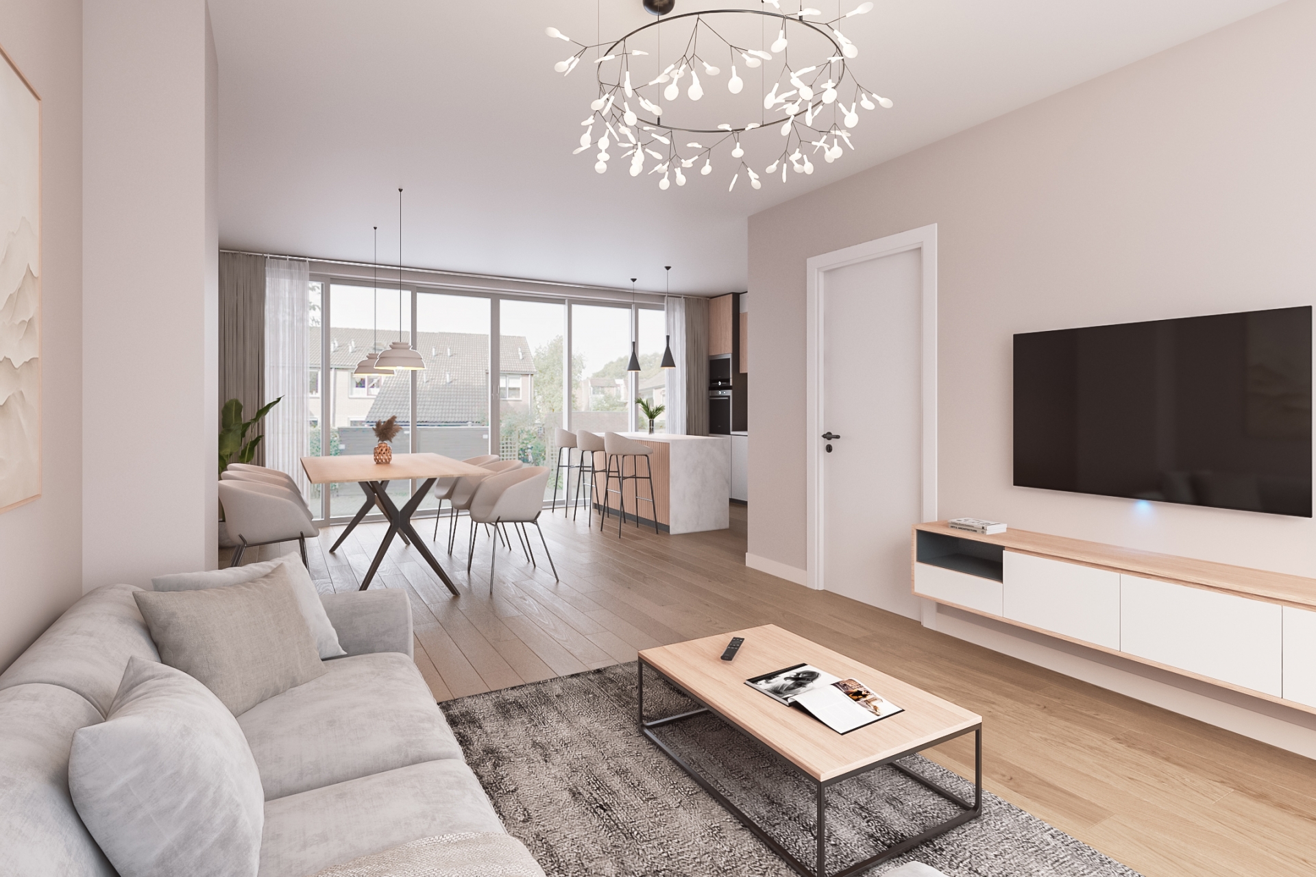 - doorzon woonkamer met dichte keuken;
