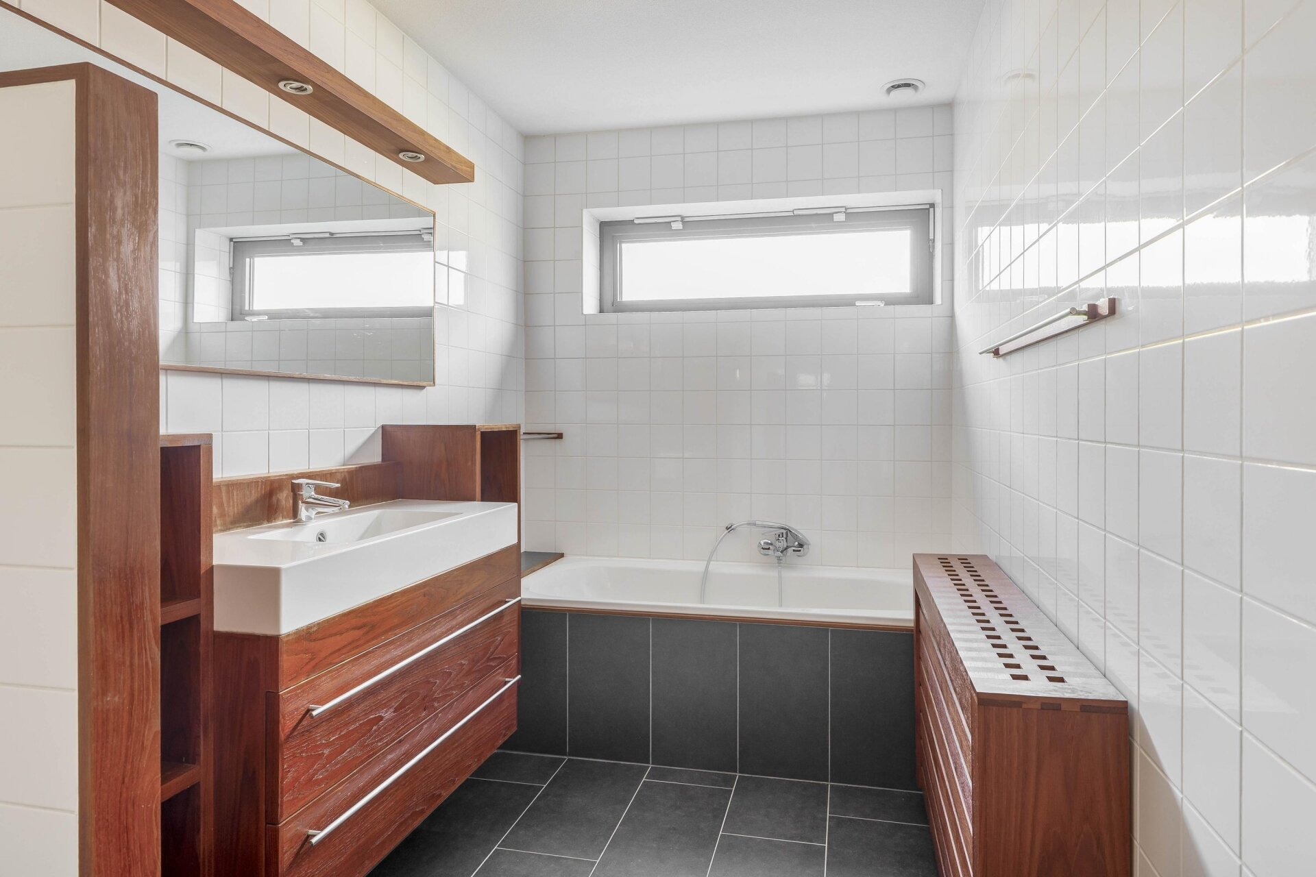 Beide slaapkamers zijn goed van formaat en bevinden zich aan de rustige achterzijde van het appartement. Handige inbouwkasten zorgen voor extra bergruimte zonder dat dit ten koste gaat van het vloeroppervlak. De grootste slaapkamer biedt ruimte voor een tweepersoonsbed en grote kast, terwijl de tweede kamer bijvoorbeeld dienst kan doen als logeerkamer, hobbyruimte of werkkamer.