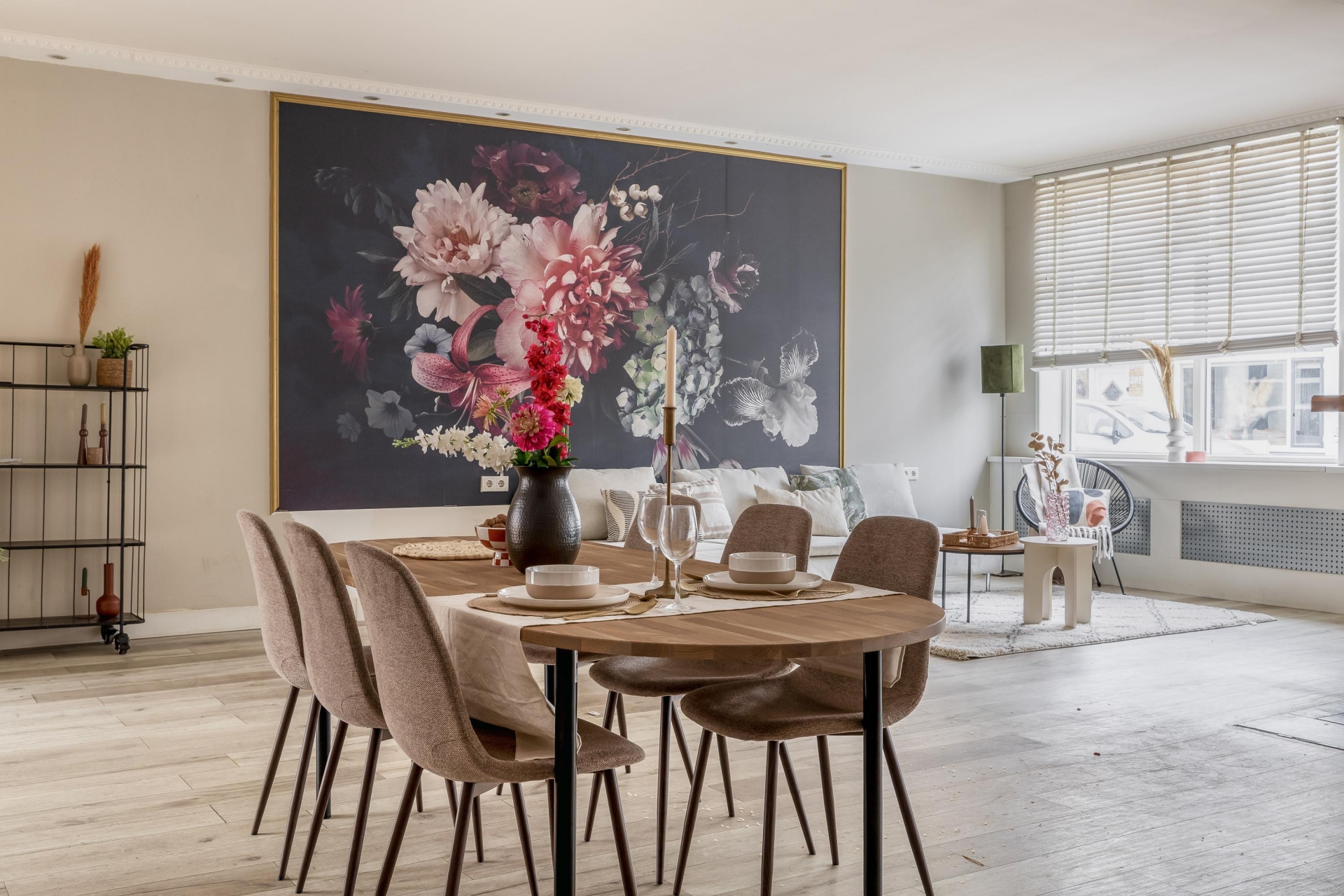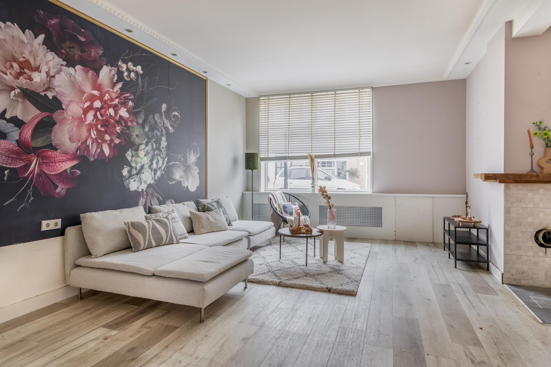 Bij binnenkomst valt direct de ruimte op. Dit huis is in het verleden samengevoegd uit twee woningen en dat merk je: de woonkamer is uitzonderlijk ruim en heeft een prettige indeling met een duidelijk zit- en eetgedeelte.