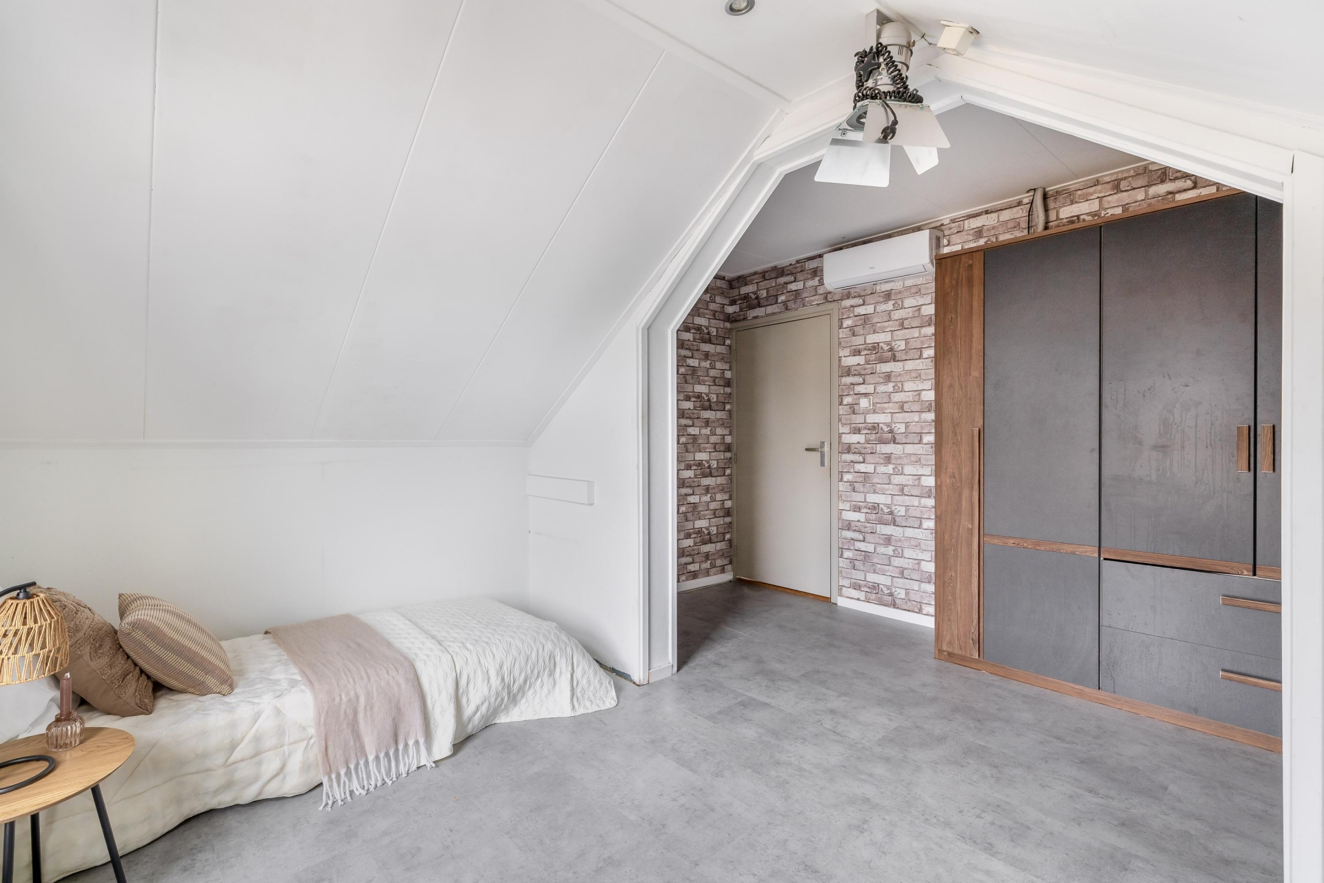 De grootste slaapkamer is licht en lang van opzet en biedt toegang tot het platte dak. Hier zou eventueel een dakterras gerealiseerd kunnen worden (vergunningsplichtig). De vierde slaapkamer aan de achterzijde heeft eveneens airconditioning en vaste kastruimte.