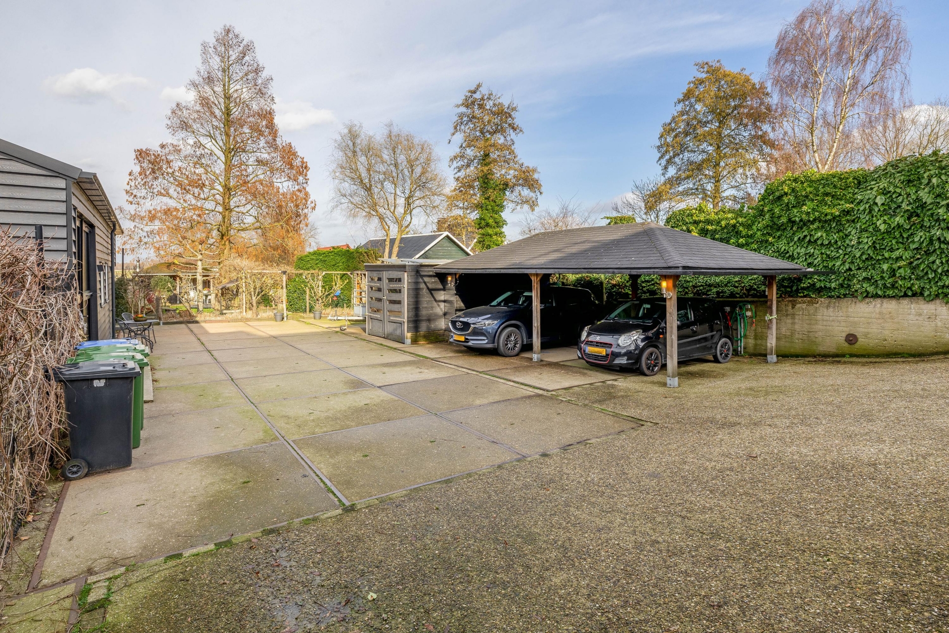 Carport voor twee auto's en parkeren op eigen terrein